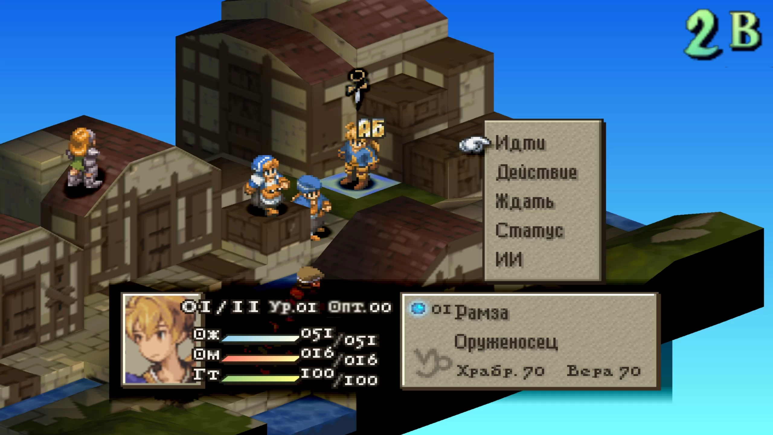 Геймплей включает пошаговые сражения на трехмерных картах, где необходимо учитывать особенности ландшафта и характеристики персонажей. Система классов позволяет обучать юнитов различным профессиям — от рыцарей до магов и воров, что открывает широкий простор для стратегий. Переиздание для PSP добавляет новые классы, такие как тёмный рыцарь и астролог, а также дополнительные задания и видеоролики, выполненные в анимационном стиле.