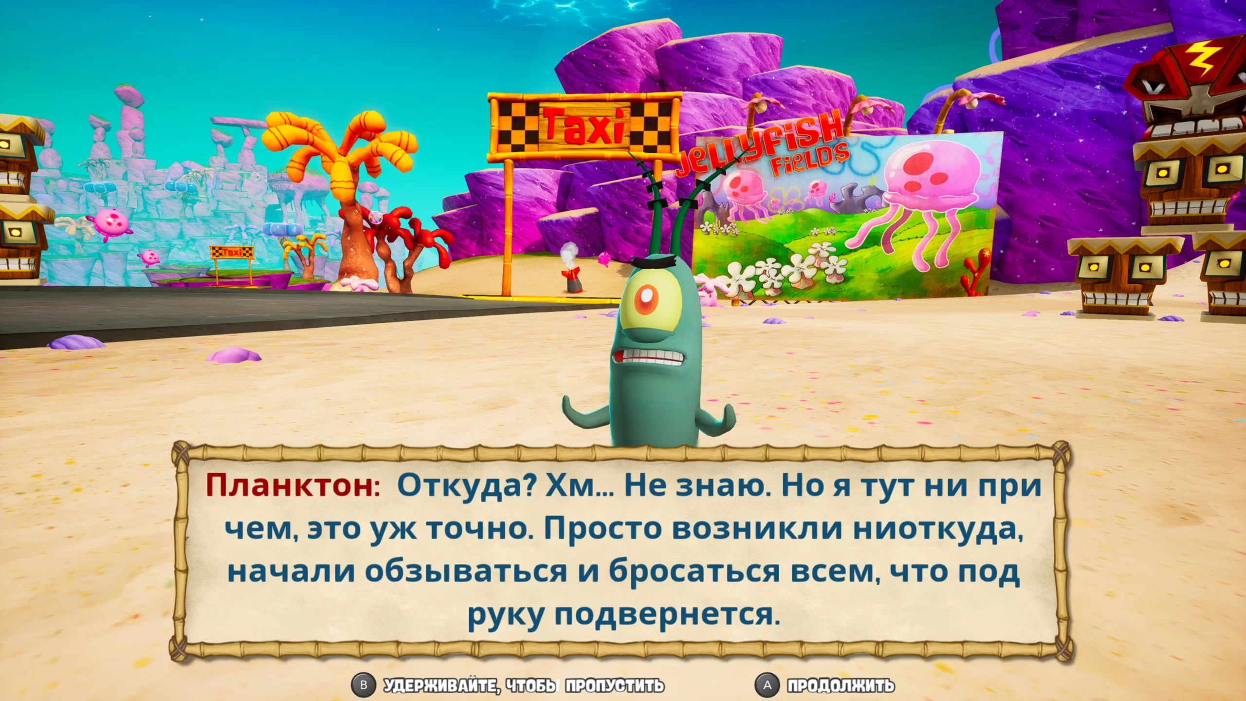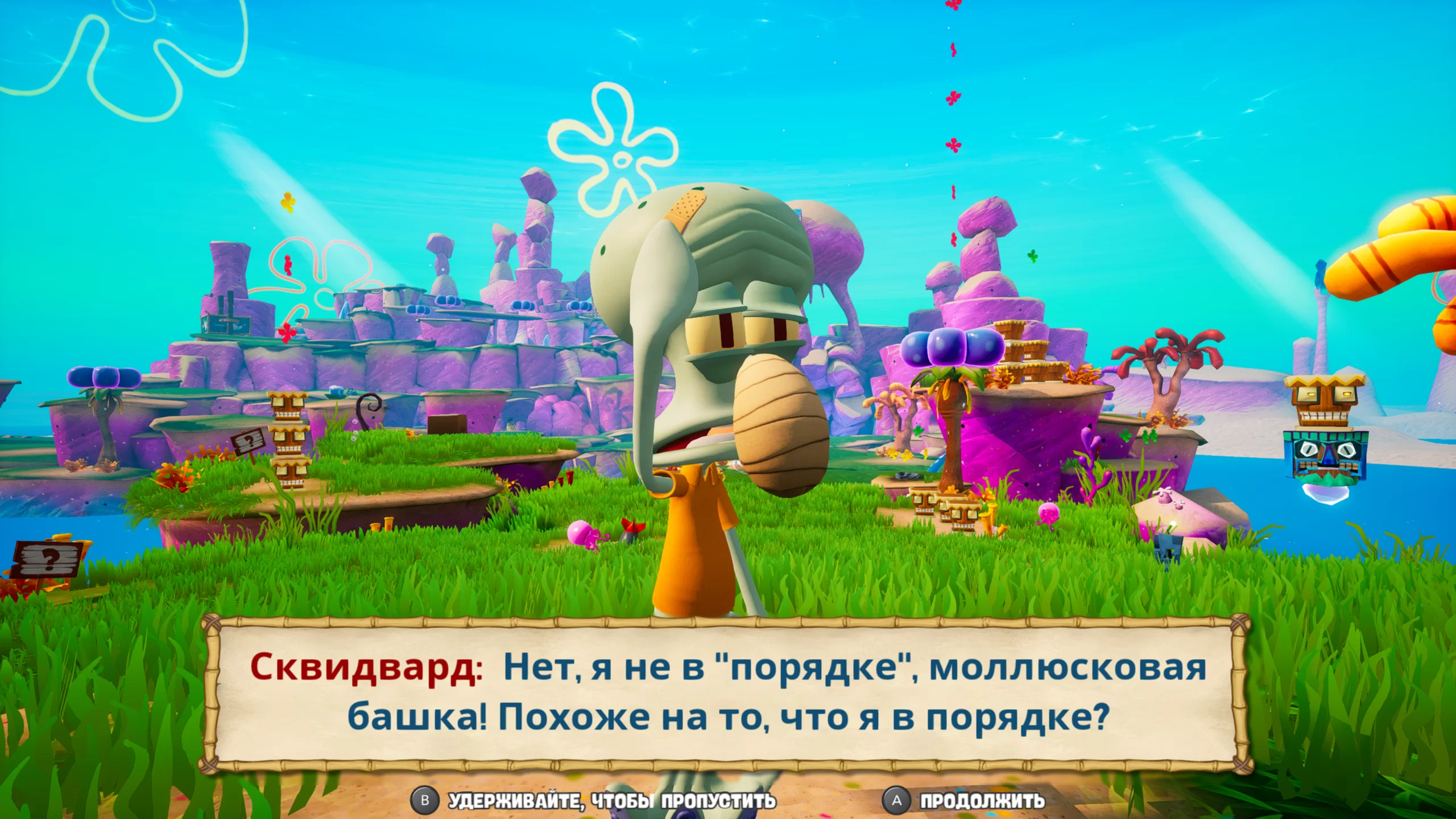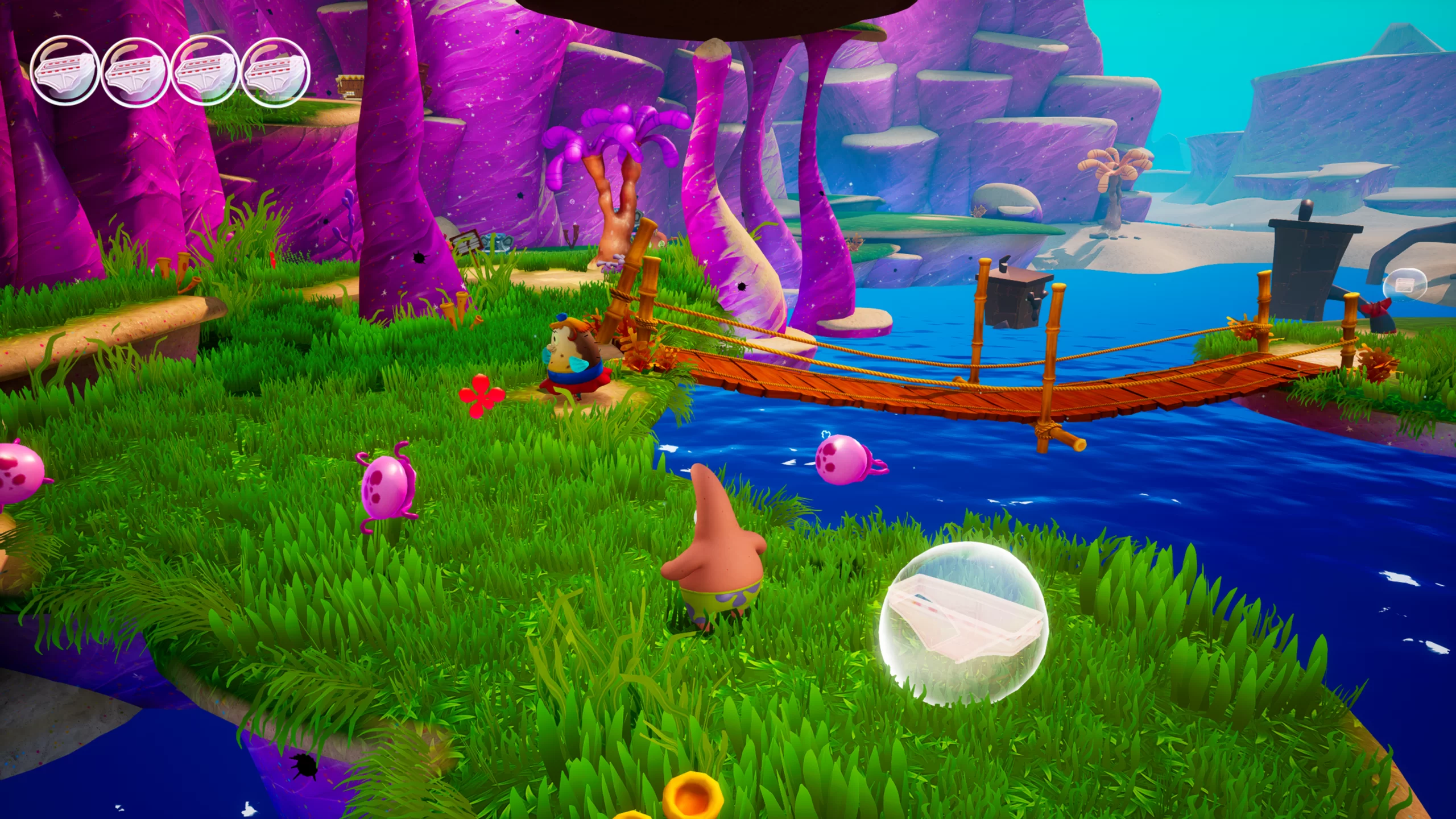 Каждый из трёх главных персонажей обладает уникальными способностями, необходимыми для прохождения уровней. Губка Боб использует свои навыки управления пузырями, Патрик способен поднимать и метать различные объекты, а Сэнди мастерски владеет лассо, позволяя преодолевать препятствия. Игровой мир разнообразен: вы посетите поля медуз, крыши домов в Бикини Боттоме и другие культовые локации. Вас ждут встречи с боссами и множество секретов.