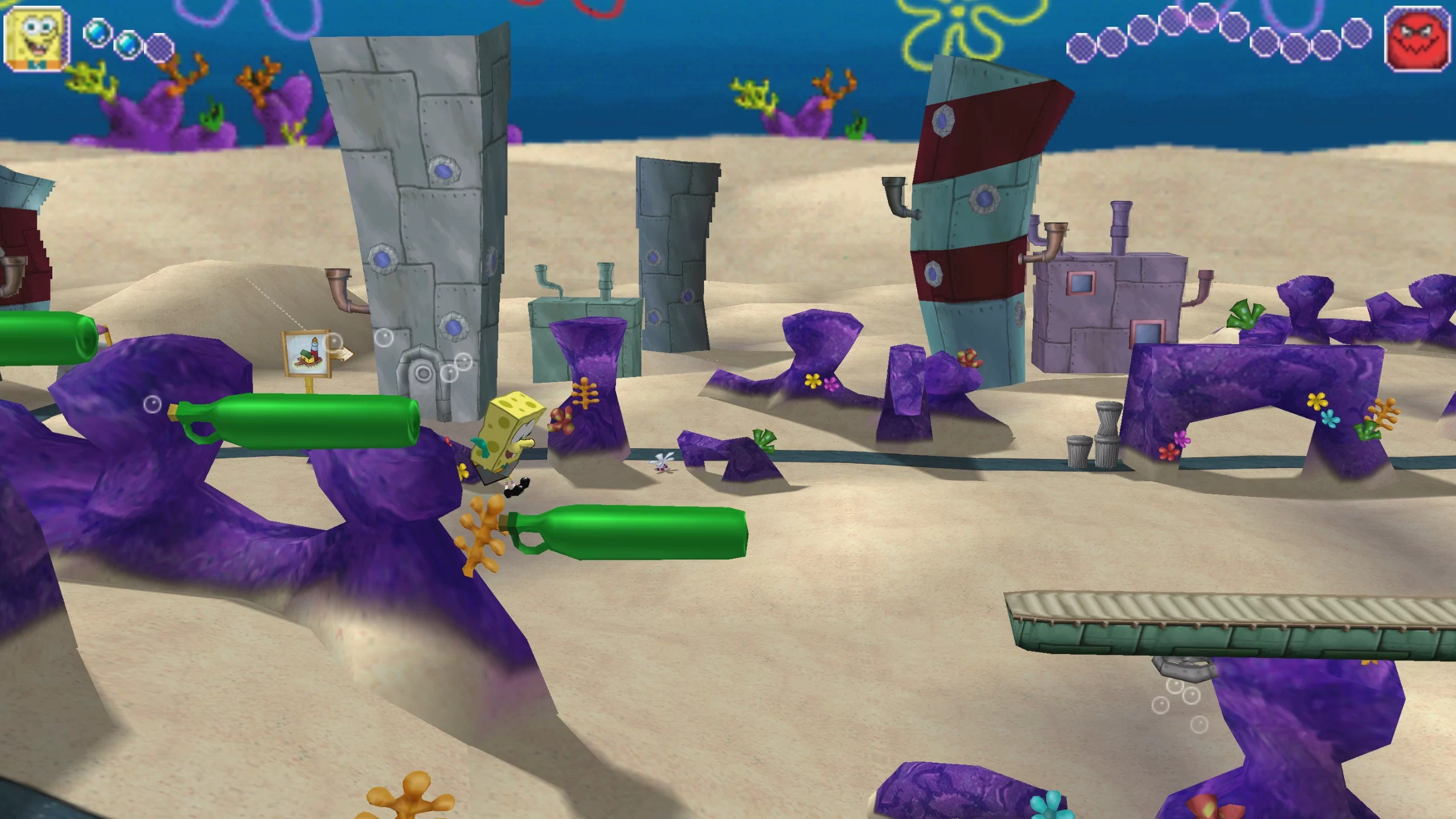 Игровой процесс включает исследование уровней Бикини Боттом, решение головоломок, выполнение заданий и сражения с врагами. Губка Боб использует свои супергеройские способности для преодоления препятствий и взаимодействия с окружающим миром. В игре предусмотрены разнообразные миссии: сбор предметов, спасение персонажей и битвы с боссами, что делает геймплей увлекательным и насыщенным.