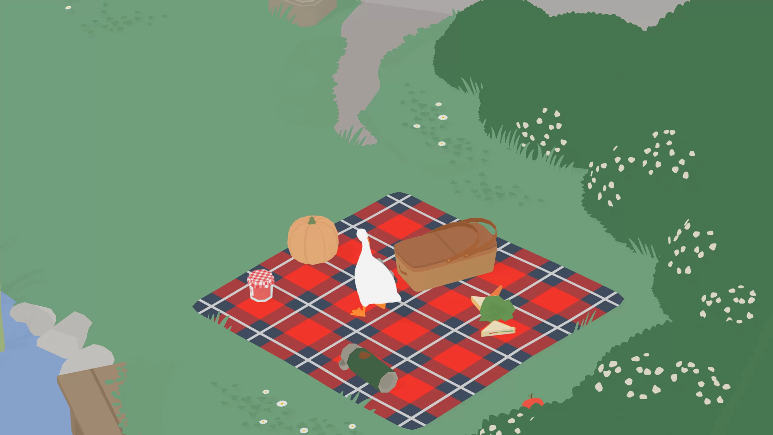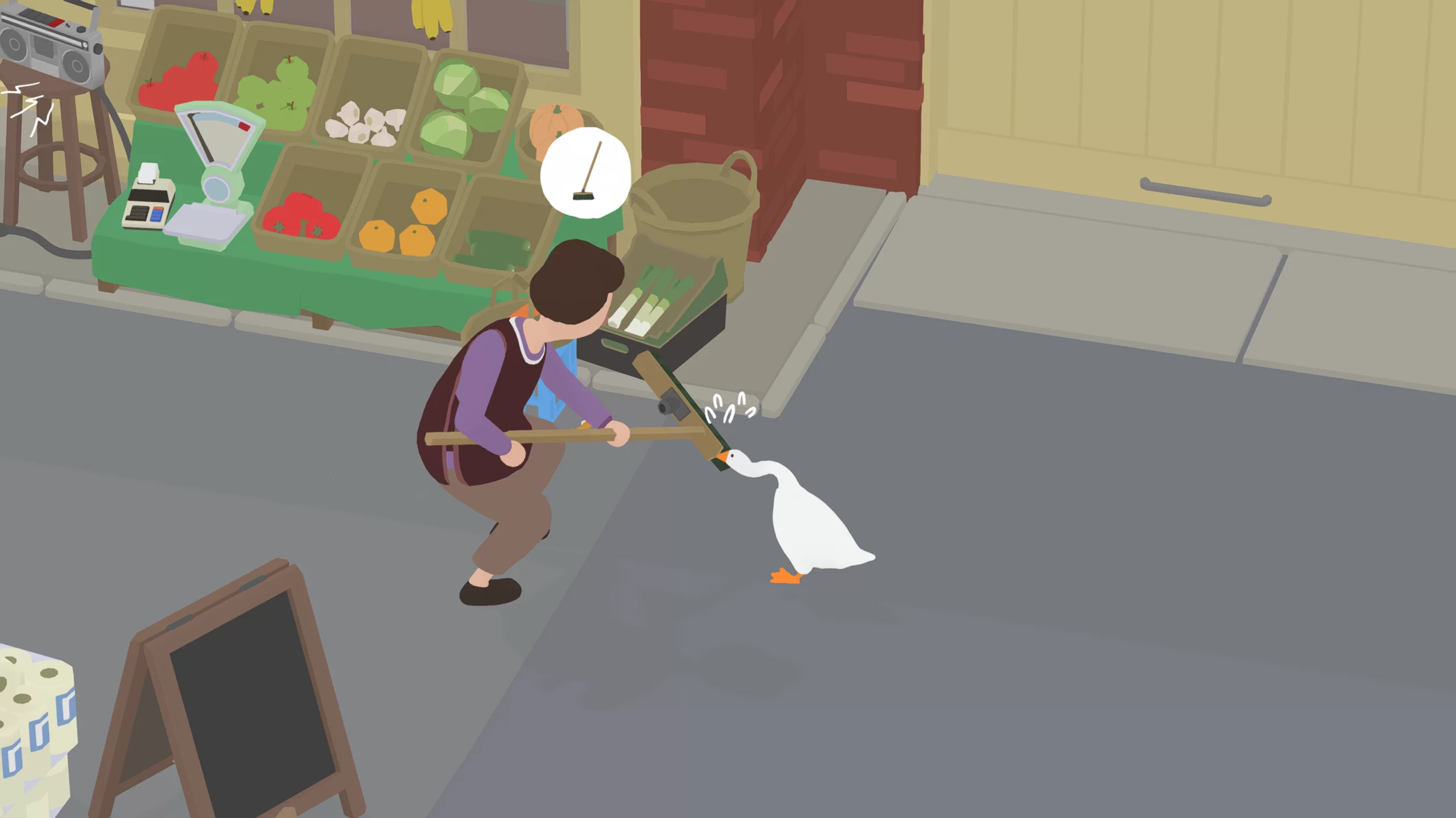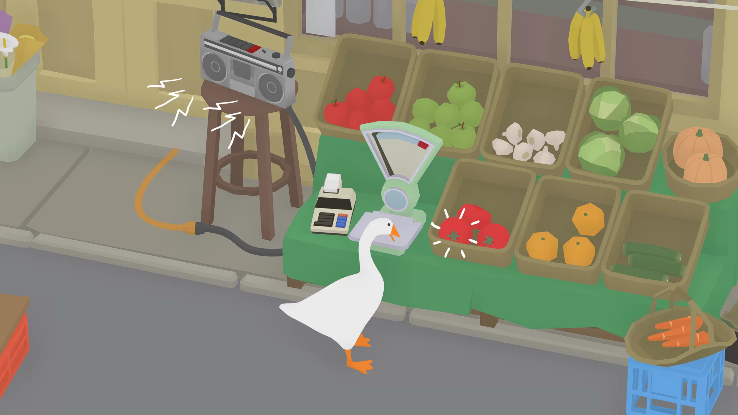 Игра выделяется минималистичной, но стильной графикой с мягкими цветами и плавной анимацией, что подчеркивает её комедийный тон. Звуковое оформление, включая забавное гоготание гуся и динамическую музыкальную тему, создаёт легкую и юмористическую атмосферу.