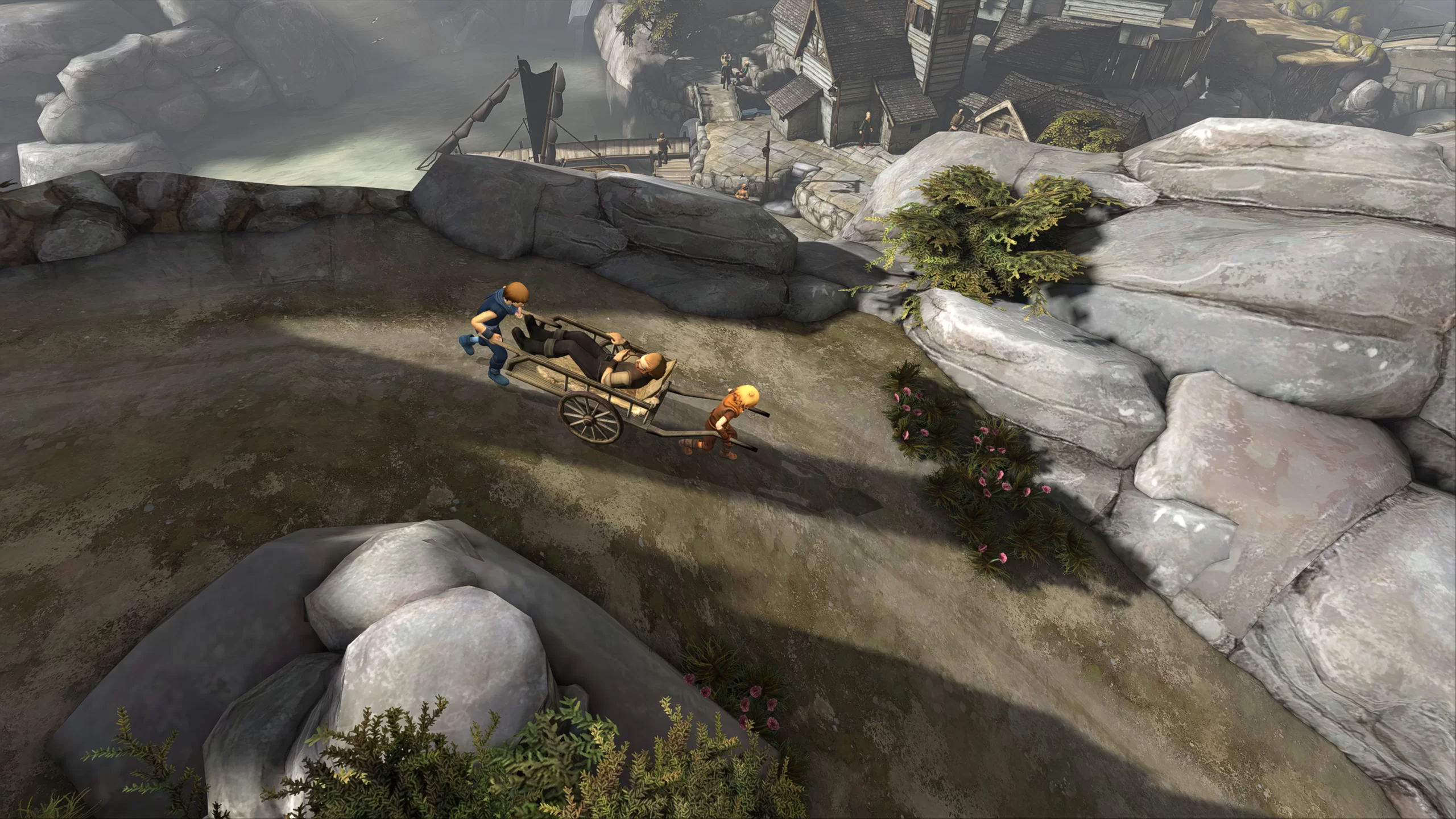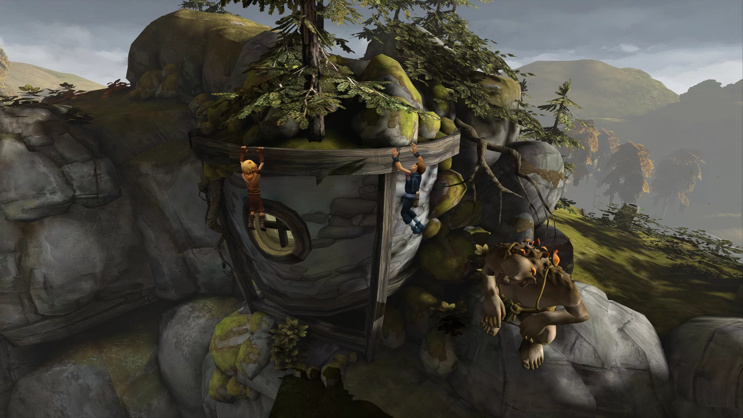 Игра имеет яркую и красочную визуальную составляющую с большим вниманием к деталям. Локации в игре разнообразны: от зелёных лесов и горных вершин до мрачных пещер и древних руин, каждая из которых имеет уникальную атмосферу. Меланхоличная и эмоциональная музыка дополняет сюжет, подчеркивая моменты драмы и приключений. Благодаря этой атмосфере игра удачно погружает игрока в переживания братьев и их взаимоотношения.