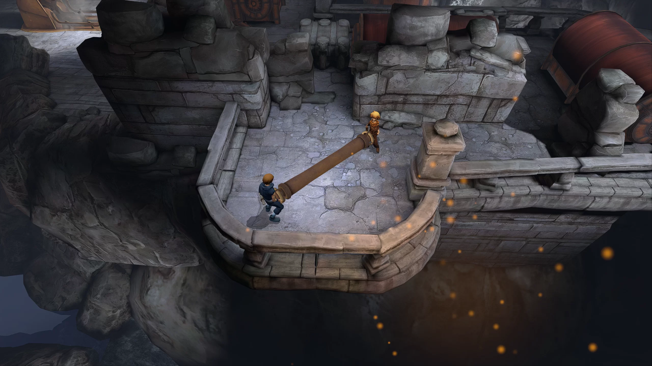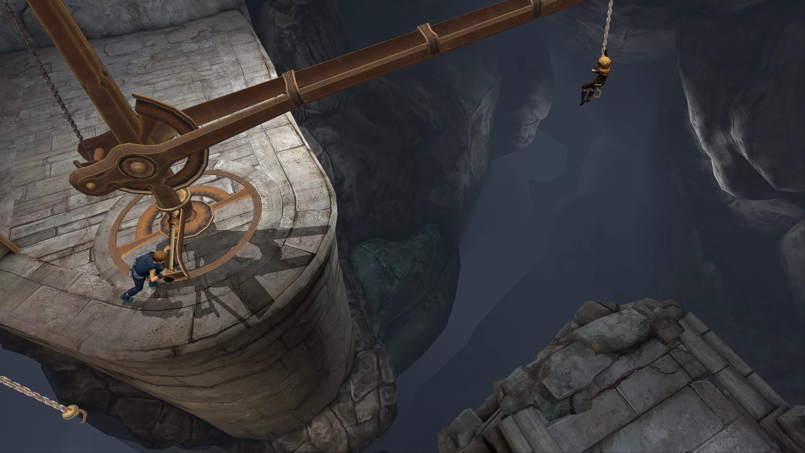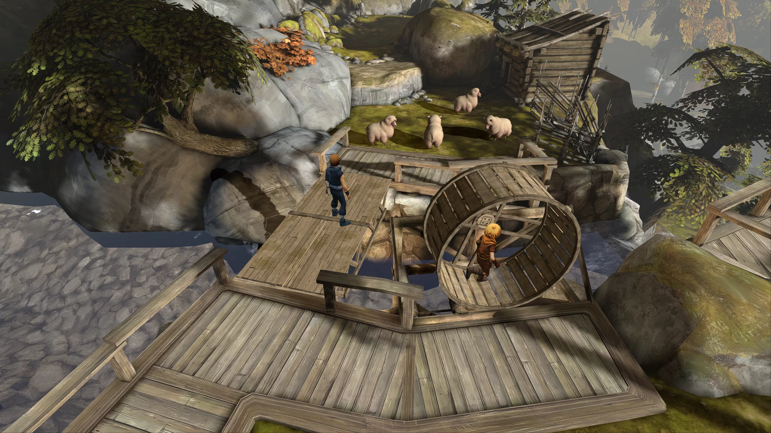 Brothers: A Tale of Two Sons отличается оригинальной механикой управления, где каждый из братьев контролируется отдельным аналоговым стиком на контроллере. Младший брат управляется с помощью левого стика, а старший — с помощью правого. Это создаёт уникальный опыт, где игрок должен координировать действия обоих персонажей одновременно, что делает решение головоломок и преодоление препятствий ещё более увлекательным. Геймплей включает в себя разнообразные элементы, такие как взаимодействие с окружающим миром, платформенные элементы и решения головоломок, которые требуют синхронных действий обоих братьев.