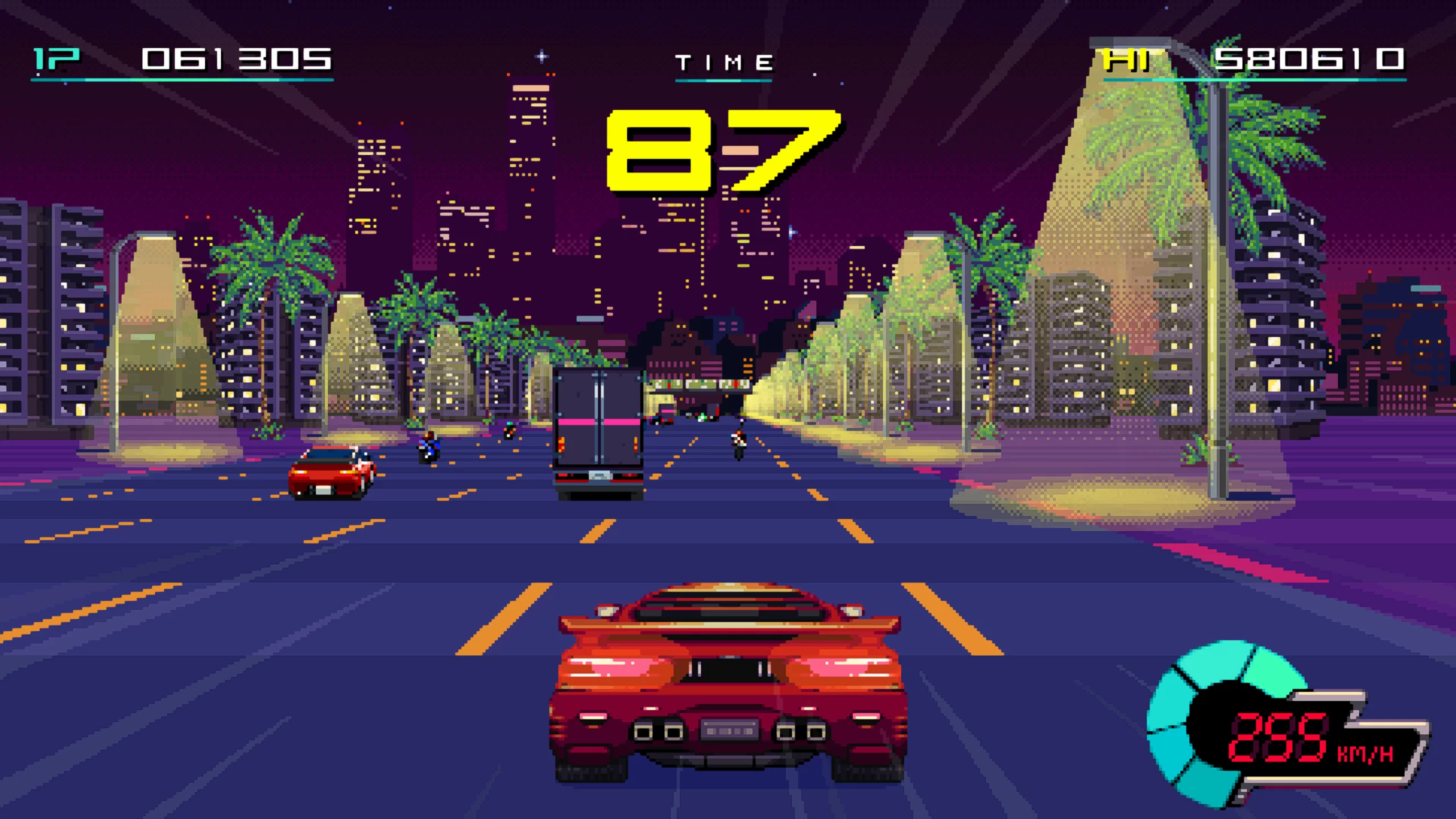 Графика выполнена в детализированном пиксель-арт стиле, характерном для аркад 80-х, что усиливает атмосферу игры. Визуальные эффекты подчёркивают ретро-эстетику, а музыкальное сопровождение, вдохновленное саундом той эпохи, погружает в ностальгическую атмосферу и усиливает эмоциональное восприятие истории.