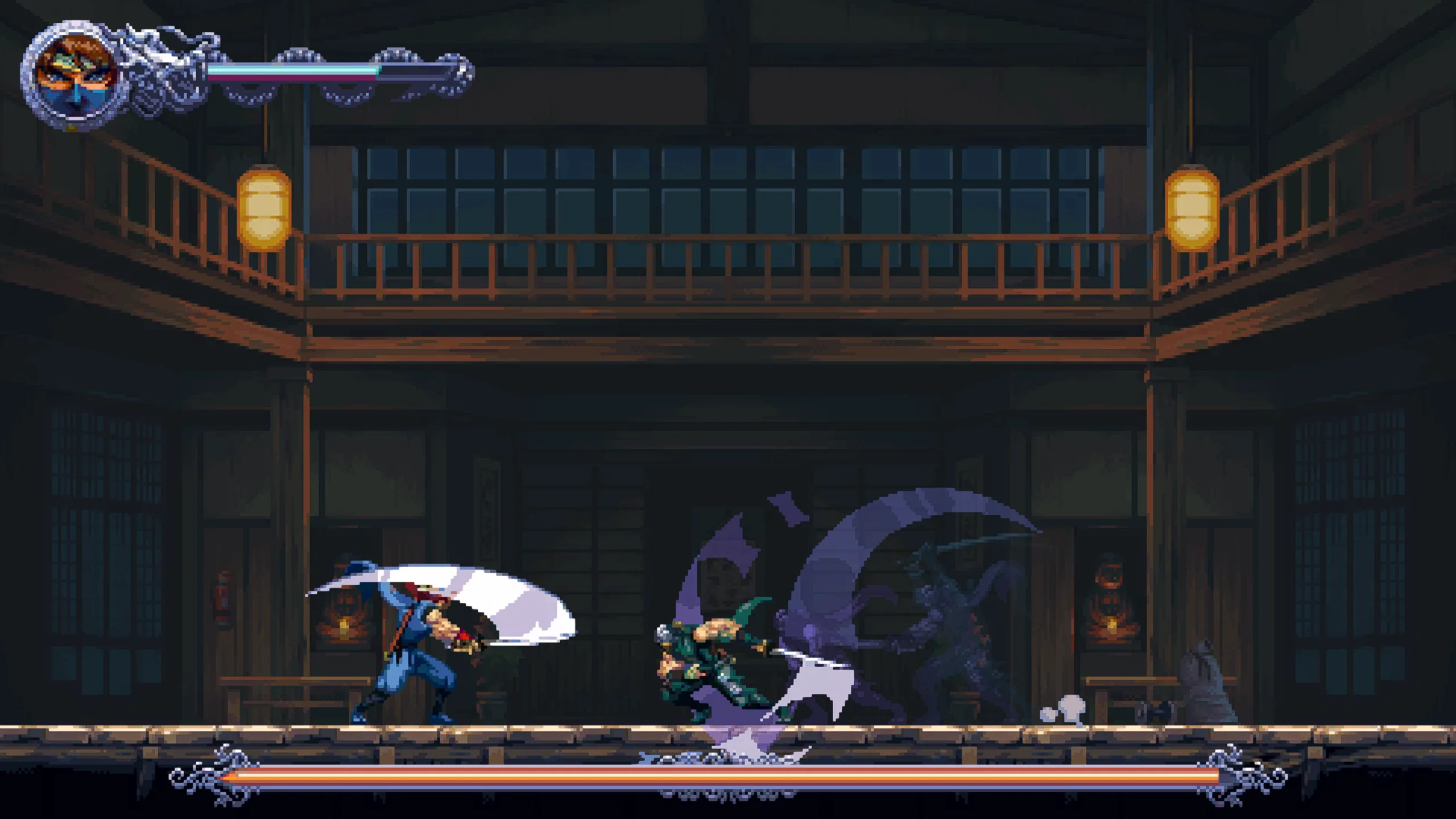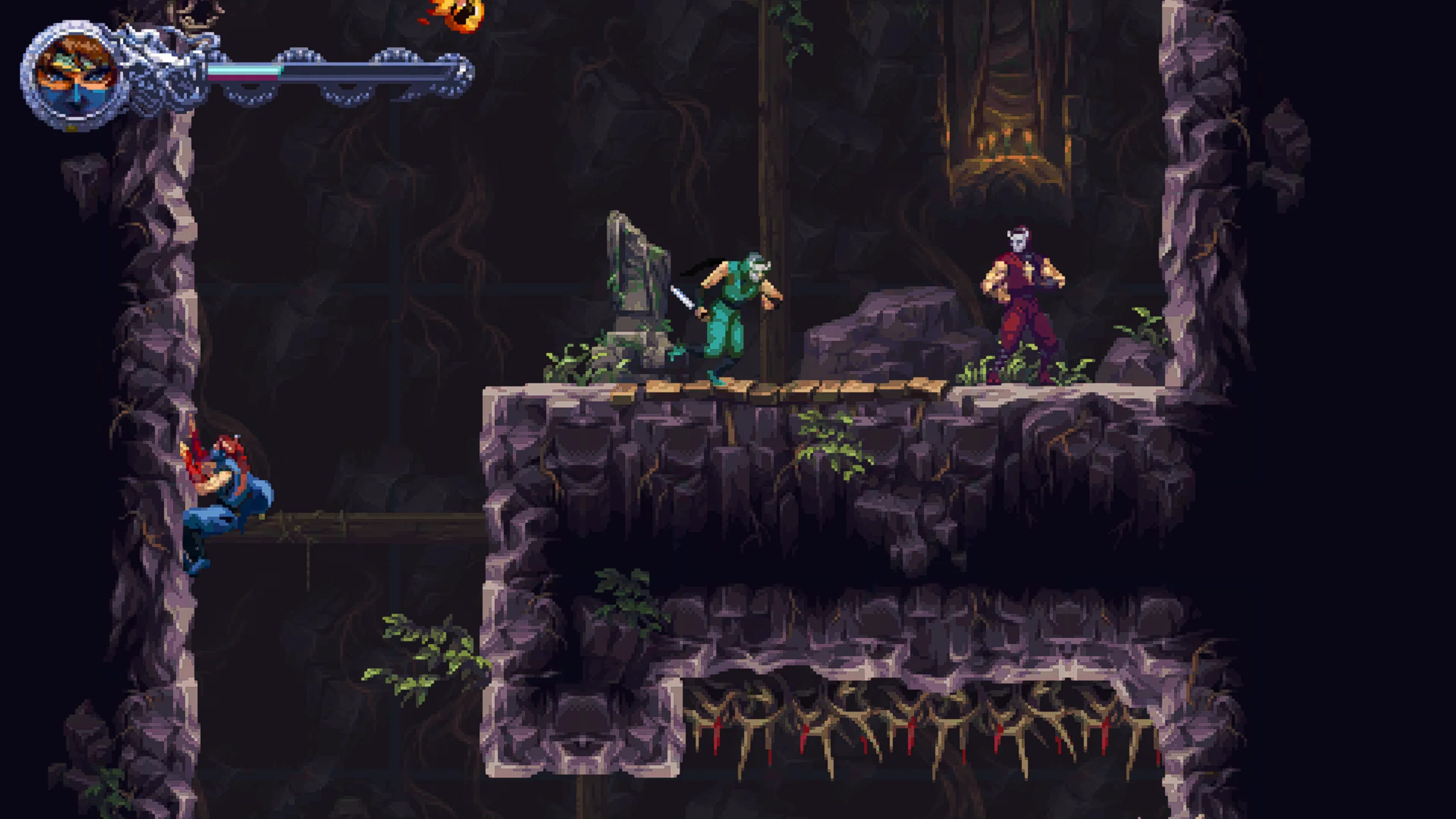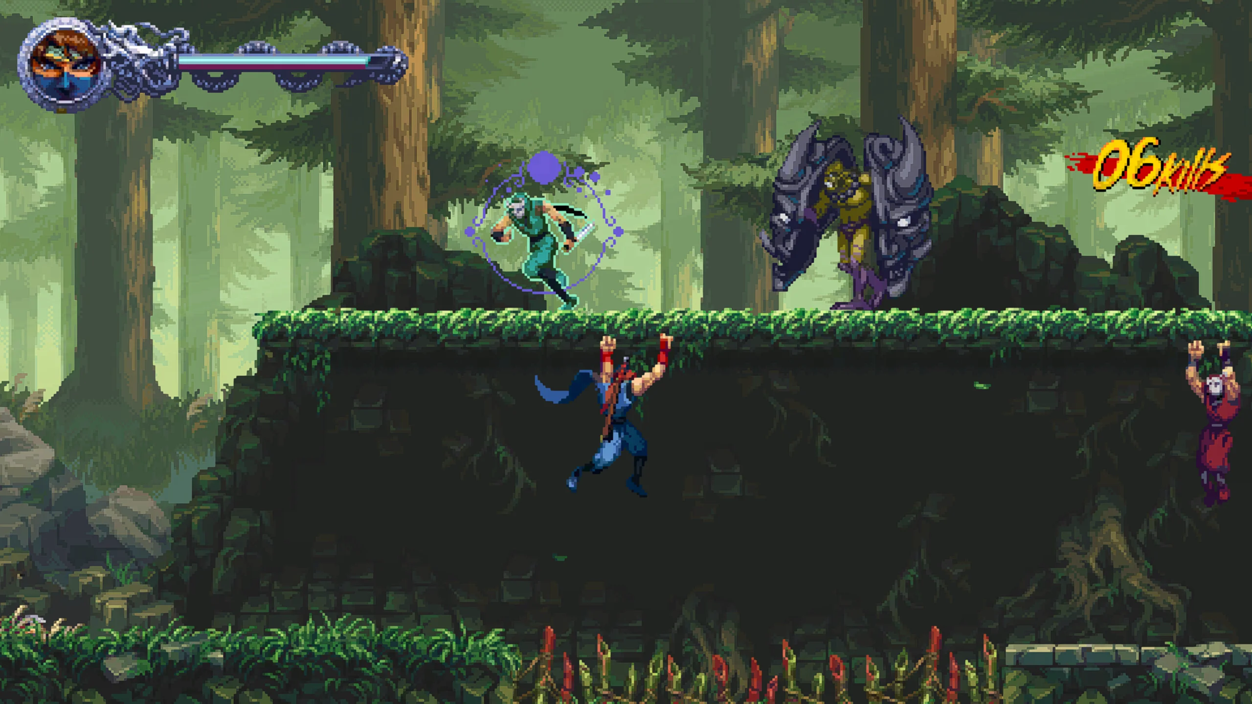 Геймплей остаётся верен корням серии — стремительные схватки, платформенные секции и точные прыжки, дополненные современными улучшениями: обновлённым управлением, системой прокачки навыков, коллекционными предметами, побочными заданиями и гибкими настройками сложности. Визуальный стиль и анимация выполнены в высококачественной пиксельной графике, вдохновлённой классикой, но обогащённой множеством деталей и насыщенными цветами.