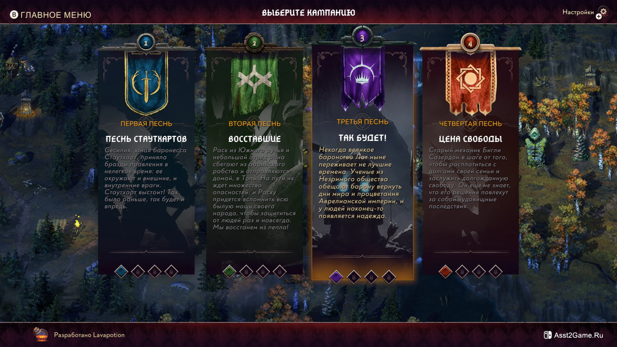 Действие разворачивается в фэнтезийном мире, где несколько фракций борются за власть, земли и древние артефакты. Кампанию предстоит пройти за разные стороны конфликта, наблюдая историю с различных точек зрения — от благородных рыцарей до бесчестных наёмников. Каждая глава сопровождается оригинальными песнями-балладам, пересказывающими ключевые события и создающими атмосферу легенды. Постепенно сюжет раскрывает интриги, предательства и судьбоносные битвы, меняющие баланс сил в мире.