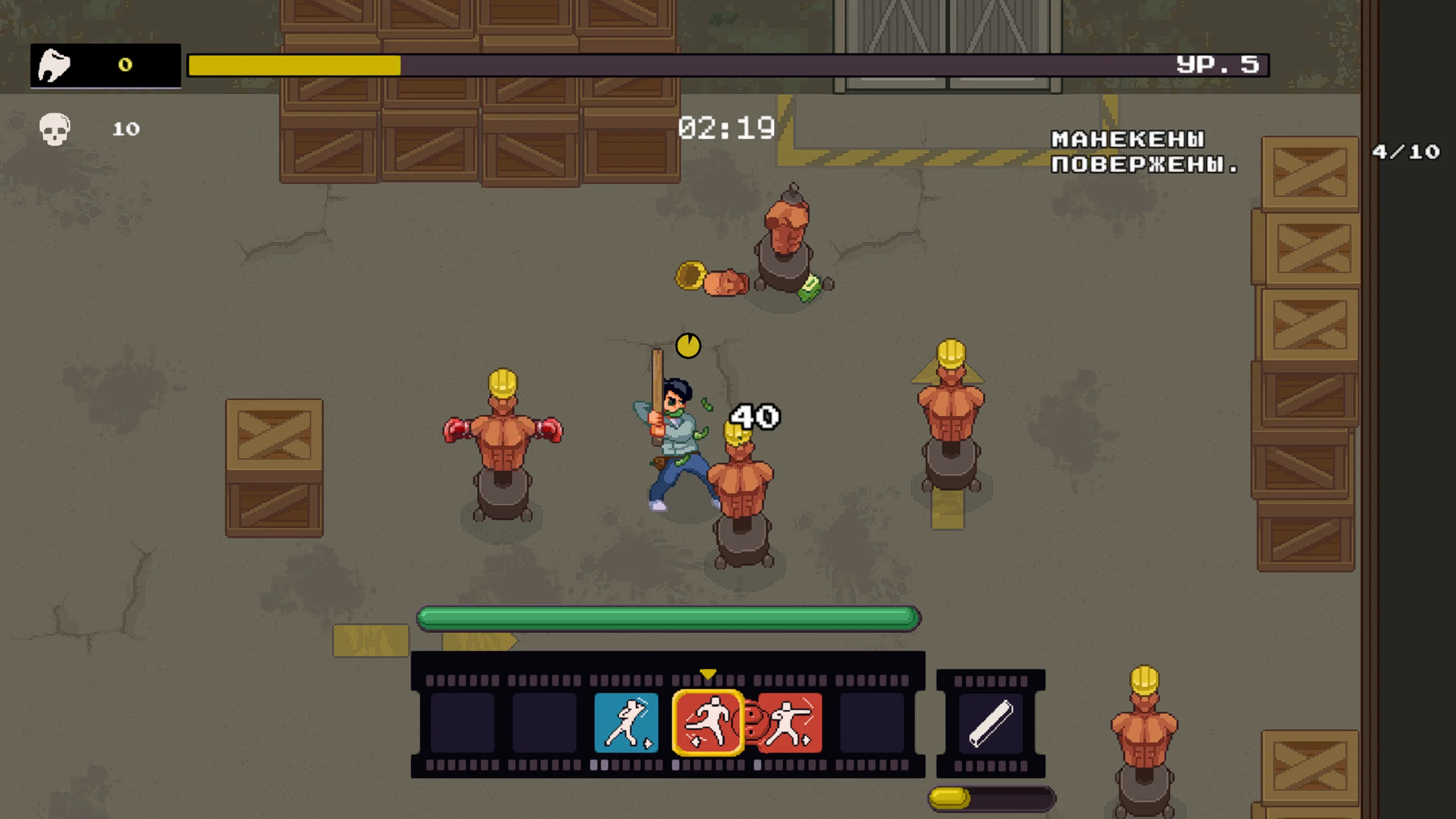 Геймплей построен на динамичных боях в формате «один против всех». Игрок начинает с базовых ударов, а в процессе выживания получает случайные улучшения, меняющие стиль сражений. Благодаря рогалик-механикам каждая партия становится уникальной, а исход зависит от комбинаций навыков и скорости реакции. Игра подходит как для коротких сессий, так и для продолжительных за счёт высокой реиграбельности.
