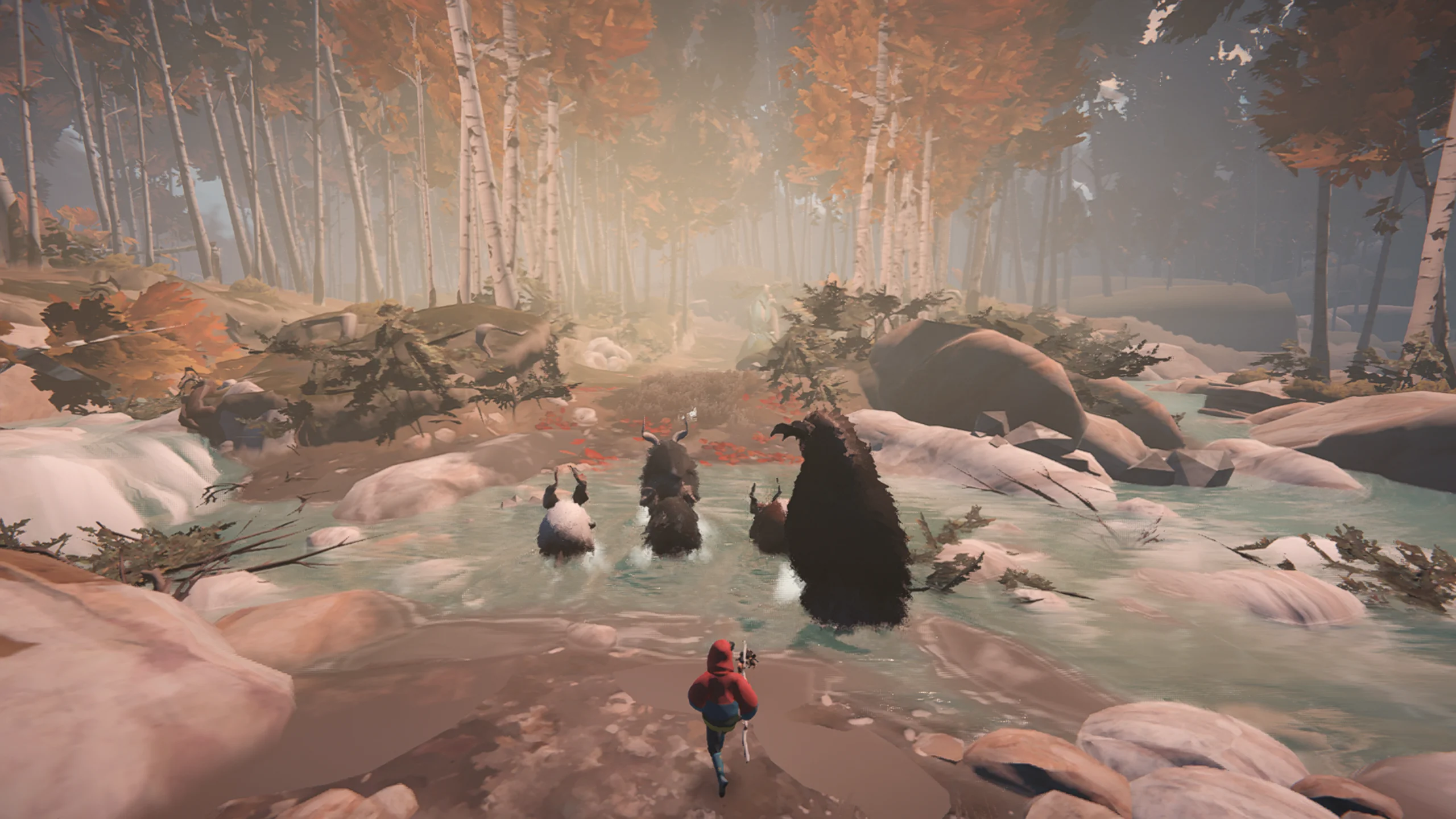 Визуальное оформление выполнено в живописном стиле с насыщенными природными ландшафтами и разнообразием погодных условий: туман, снег, рассветы и сумерки создают контраст между уютом природы и тревожностью отдельных эпизодов. Звуковое сопровождение играет ключевую роль: приглушённые звуки окружения — ветер, шаги, дыхание каликорнов — сочетаются с ненавязчивыми музыкальными темами, которые развиваются по мере продвижения игрока. Всё это усиливает эмоциональное воздействие и делает путешествие более погружающим.