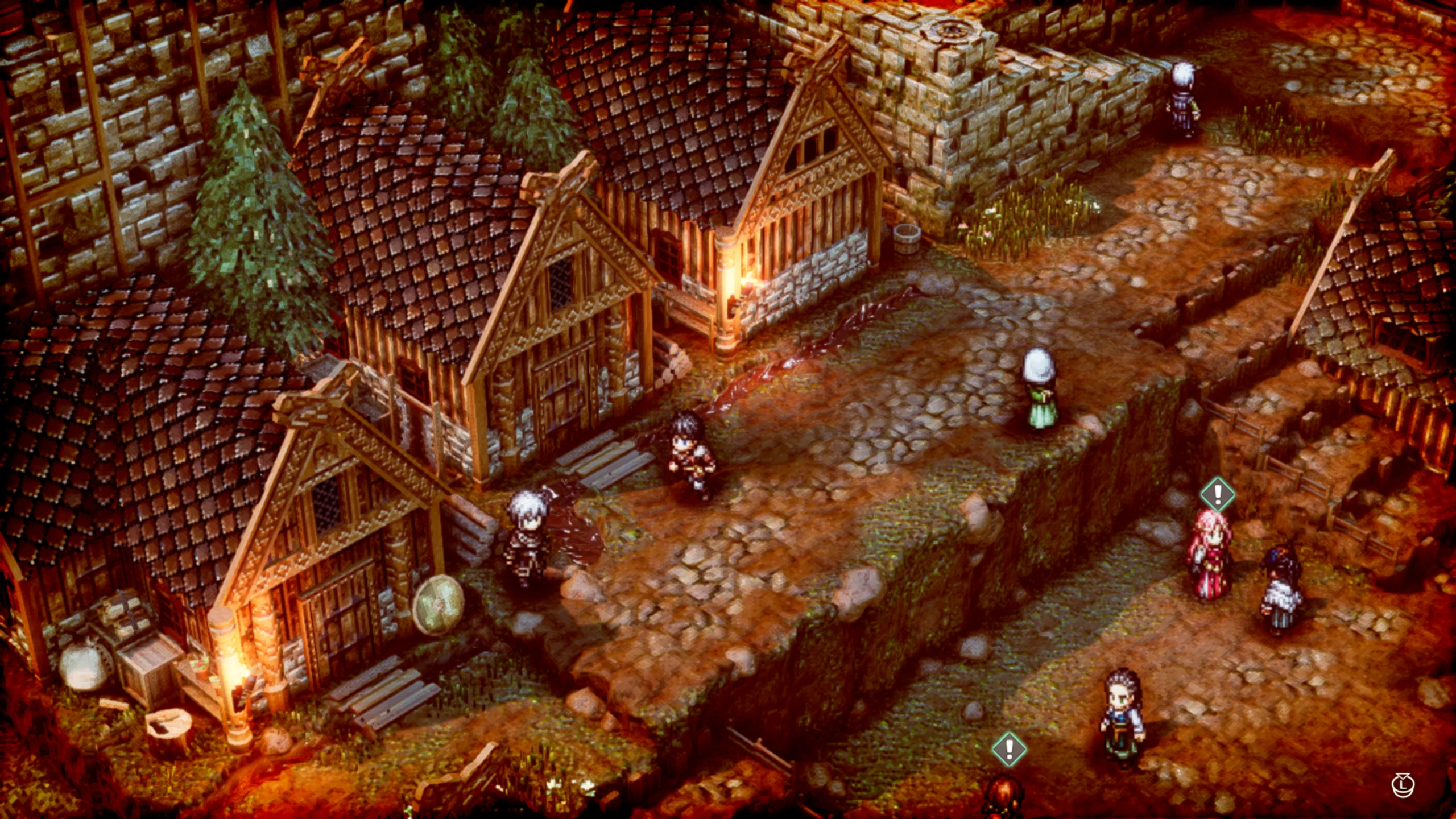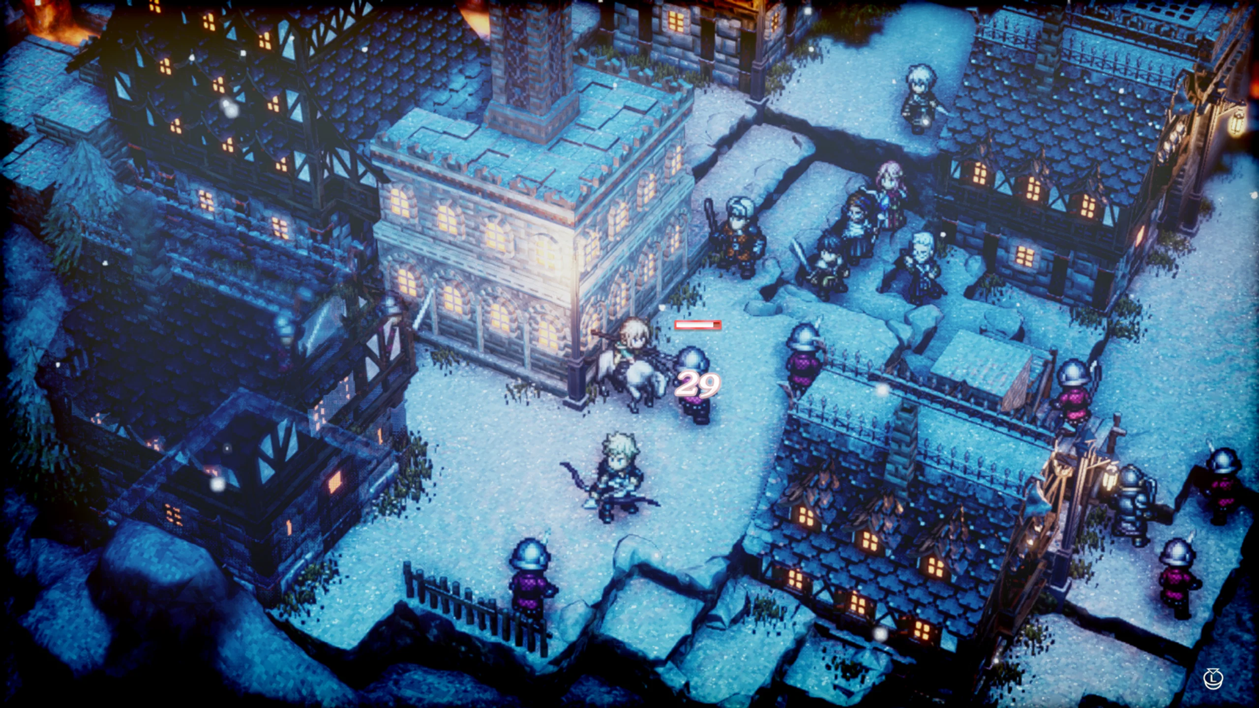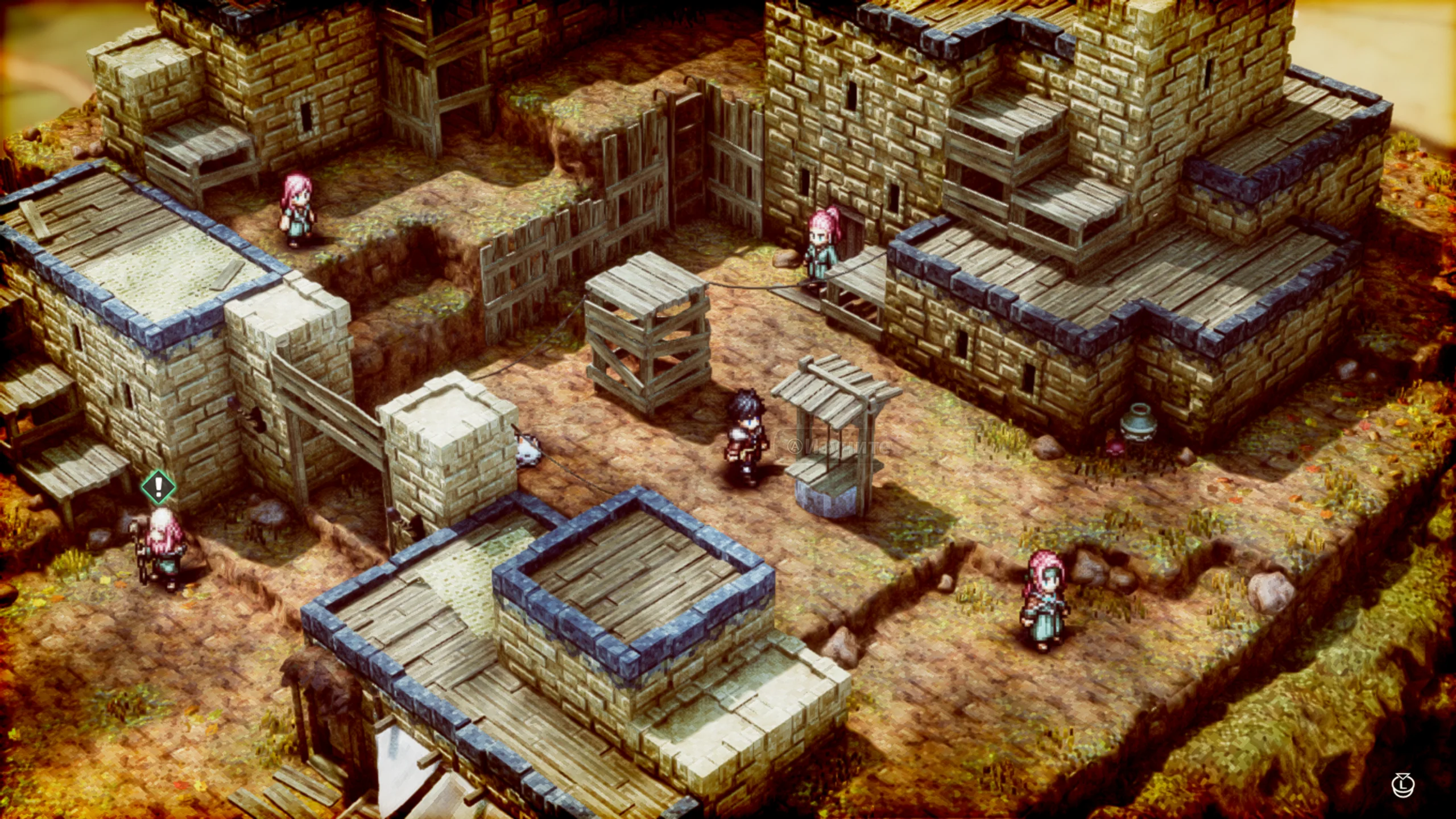 Triangle Strategy впечатляет эффектным стилем HD-2D, в котором классическая пиксельная анимация сочетается с современными визуальными приёмами — мягким освещением, туманом и отражениями. Этот художественный подход создаёт атмосферу живой диорамы, где каждый кадр напоминает миниатюрную картину. Музыкальное сопровождение, написанное композитором Акирой Сэндзю, усиливает драматизм происходящего, а качественная озвучка придаёт диалогам эмоциональную выразительность.
