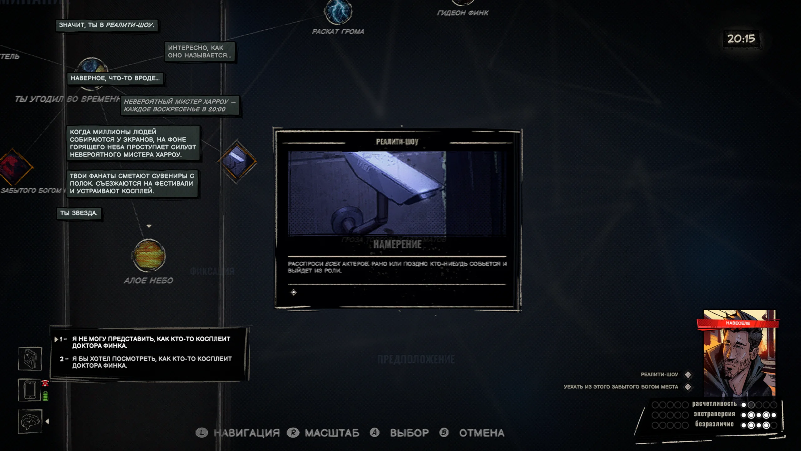 Игровой процесс сосредоточен на диалогах, психологических взаимодействиях и нелинейном повествовании. В игре есть система «карта намерений», через которую игрок отслеживает накопленные знания, исследует новые идеи и видит, как переживания и установки героя влияют на решения и диалоги. Эти влияния формируют сюжет, открывая новые варианты бесед и событий. Каждый цикл времени предлагает свежий взгляд на происходящее, превращая повторное прохождение в осмысленное продолжение истории.