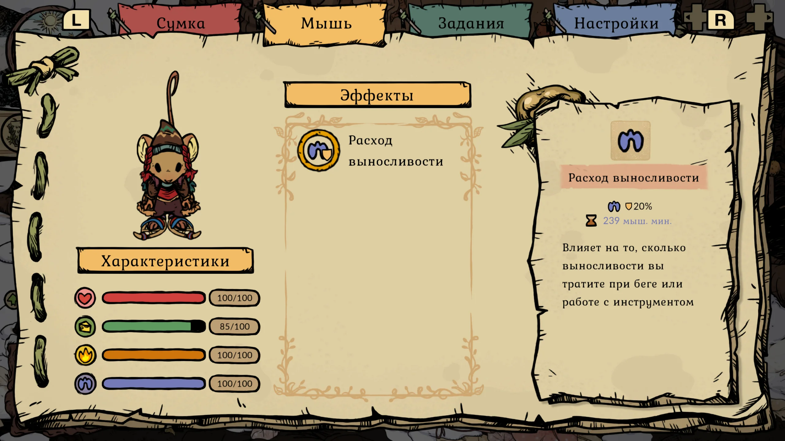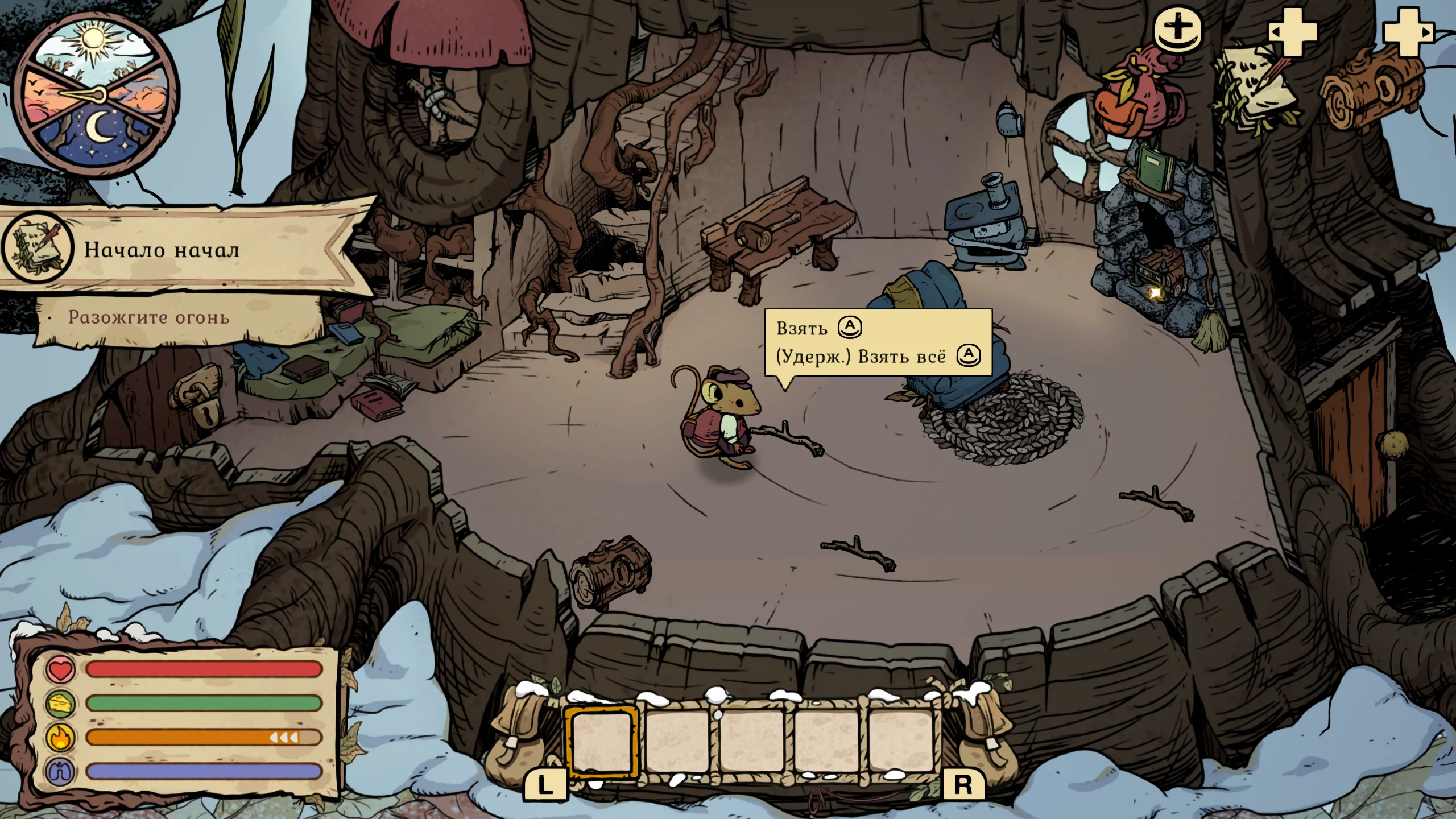 Winter Burrow выполнена в выразительной художественной стилистике, передающей атмосферу зимнего леса: мягкое освещение, уютные сцены у камина, детализированные персонажи-мышки и множество декоративных элементов. Версия для Switch оптимизирована для портативного и док-режима без потери визуальной целостности. Саундтрек создаёт ощущение уюта и лёгкой меланхолии — от скрипа снега под лапками до тёплого потрескивания огня.