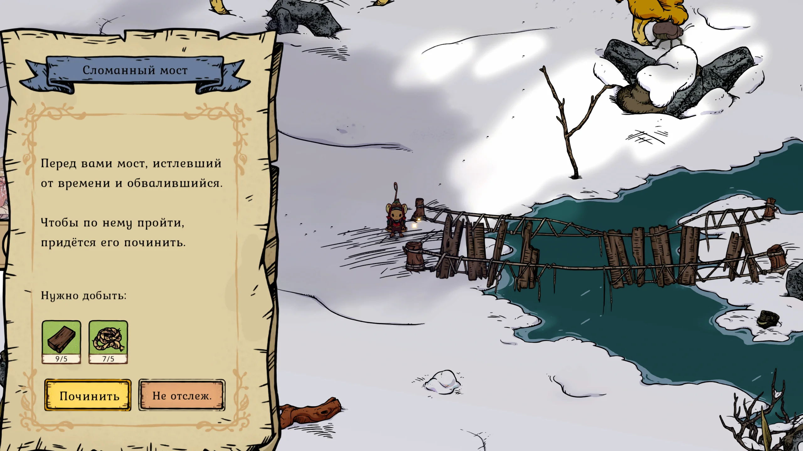 Игровой процесс сочетает элементы выживания, хозяйственной деятельности и свободного строительства. Игрок исследует заснеженный лес, добывает материалы, изготавливает инструменты, вяжет тёплые свитера, печёт пироги и обустраивает нору по своему вкусу. Значимую роль играет взаимодействие с местными обитателями: выполнение их просьб помогает продвигаться по сюжету и открывать новые детали истории. Игра предлагает спокойный темп без строгих ограничений, позволяя выбирать стиль прохождения — от размеренного обустройства дома до активного исследования окружающего мира.