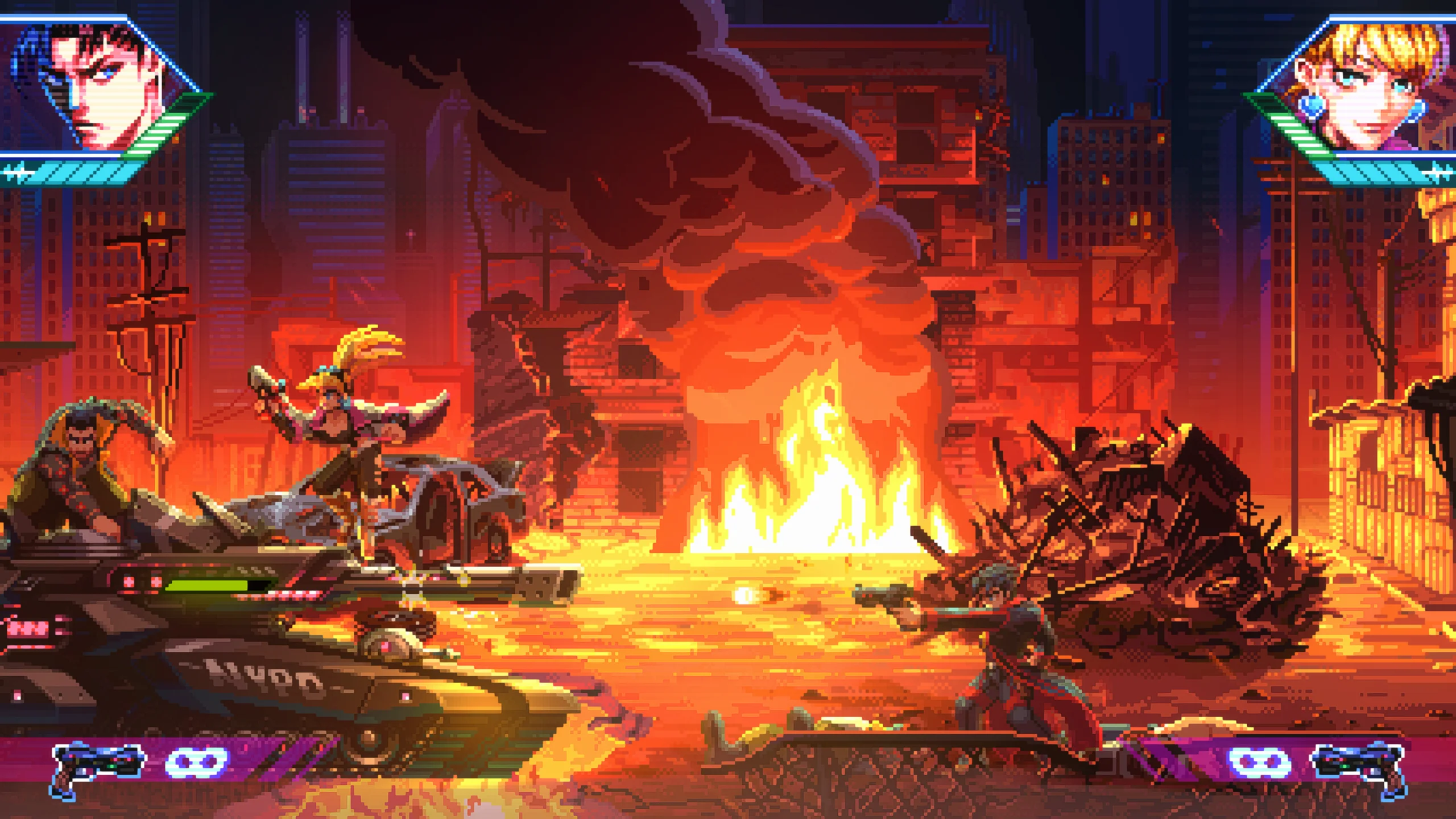 Neon Inferno — современный двухмерный экшен в жанре run and gun, вдохновленный ретро-шутерами. Игра разработана студией Zenovia Interactive и издана Retroware для Nintendo Switch 20 ноября 2025 года. Проект выполнен в пиксельной графике с выразительной киберпанк-эстетикой и сопровождается музыкальными треками, передающими атмосферу неонового, дистопического Нью-Йорка. Игроку предстоит захватить улицы мегаполиса, пробиваясь через врагов, отражая атаки и устраняя препятствия на своем пути.