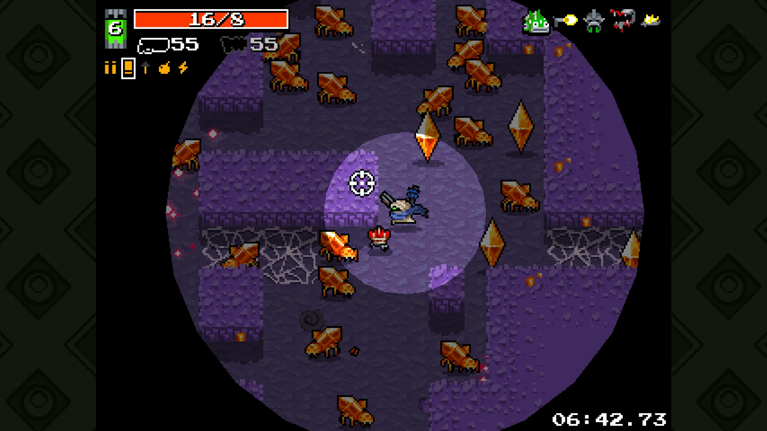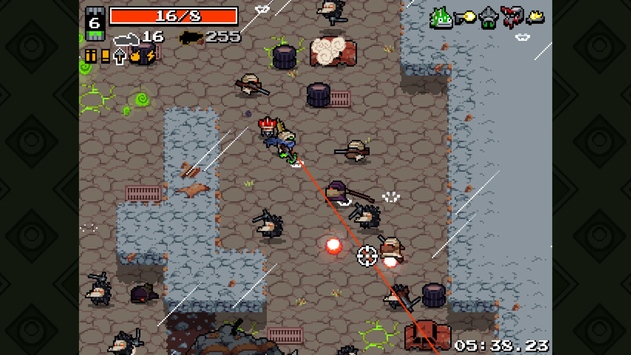 Игровой процесс сочетает хардкорный шутер с элементами shoot’em up и roguelike. Игрок выбирает персонажа с уникальной способностью и проходит случайно генерируемые уровни, наполненные врагами, оружием и неожиданными событиями. Бои требуют высокой скорости реакции и точности, а также тактического подхода при выборе оружия и перемещении по арене. После смерти прогресс полностью обнуляется, что подчеркивает суровый характер игры. В версии для Nintendo Switch доступна одиночная игра и локальный кооператив на двоих.