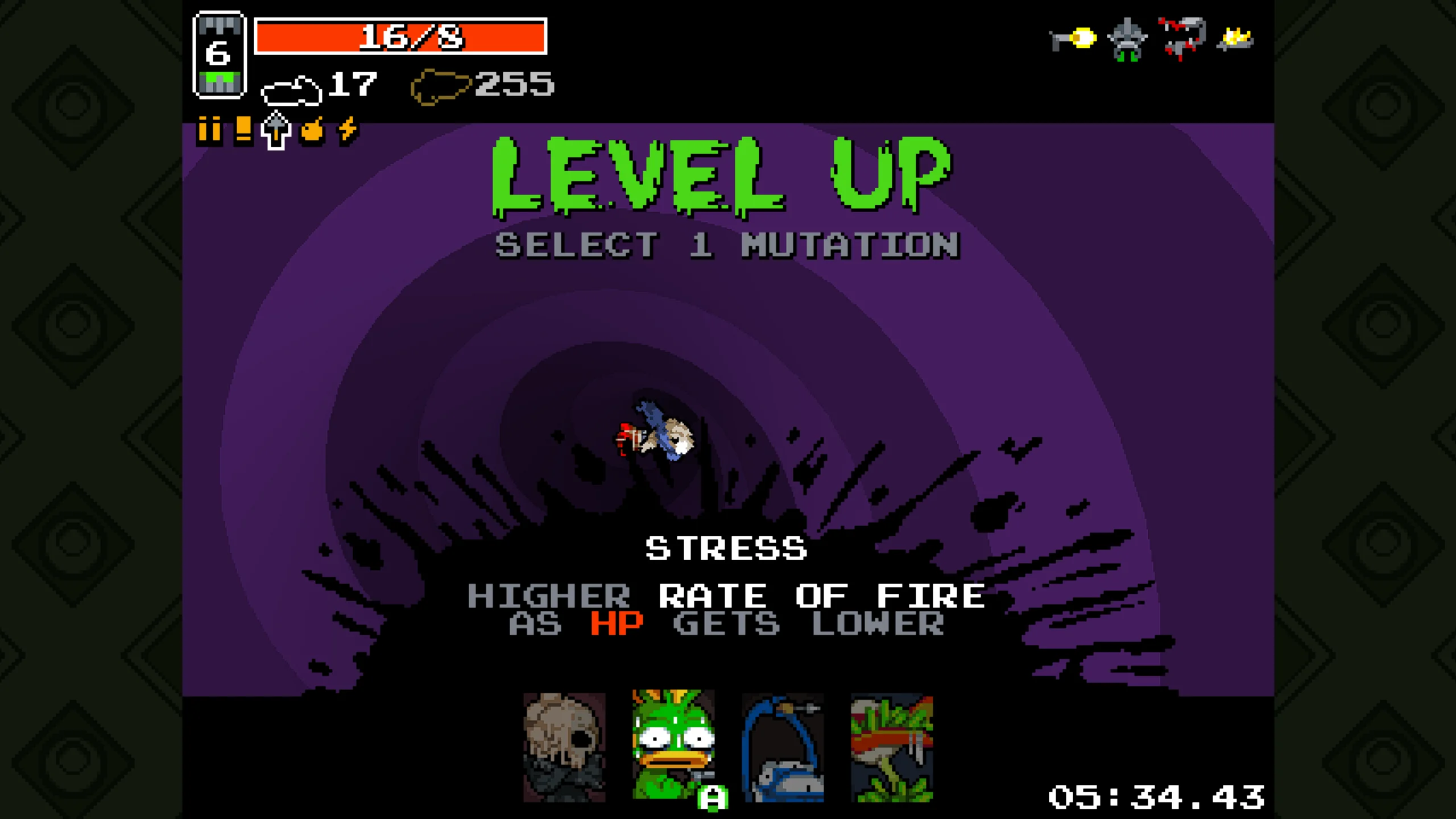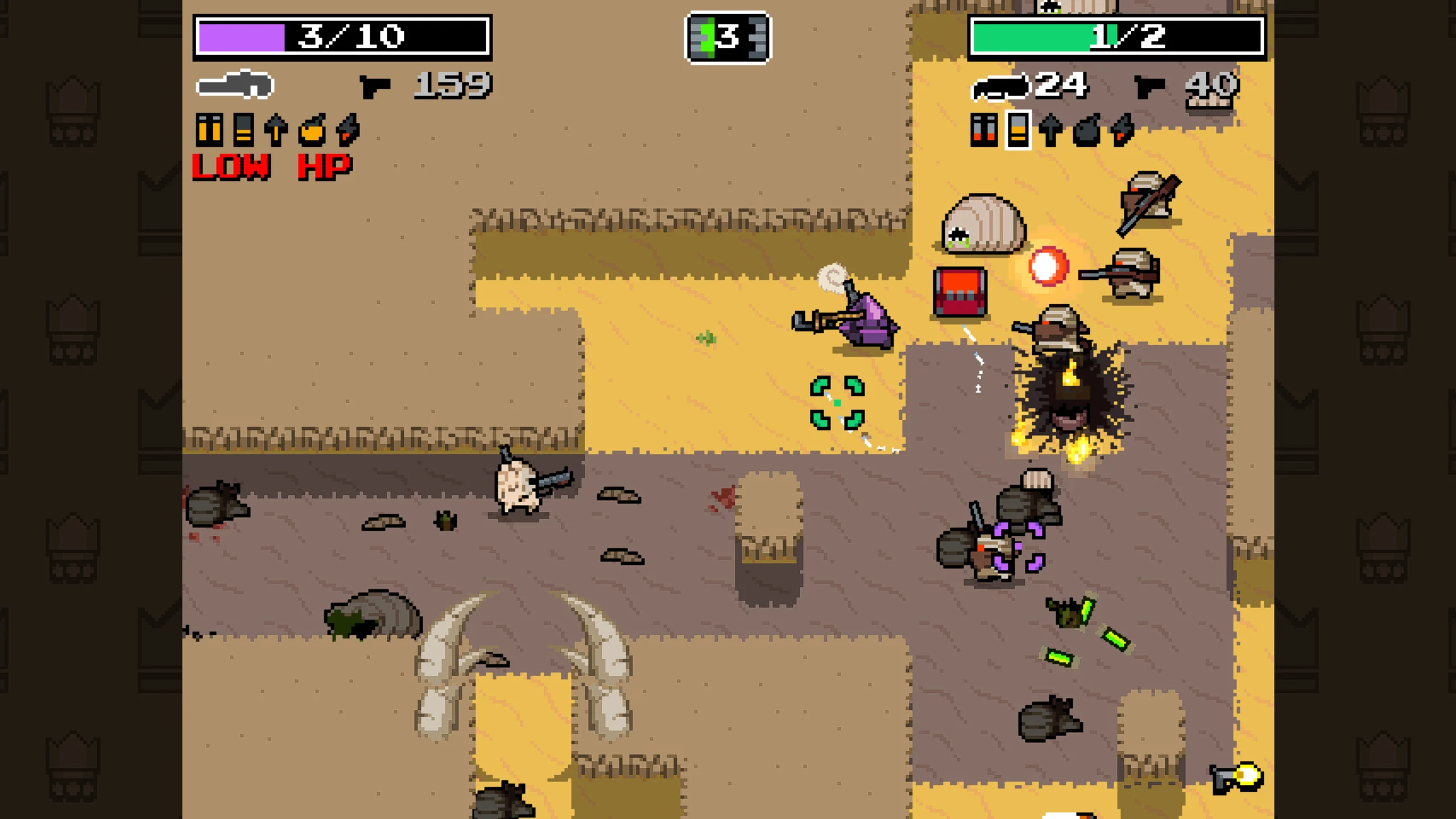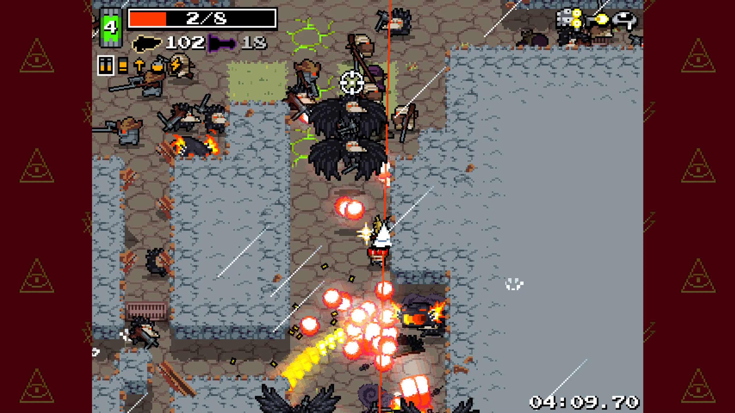 Nuclear Throne — динамичный шутер с видом сверху в жанре roguelike, разработанный студией Vlambeer и выпущенный на Nintendo Switch в марте 2019 года. Игра предлагает постапокалиптический сеттинг, быстрый игровой процесс и высокую реиграбельность благодаря большому выбору персонажей, разнообразному оружию и системе мутаций. Мир пережил глобальную катастрофу, человечество исчезло, а по пустошам бродят мутанты. В этих условиях игроку предстоит решить, сможет ли его герой добраться до Ядерного Трона.