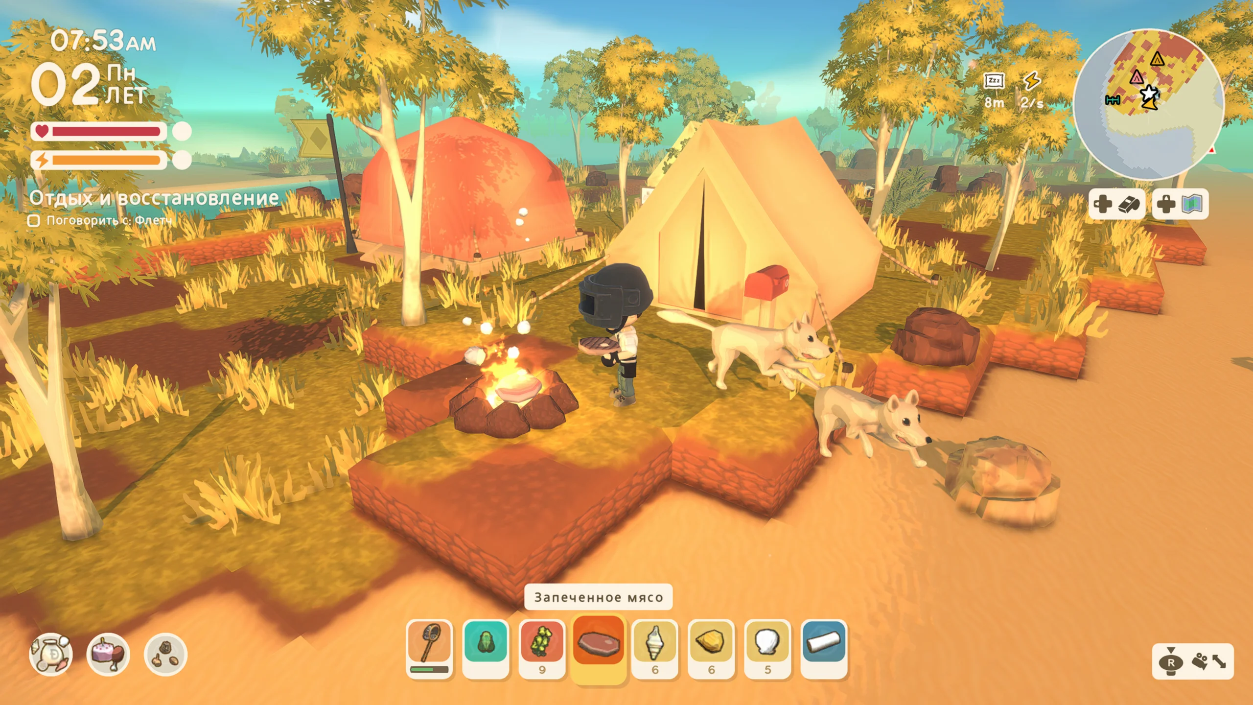 Игровой процесс объединяет элементы фермерства, охоты, рыбалки, крафта и строительства. Игрок свободно исследует остров, добывает материалы, разводит животных, занимается садоводством и улучшает инструменты. Важную роль играет развитие поселения: каждый новый NPC открывает доступ к дополнительным товарам, мастерским или возможностям. Экосистема острова реагирует на время суток и погоду, а дикая фауна может быть как полезной, так и опасной. Игра поддерживает многопользовательский режим до четырёх человек, позволяя совместно развивать один остров.