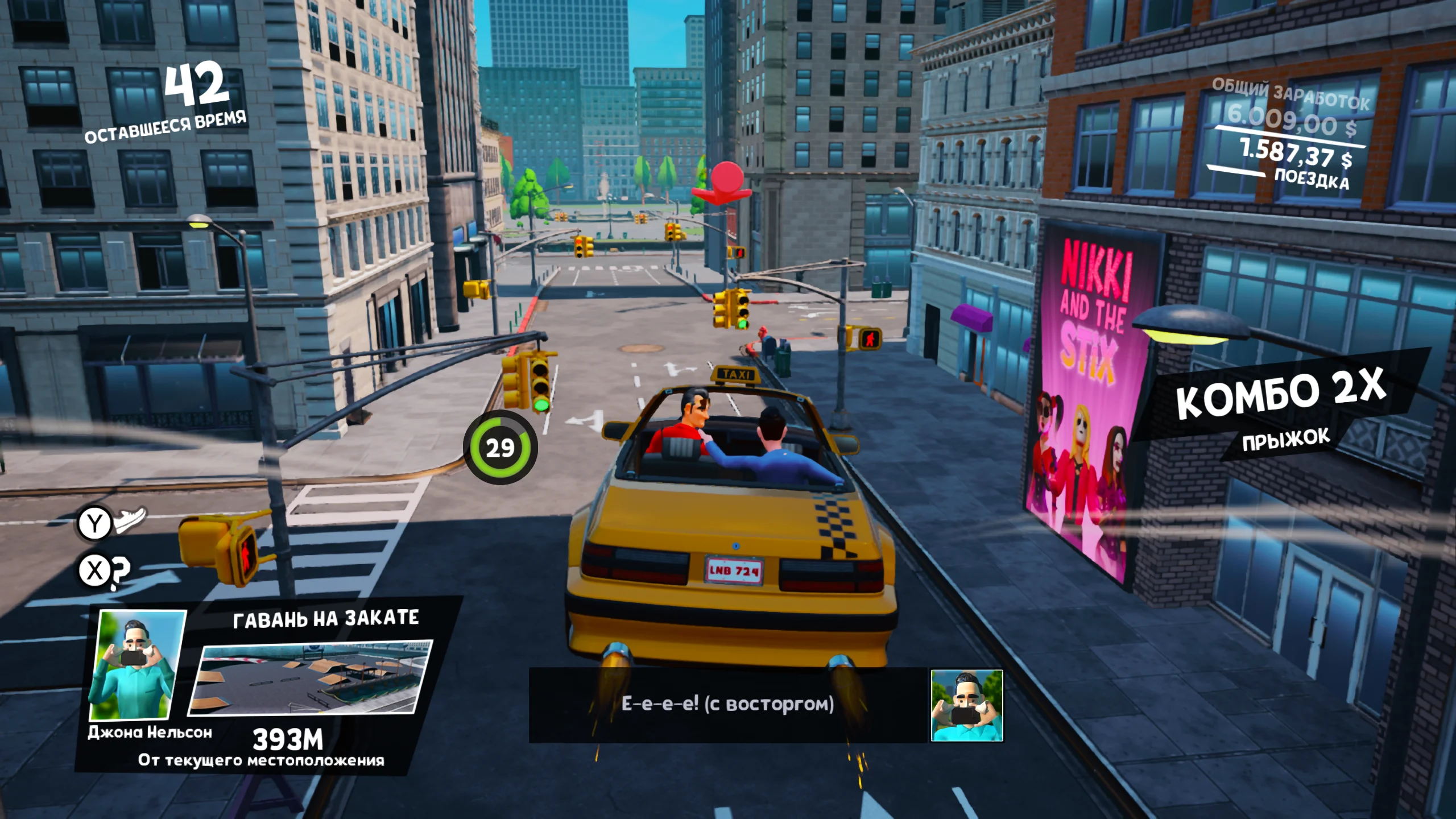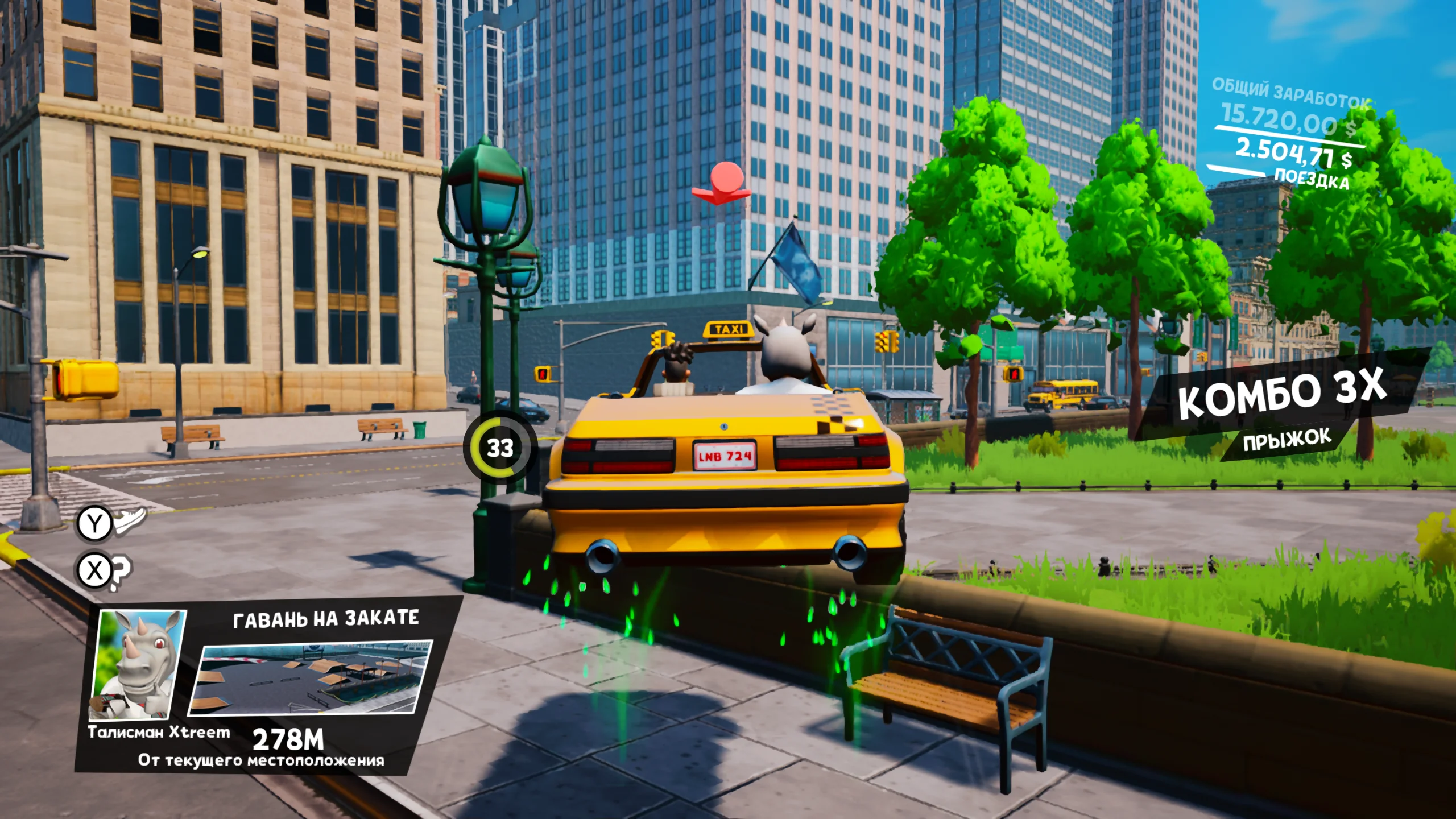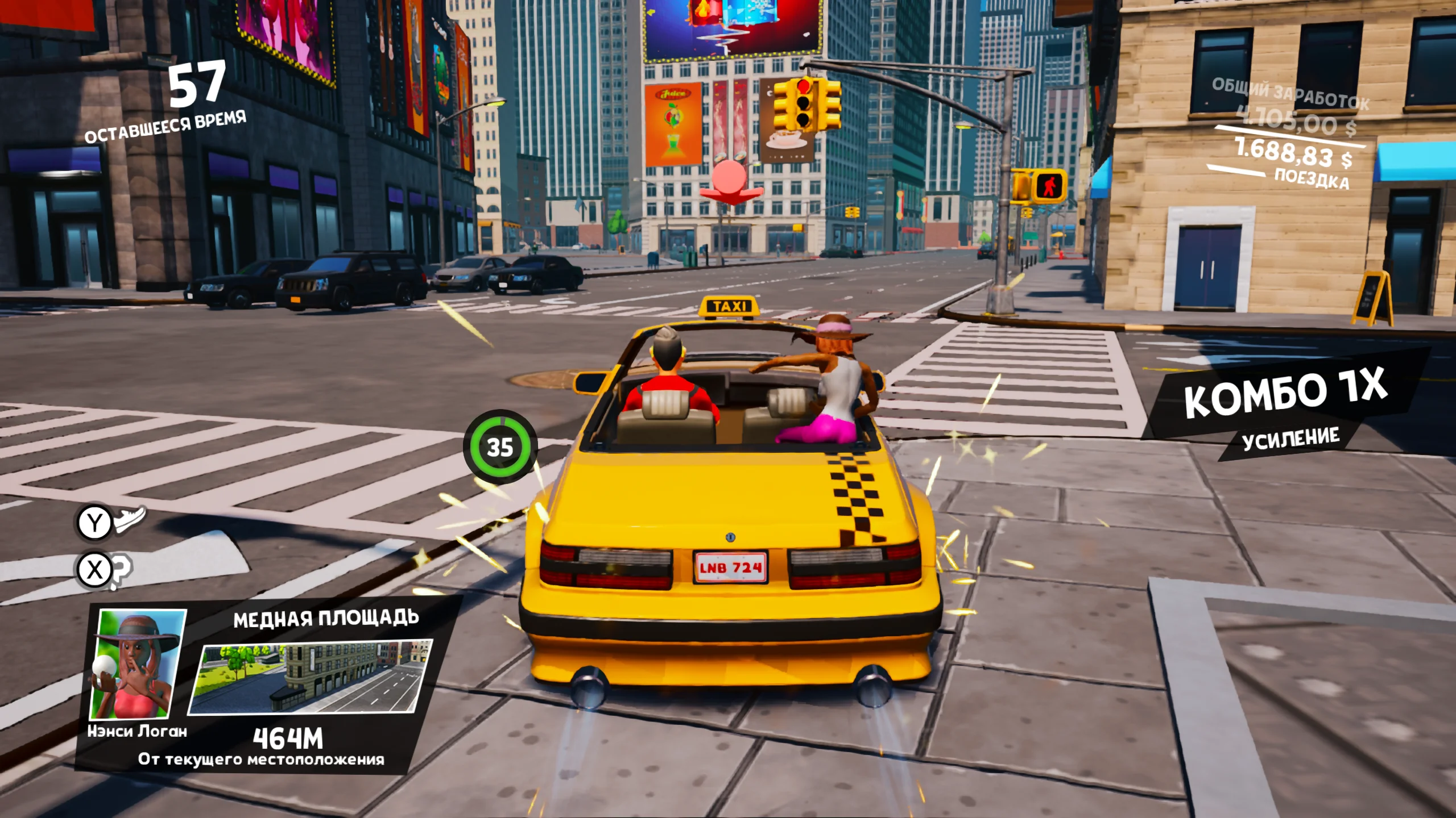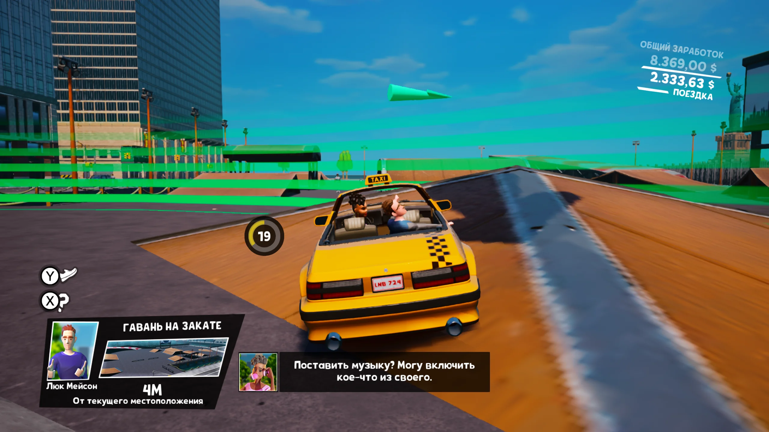 Игровой процесс сосредоточен на быстрой и рискованной езде по улицам города. Игроки подбирают эксцентричных пассажиров и стремятся доставить их вовремя, маневрируя в плотном трафике, перепрыгивая препятствия и прокладывая оптимальные маршруты через сложные перекрёстки. В игре представлены несколько режимов, включая Arcade Mode с ограничением по времени, Free Roam для свободного исследования карты и Pro Mode с повышенными требованиями к мастерству управления. По мере прохождения открываются новые транспортные средства, всего доступно семь автомобилей, от классического жёлтого такси до спортивных и мускул-каров, каждый из которых обладает собственными характеристиками.