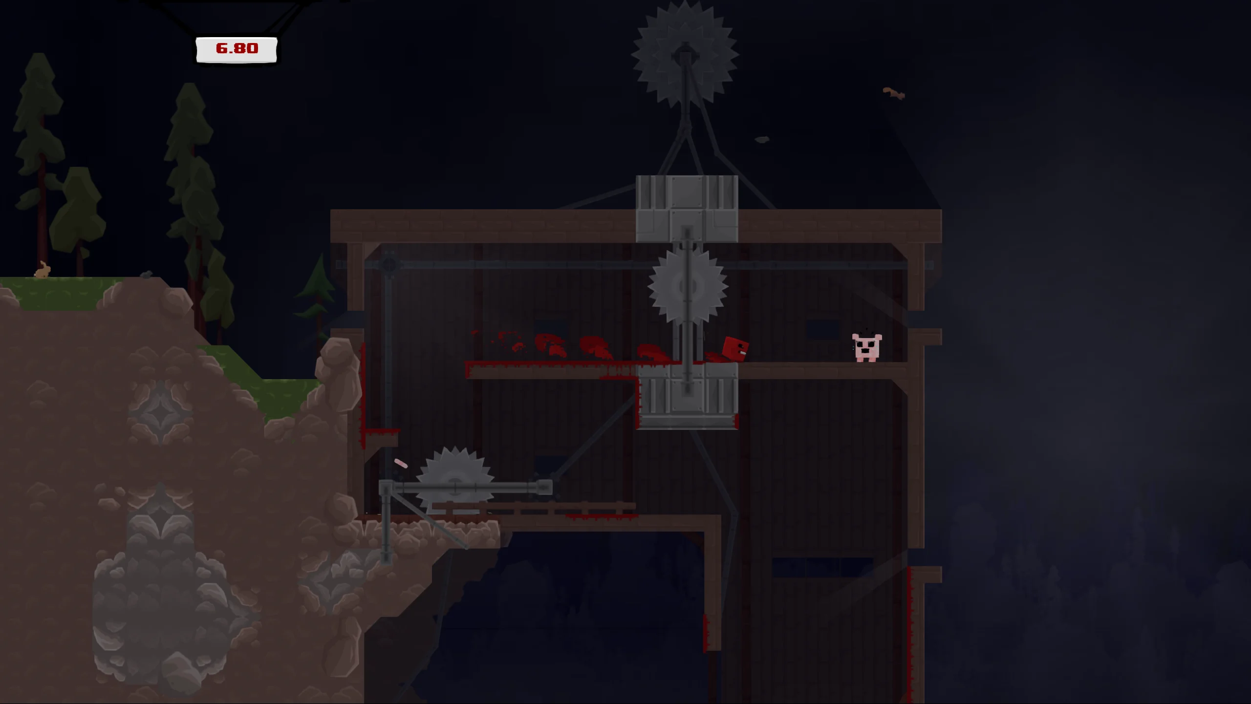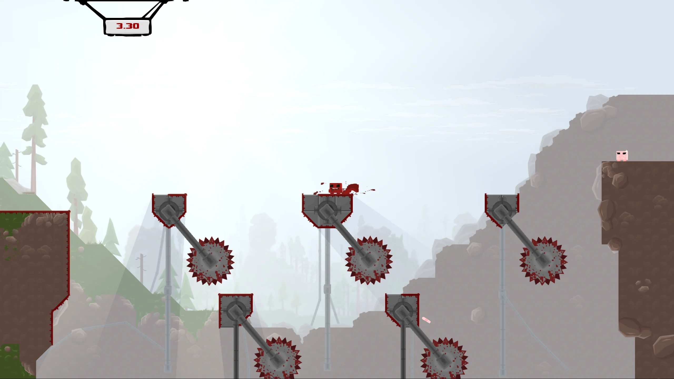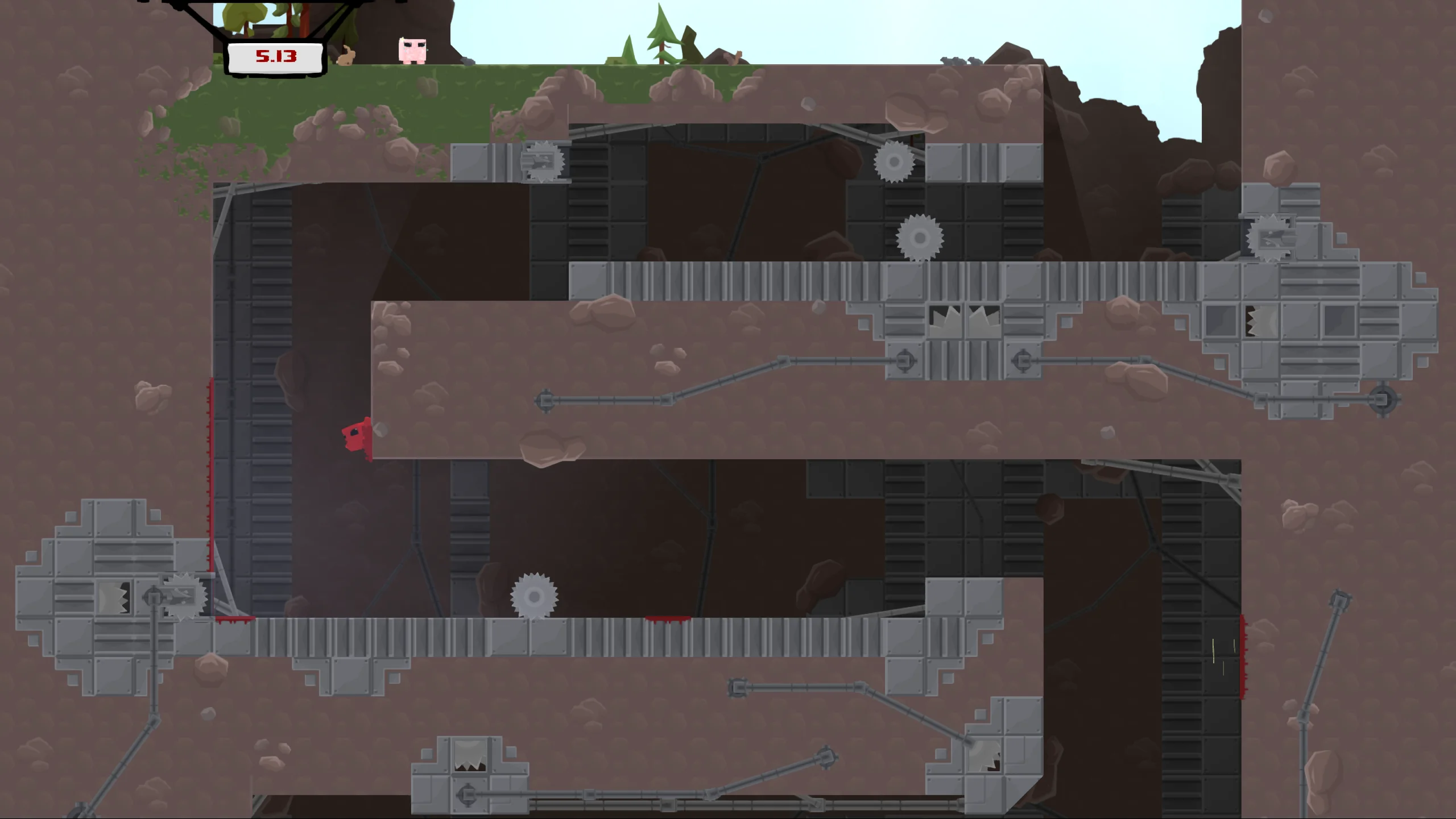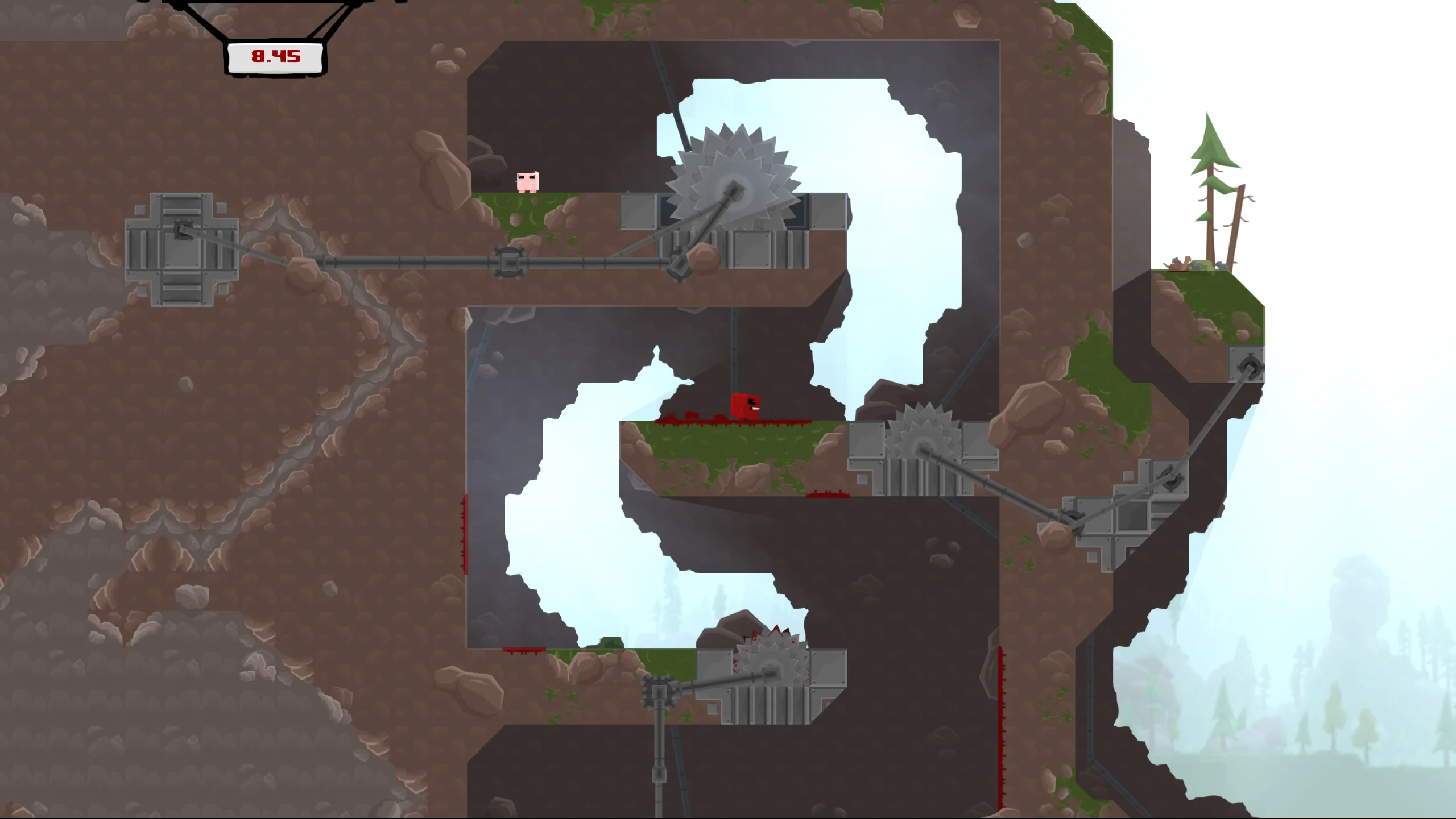 Игровой процесс представляет собой классический платформер с экстремальным уровнем сложности. Игроку предстоит преодолеть более 300 тщательно спроектированных уровней, выполняя точные прыжки, цепляясь за стены, скользя по поверхностям и избегая пил, шипов и других механических угроз. Одной из ключевых особенностей является мгновенный перезапуск уровня после гибели персонажа, что поощряет эксперименты и позволяет быстро оттачивать навыки. Помимо одиночной кампании, версия для Nintendo Switch включает режим Race Mode с разделённым экраном, в котором два игрока могут соревноваться в скорости прохождения уровней.