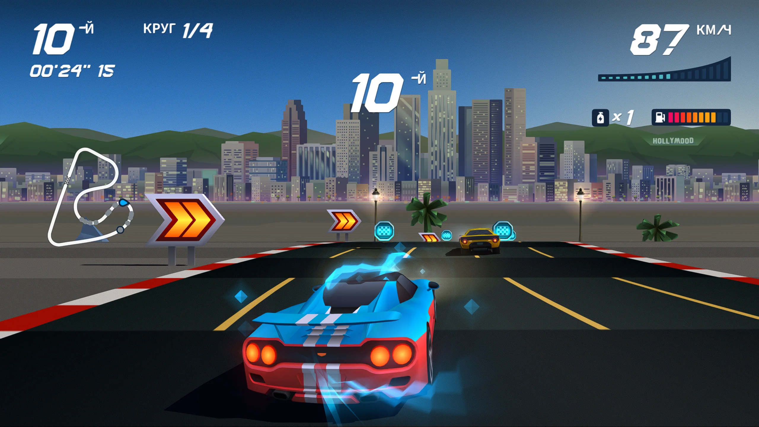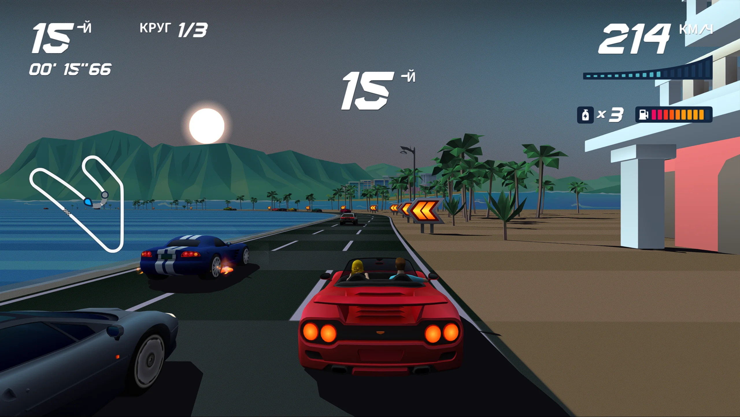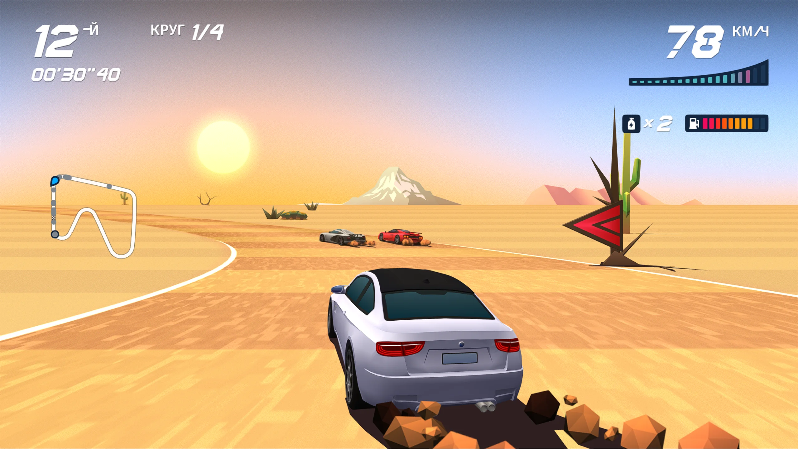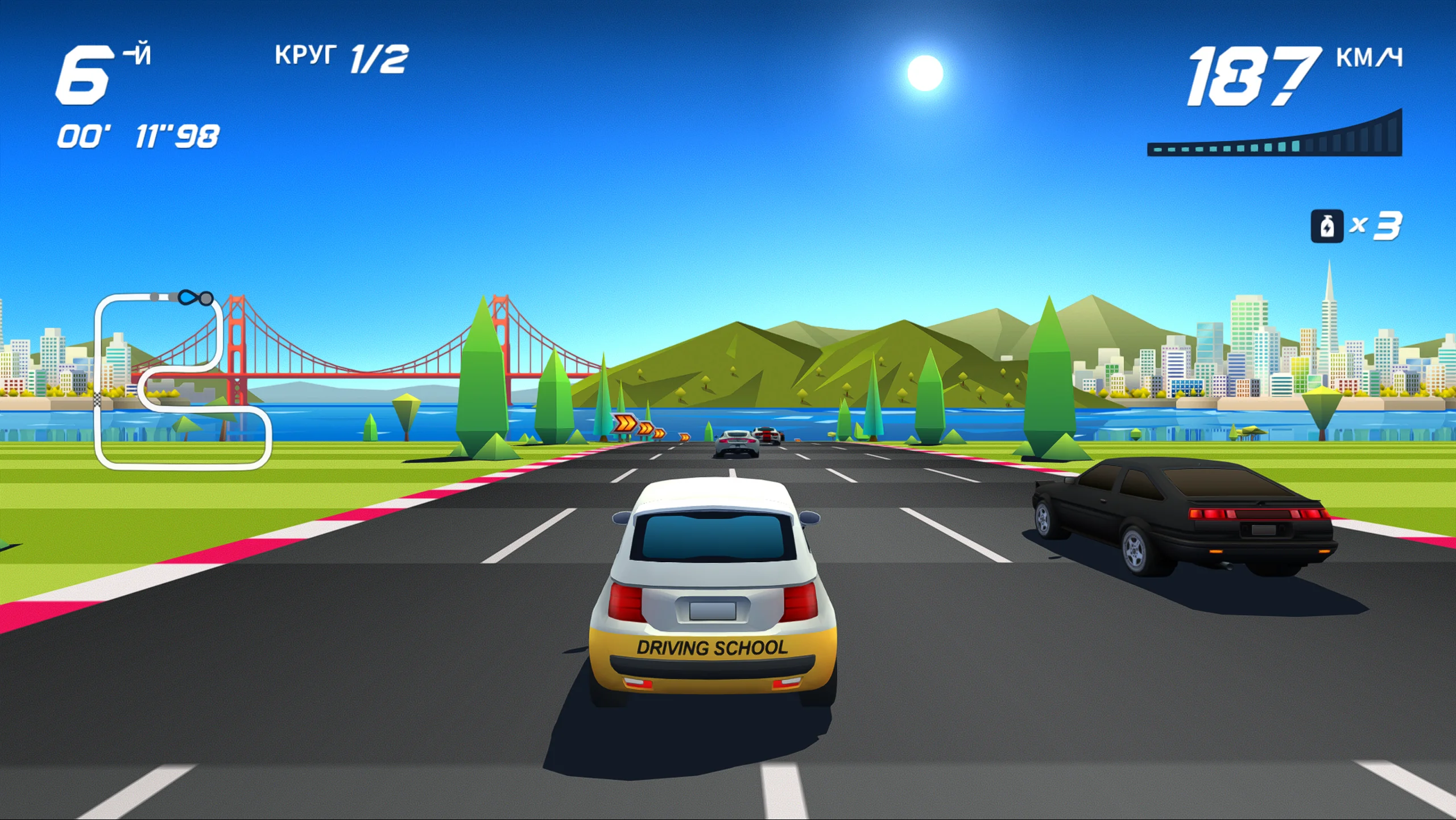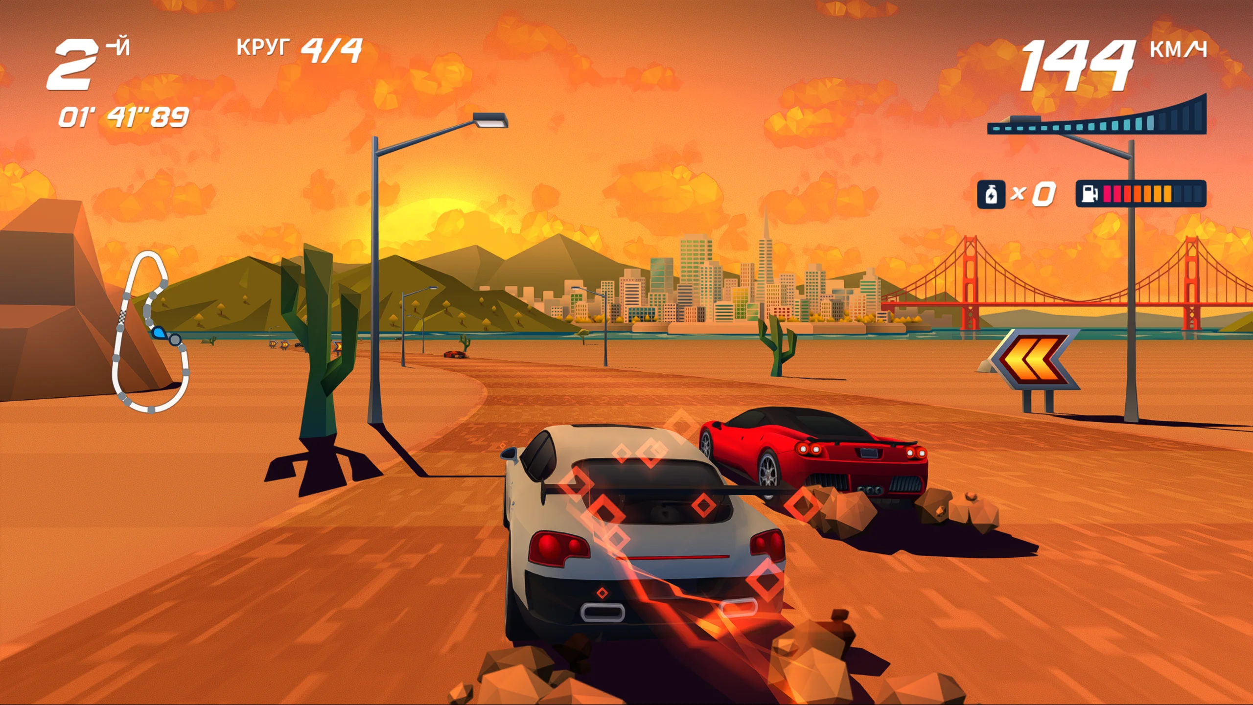 Визуально Horizon Chase Turbo выполнена в современном стилизованном оформлении, вдохновлённом эстетикой 16-битной эпохи и дополненном современными графическими эффектами. Такой подход придаёт трассам и автомобилям яркий и динамичный облик. Дизайн уровней подчёркивает разнообразие окружения, от городских магистралей до экзотических пейзажей, а насыщенная цветовая палитра и плавные анимации усиливают ощущение скорости и азарта. Музыкальное сопровождение поддерживает ритм заездов и усиливает ностальгическое восприятие жанра.