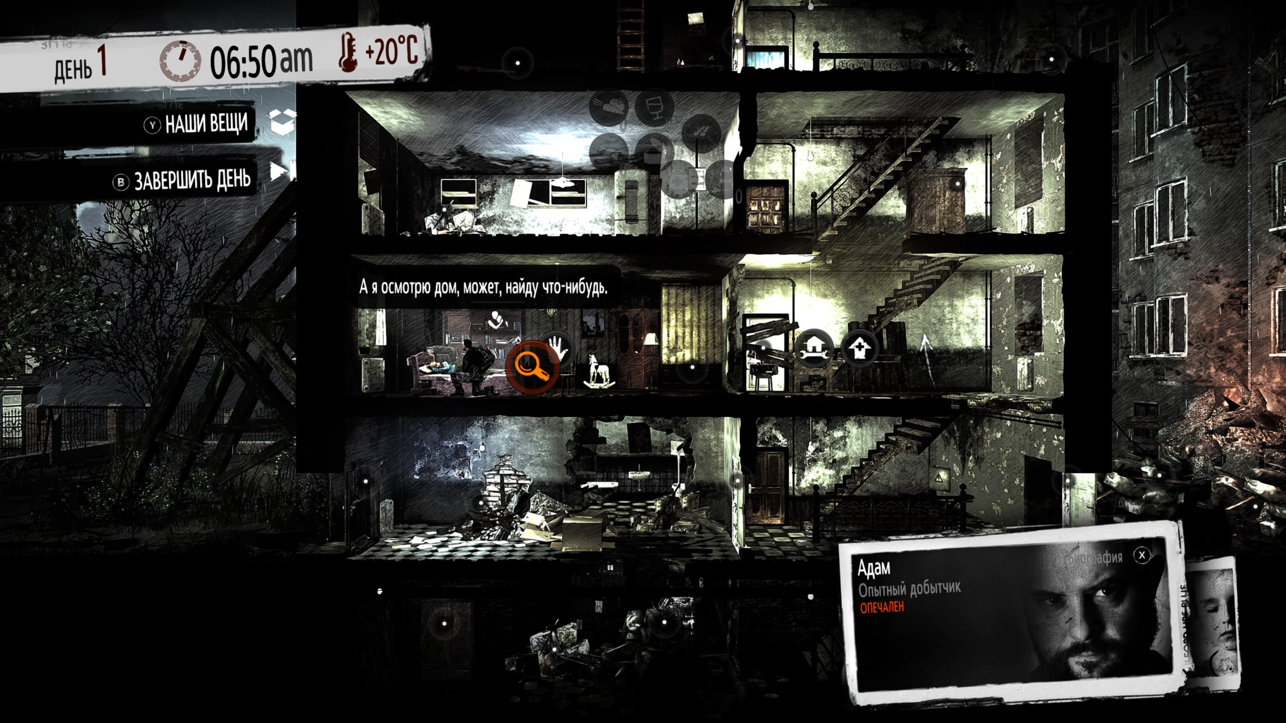 Игровой процесс строится на управлении ограниченными запасами, планировании ночных рейдов и адаптации к постоянно меняющимся условиям. Игроку предстоит принимать тяжёлые моральные решения, выбирая между благополучием отдельных персонажей и выживанием всей группы. В издание входят обновление Anniversary Edition, сюжетное дополнение The Little Ones, показывающее события глазами ребёнка, а также серия DLC This War of Mine Stories с тремя самостоятельными историями: Father’s Promise, The Last Broadcast и Fading Embers.