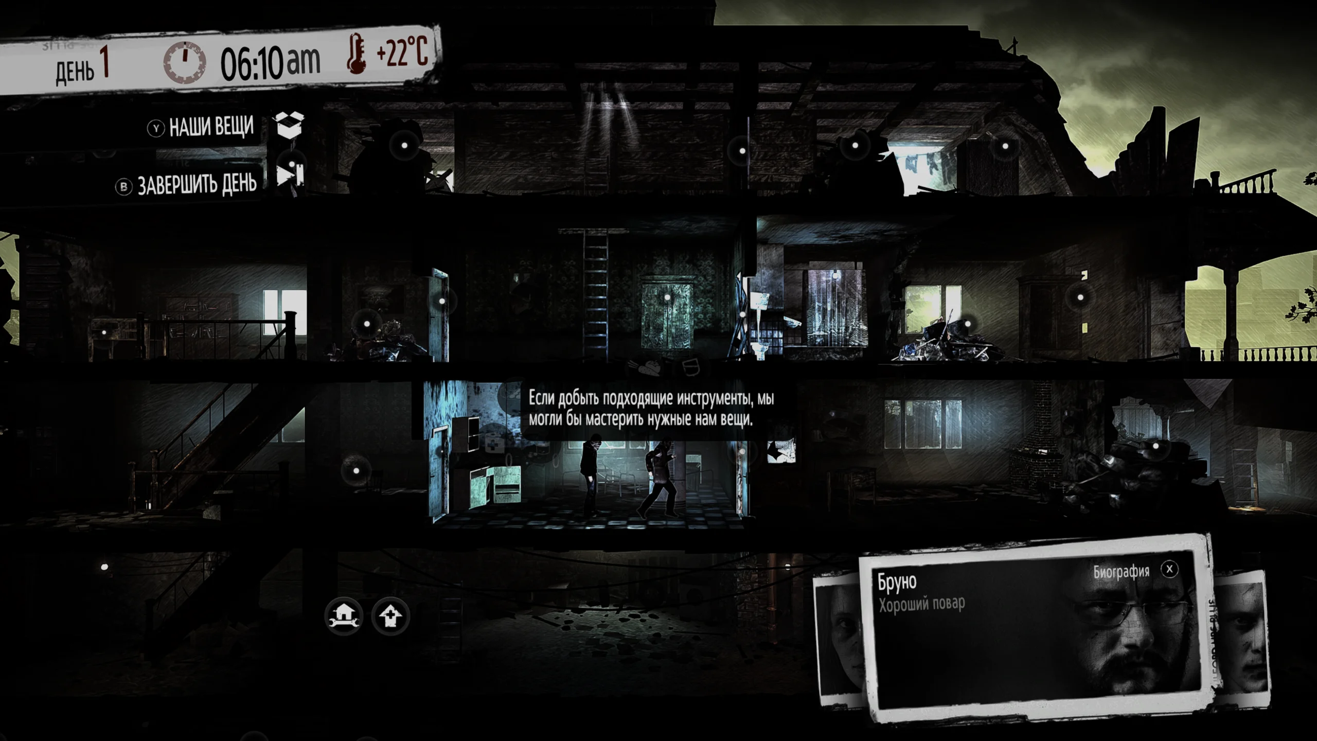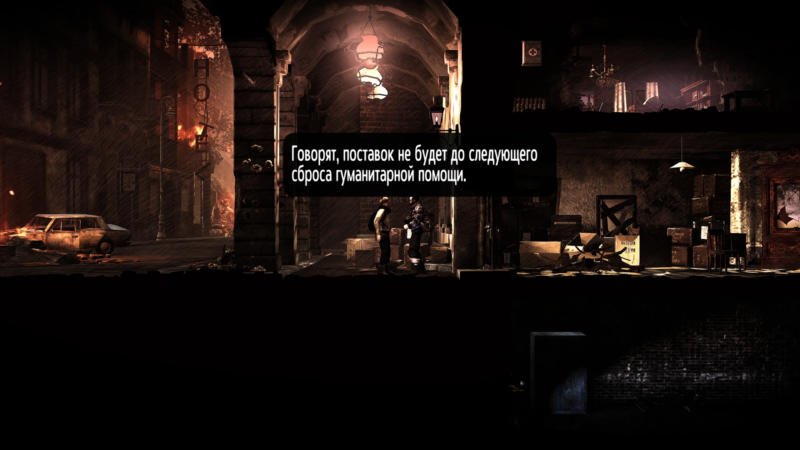 Визуально игра выполнена в мрачном атмосферном двухмерном стиле, подчёркивающем суровую реальность разрушенного города. Интерьеры зданий, улицы и окрестности проработаны так, чтобы усиливать ощущение безысходности и постоянной опасности, а звуковое оформление дополняет напряжение принятия сложных решений и борьбу за выживание.