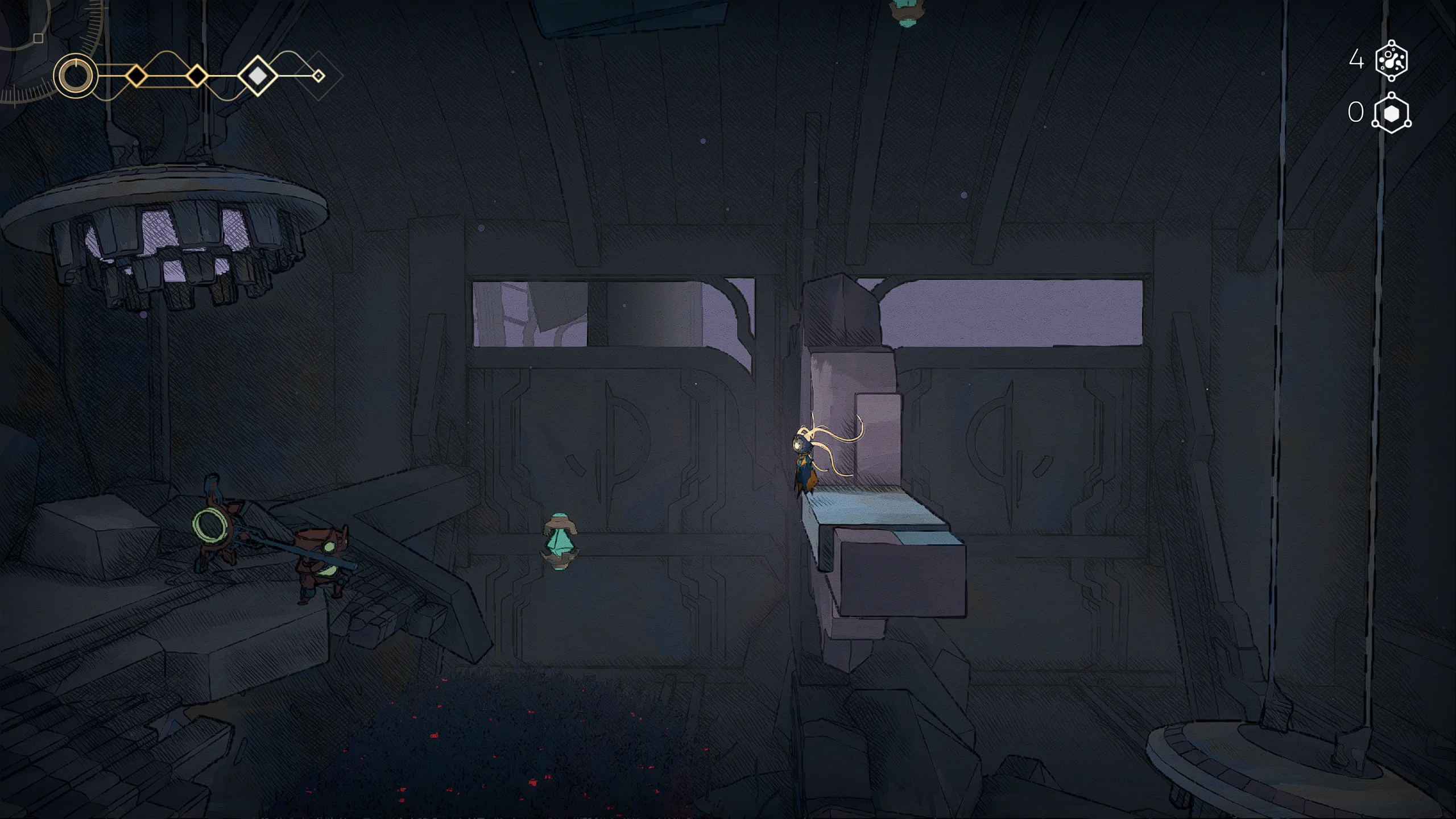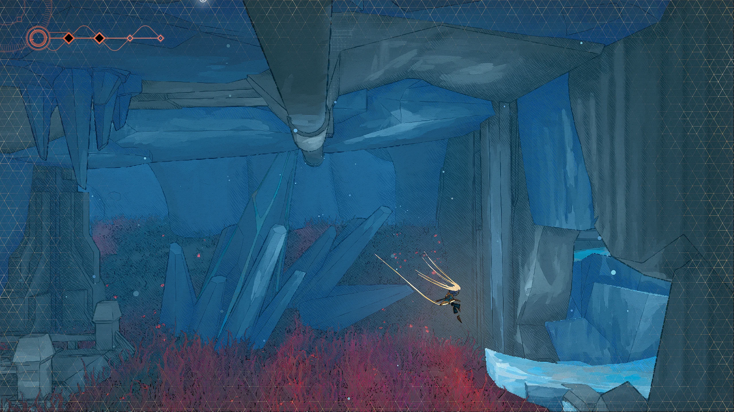Визуально MIO: Memories in Orbit отличается выразительным художественным стилем, сочетающим ручную отрисовку, акварельные текстуры и элементы комиксной графики, что создаёт ощущение живого иллюстрированного мира. Такой подход подчёркивает контраст между технологическим запустением и буйной растительностью, заполнившей корабль. Звуковое сопровождение усиливает атмосферу таинственности и постепенного раскрытия тайн заброшенного космического ковчега.