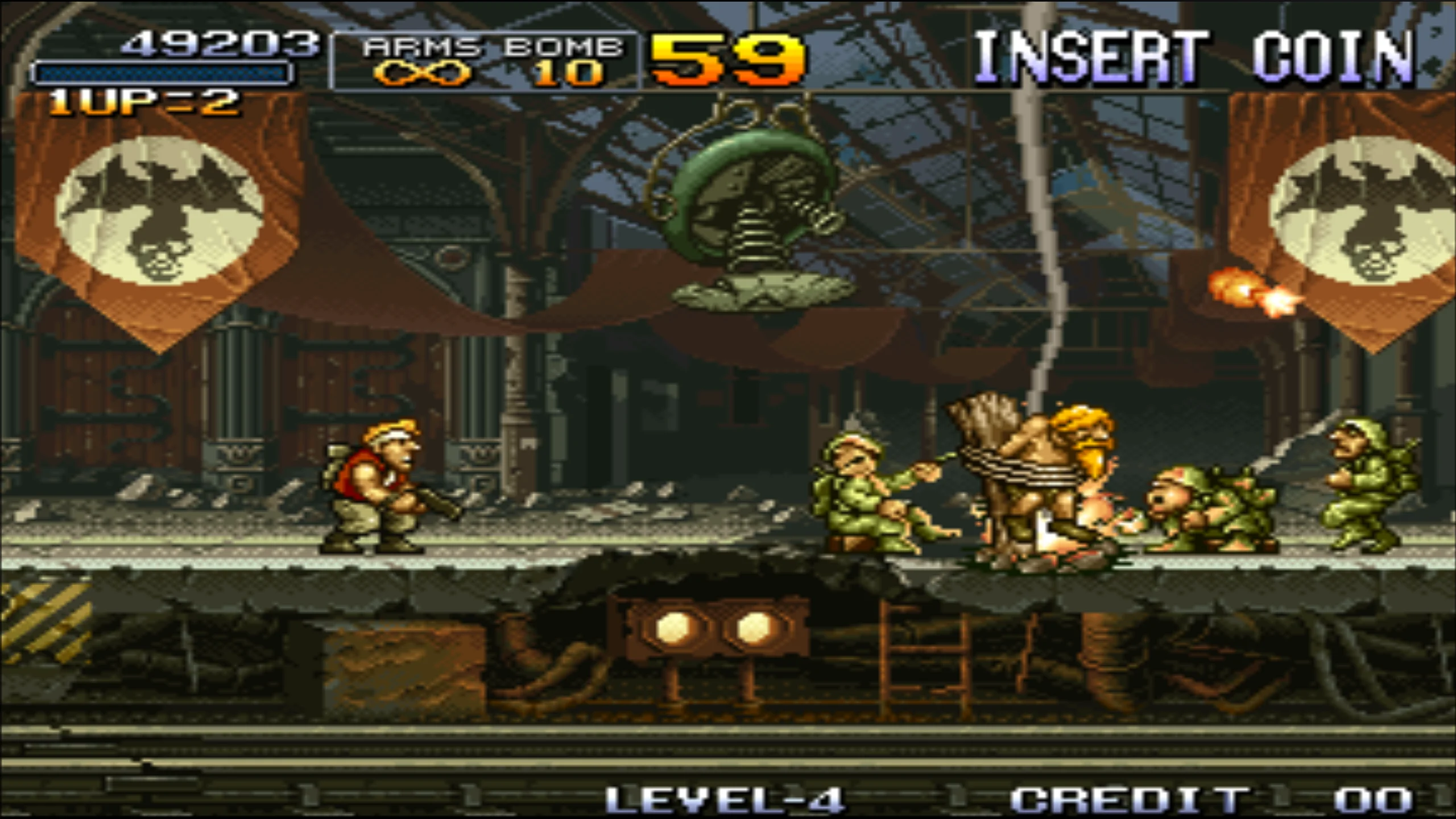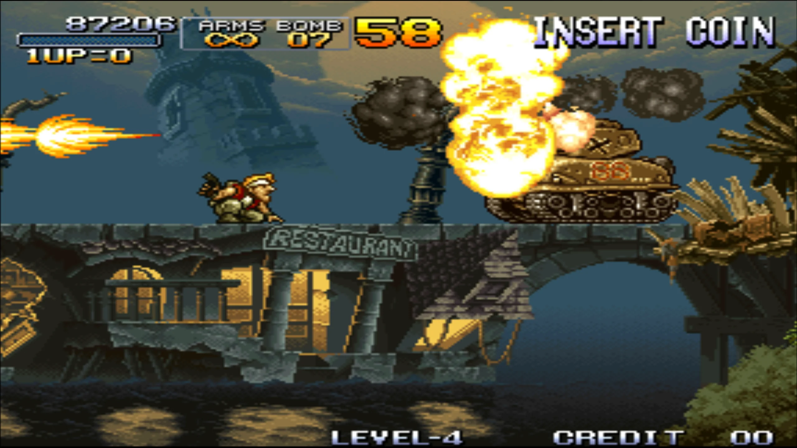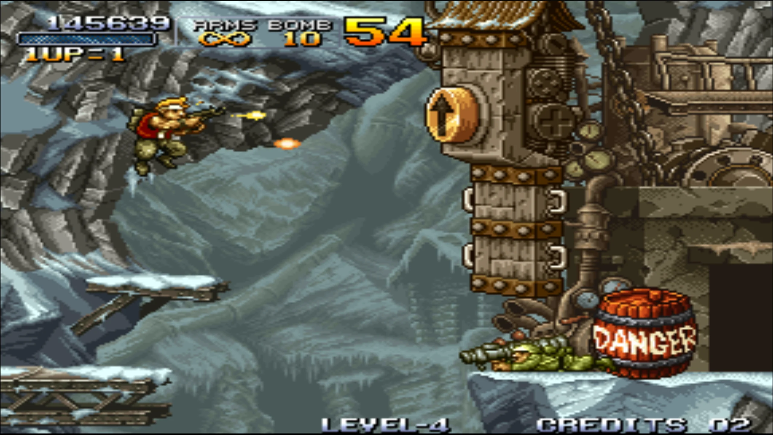 Визуально Metal Slug выполнена в узнаваемом пиксель-арт стиле с детализированными фонами, выразительными анимациями и мультяшным юмором, что выделяло её среди других run-and-gun проектов своего времени и сделало культовой классикой аркадного жанра. Музыкальное сопровождение и звуковые эффекты полностью сохранены из оригинала, подчёркивая динамику боёв и насыщенность экшена.