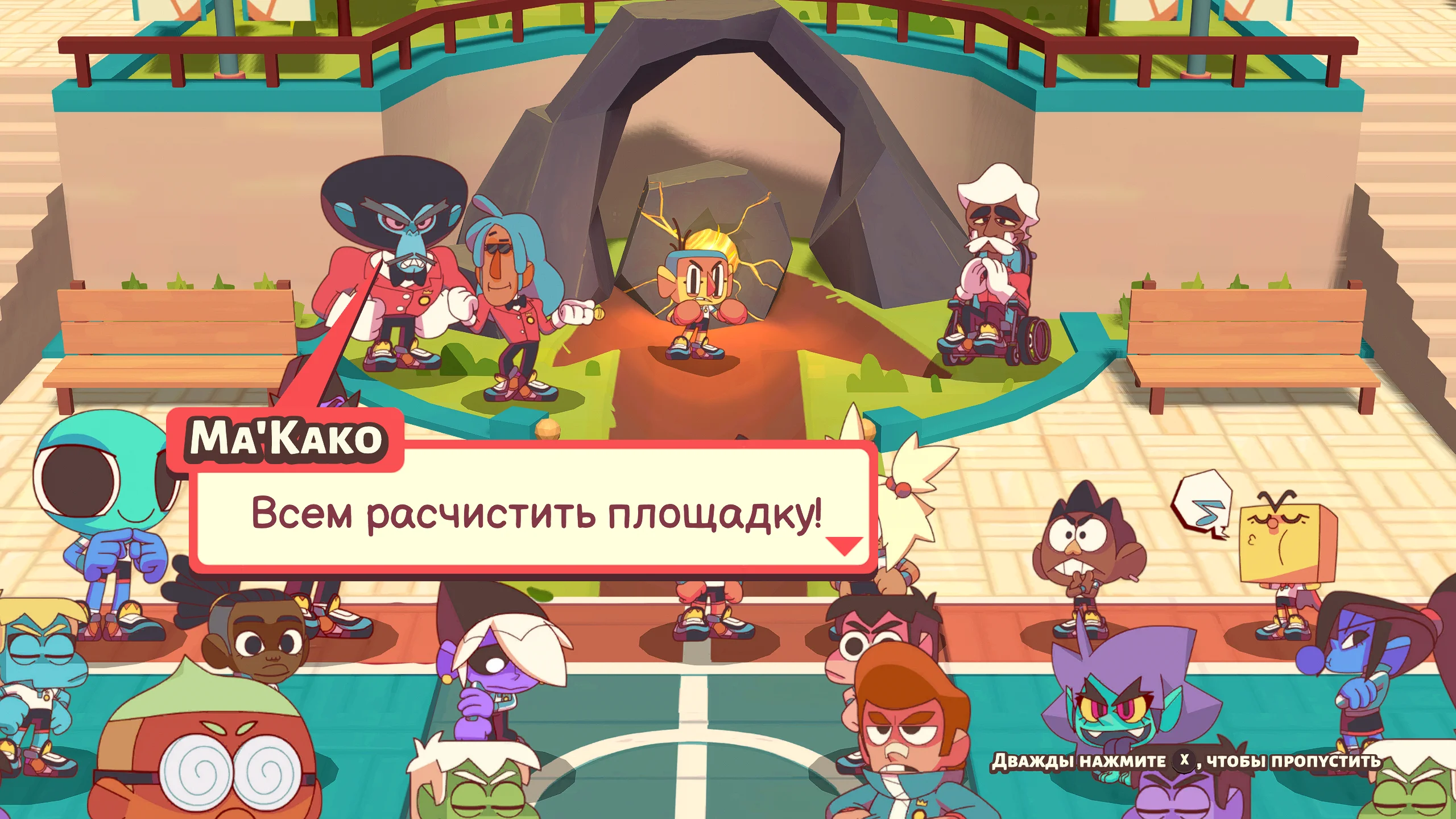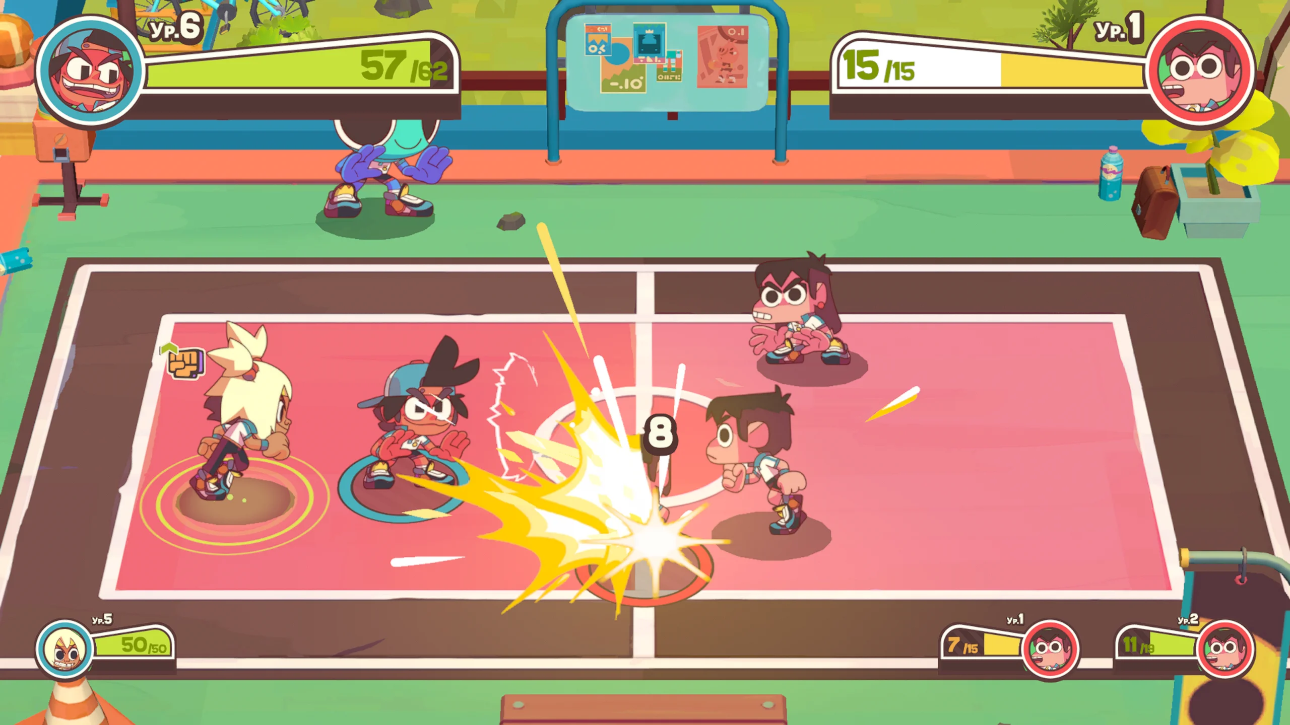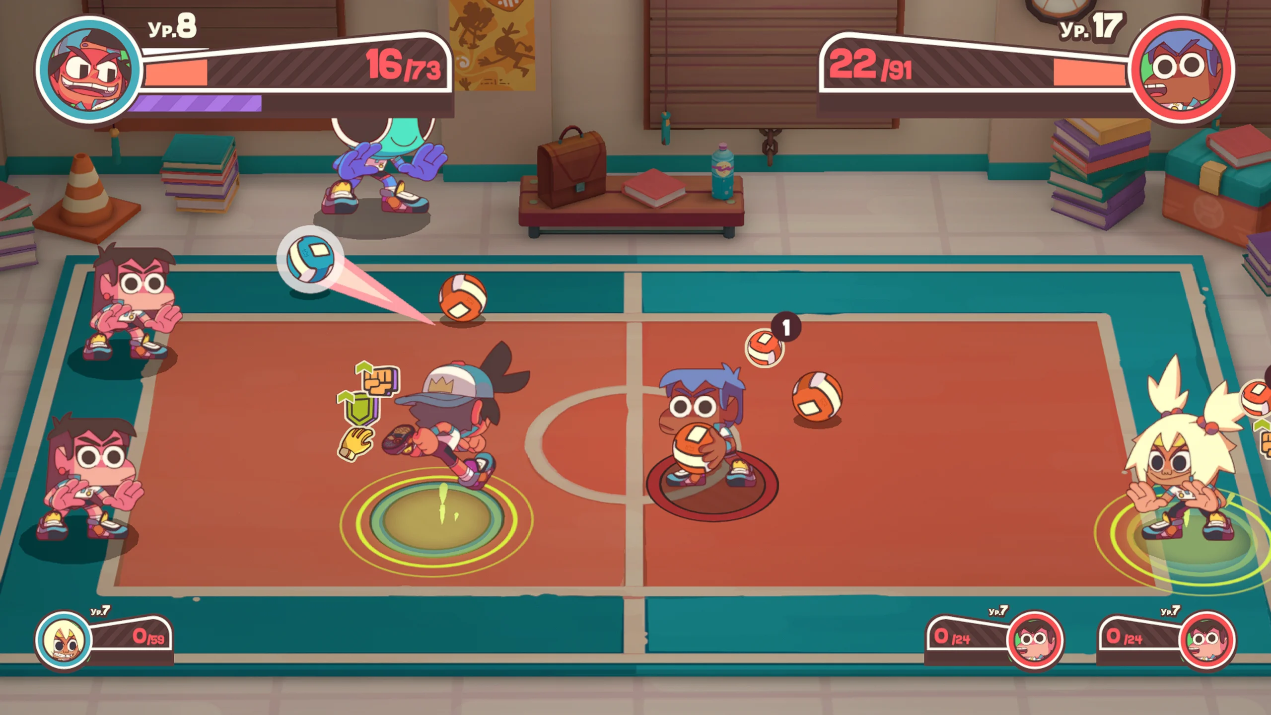 Визуальный стиль Dodgeball Academia выполнен в яркой мультяшной эстетике с выразительными персонажами и живыми окружениями, передающими атмосферу школьного кампуса. Звуковое сопровождение подчёркивает энергичность матчей и эмоциональность событий, а диалоги и сюжетные сцены усиливают вовлечённость в происходящее.