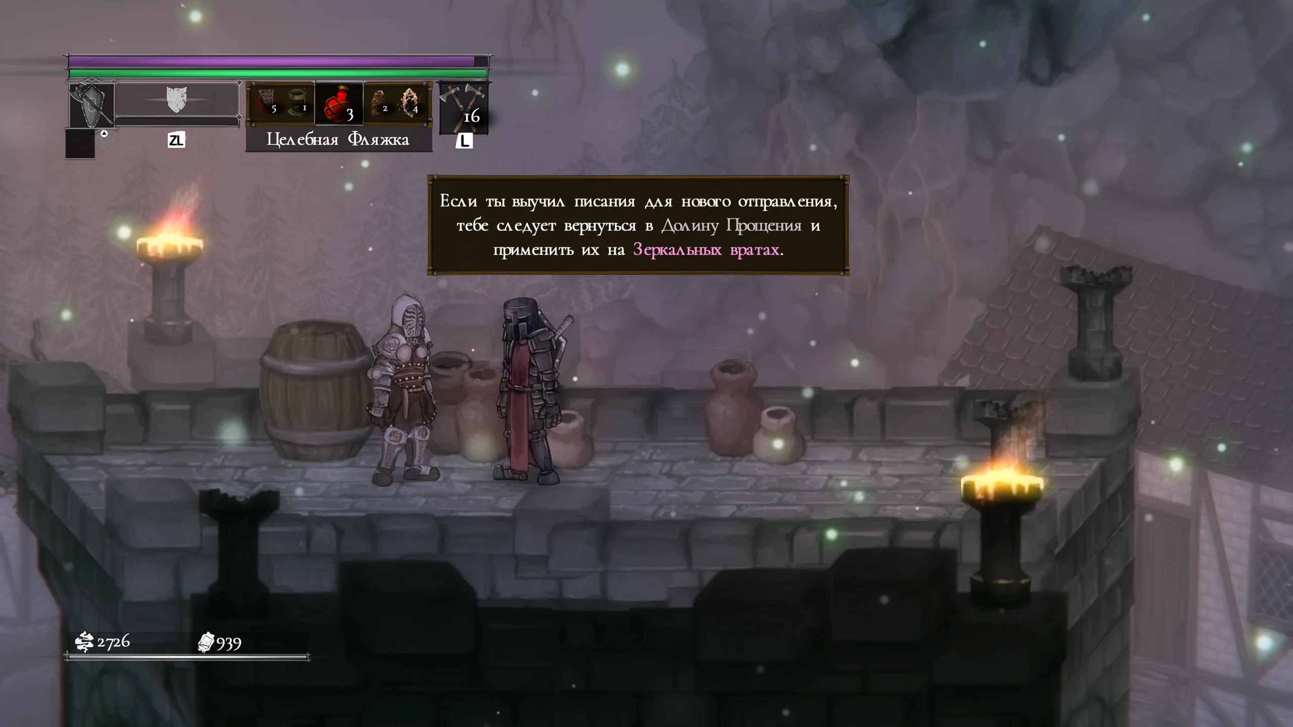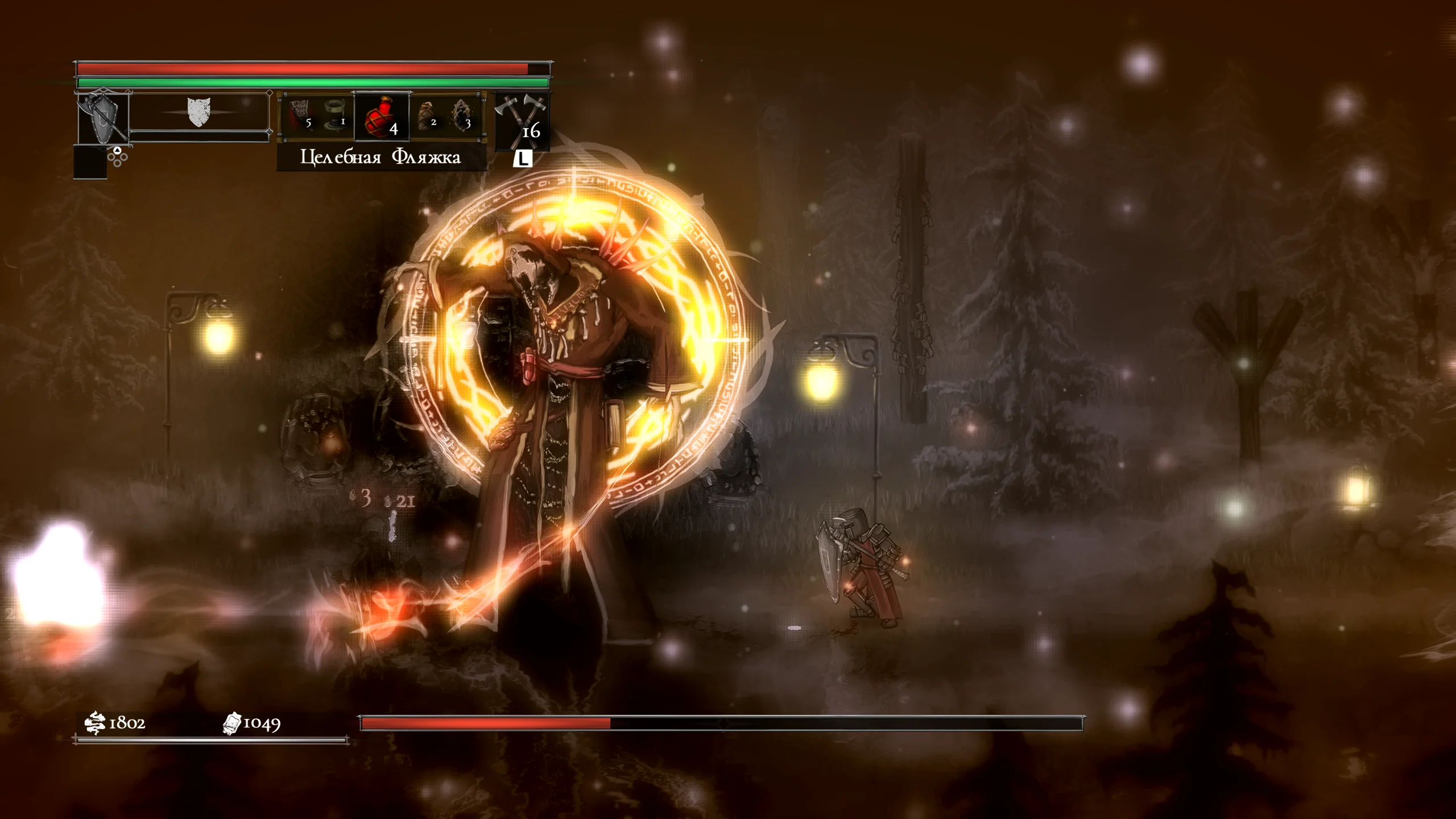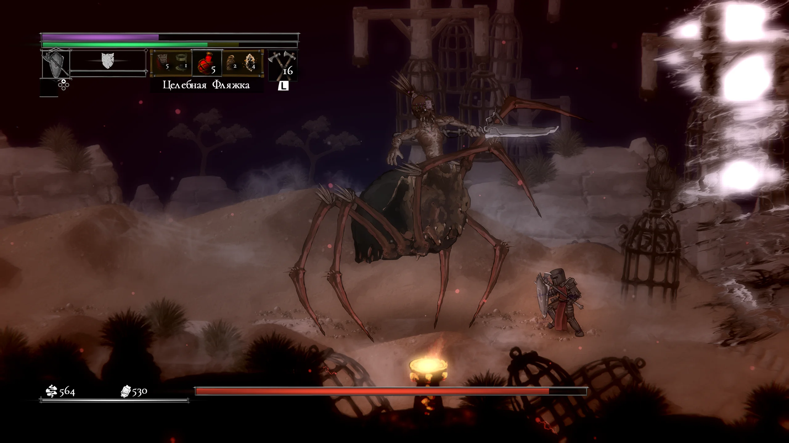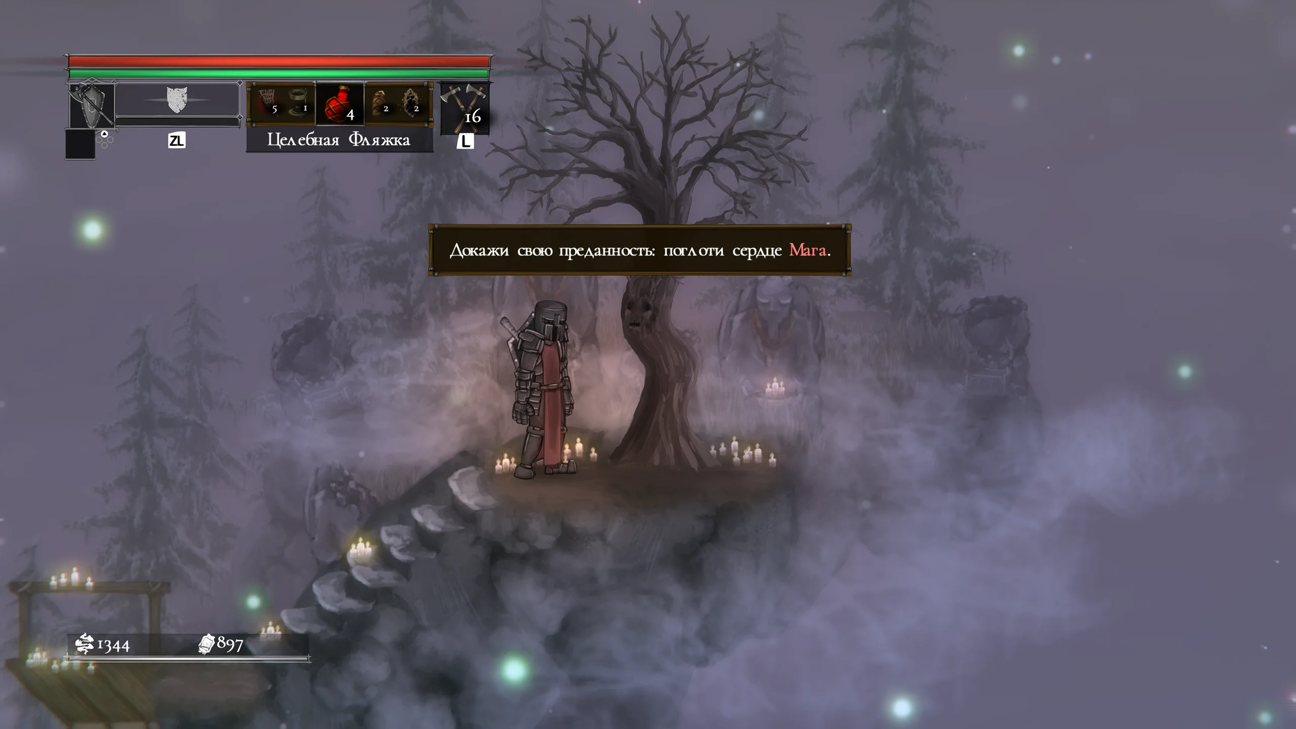 Визуально игра выполнена в мрачной рисованной двумерной графике с детализированными персонажами и окружением. Локации включают разрушенные крепости, леса и руины, передающие атмосферу упадка и постоянной угрозы. Анимации боёв подчёркивают тяжесть ударов и динамику схваток, а музыкальное сопровождение и звуковые эффекты усиливают напряжение и драматизм происходящего.