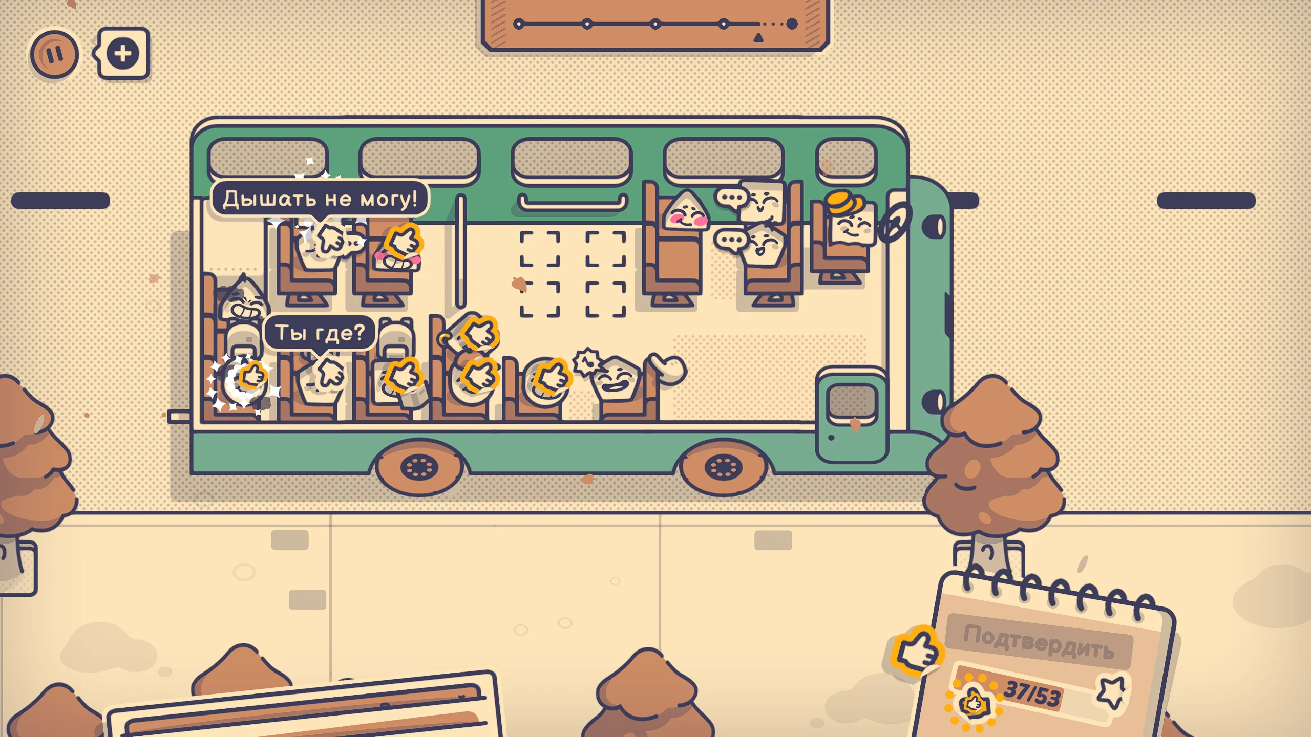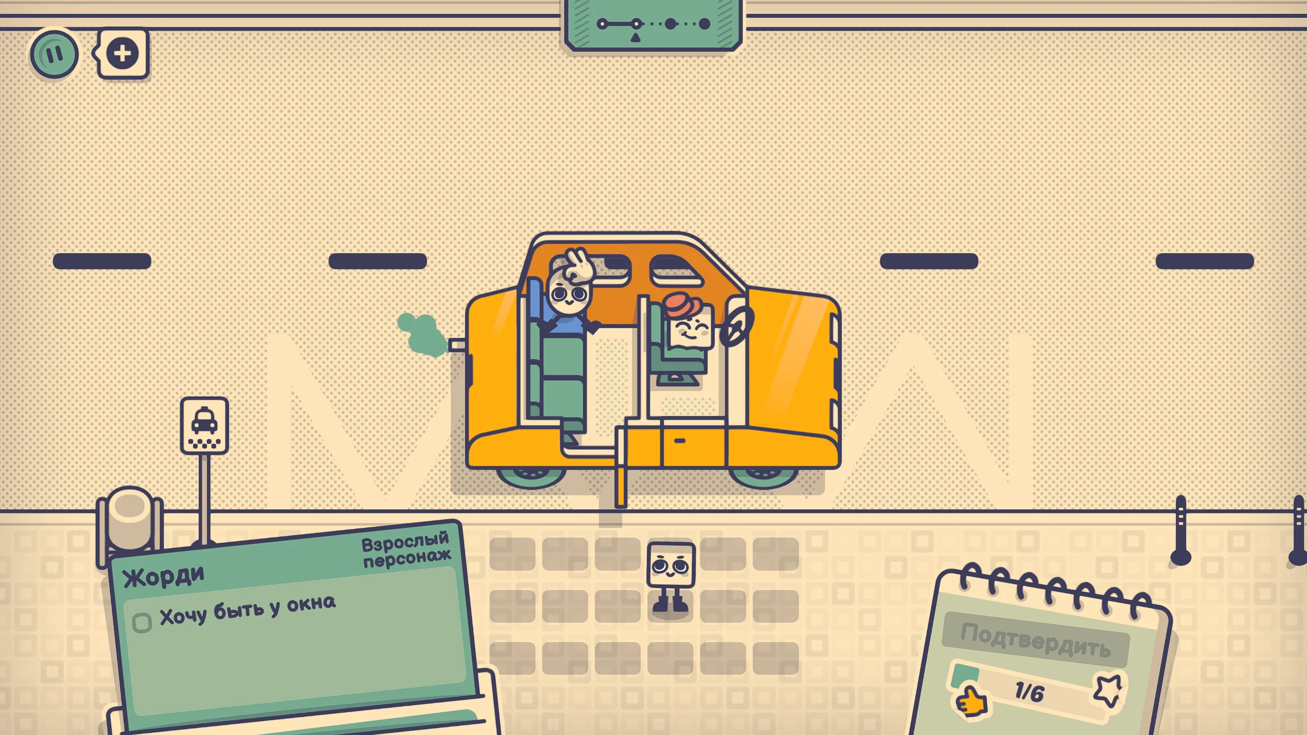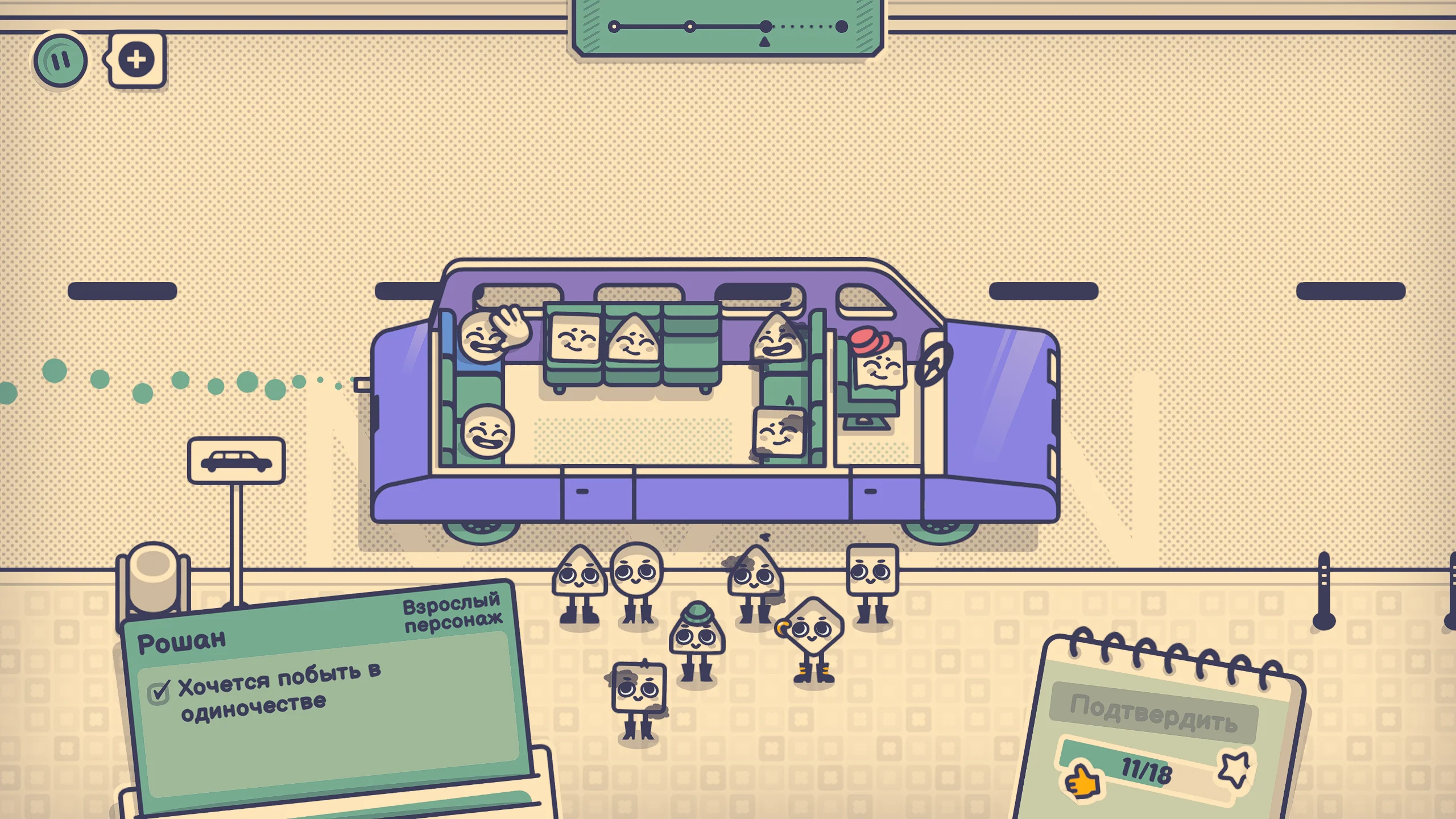 Сюжет игры носит условный характер и строится вокруг различных сцен из повседневной жизни. Игрок сталкивается с разнообразными персонажами в общественных местах, от транспорта до публичных мероприятий, где необходимо учитывать их особенности, привычки и поведение. Важно чувствовать обстановку и подбирать для каждого оптимальное место. Через такие ситуации игра раскрывает комичные и узнаваемые аспекты человеческого поведения, создавая лёгкую и ироничную атмосферу.