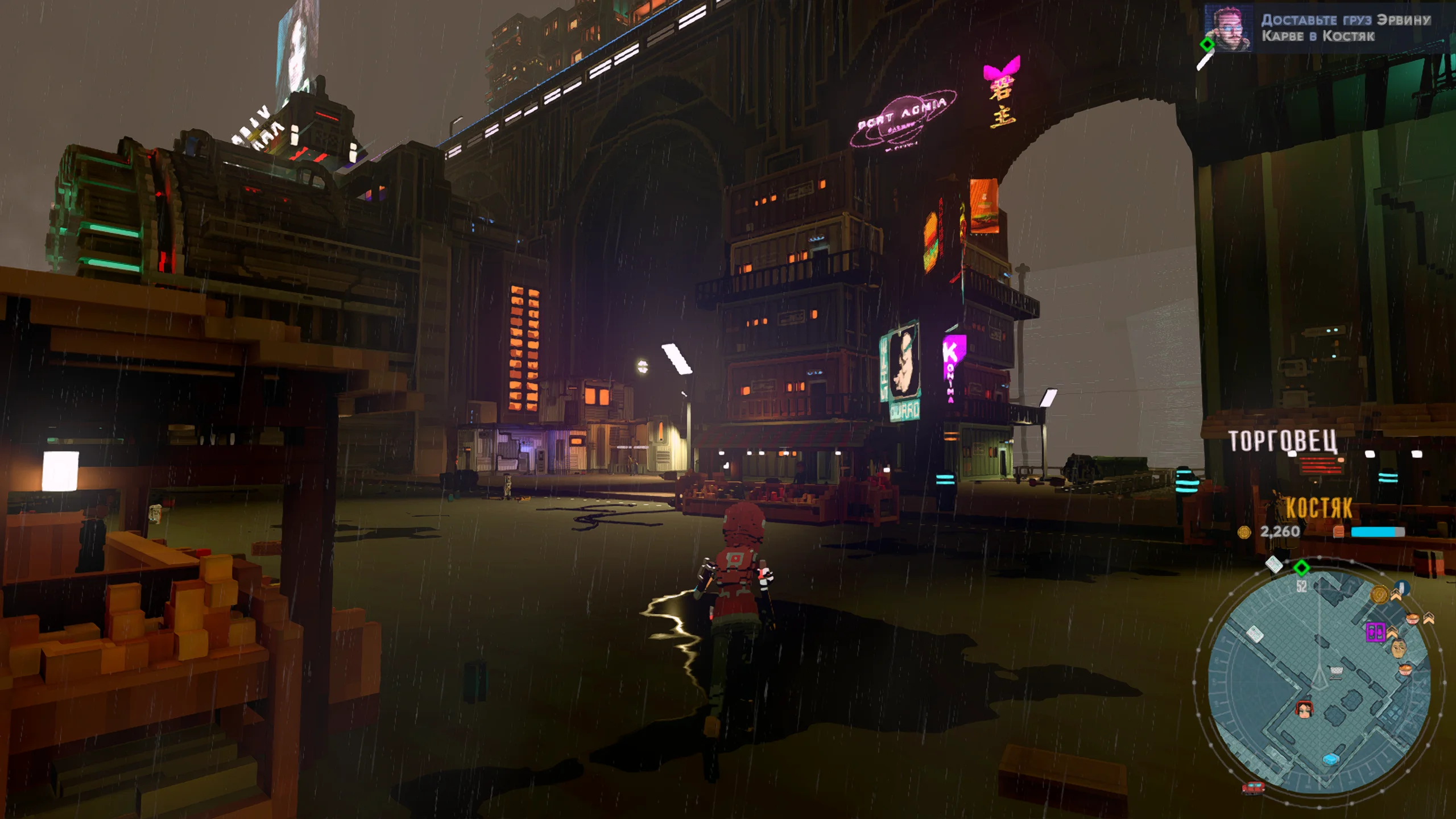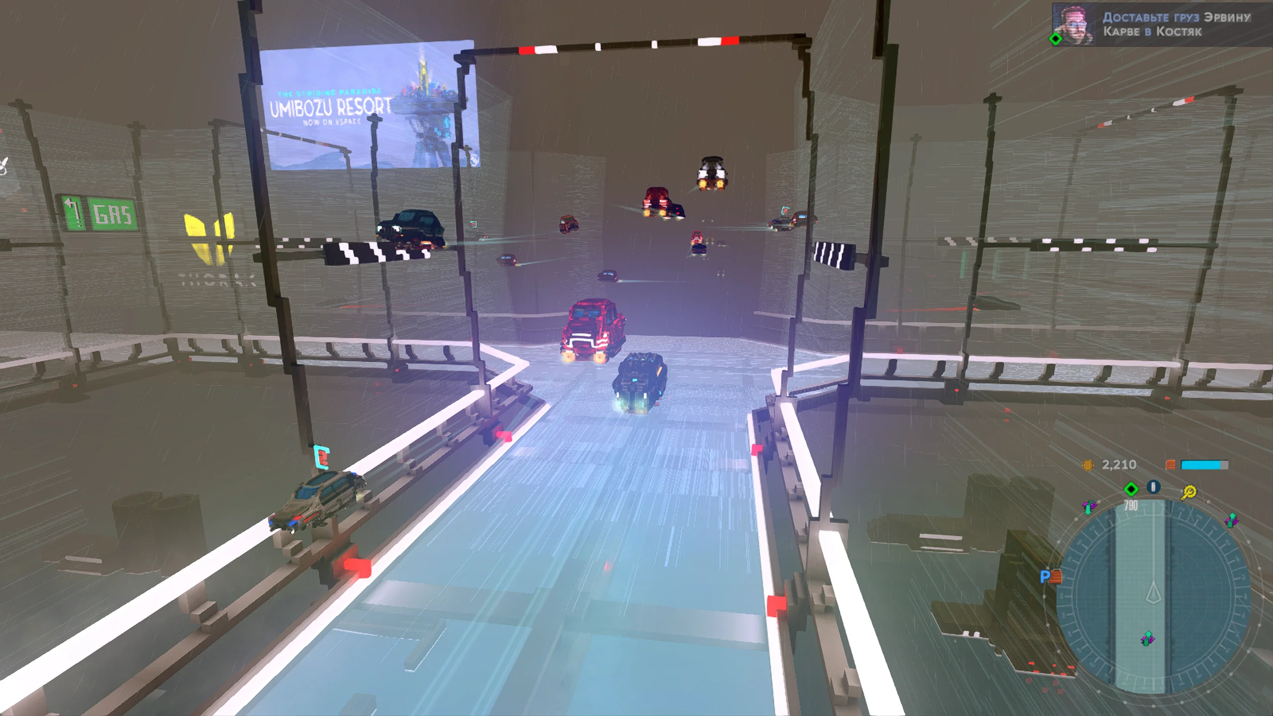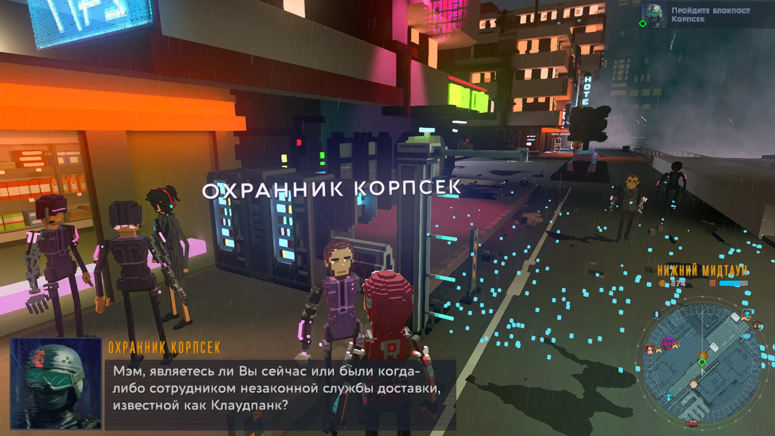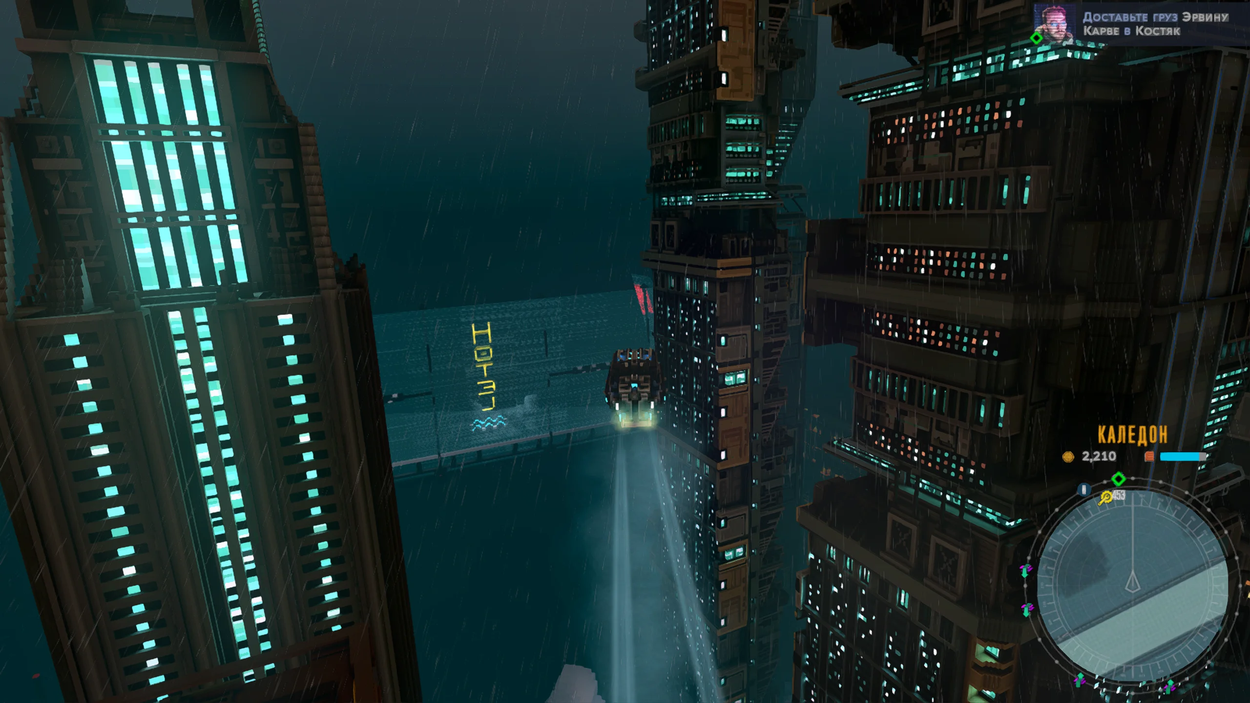 Визуально игра выполнена в стилизованной воксельной графике с ярким неоновым освещением, передающим атмосферу киберпанка. Город представлен многоуровневым пространством с разнообразными районами, от индустриальных зон до элитных кварталов. Музыкальное сопровождение сочетает электронные композиции с атмосферными треками, усиливая ощущение погружения в ночной мегаполис, а звуковые эффекты подчёркивают движение транспорта и особенности окружения.