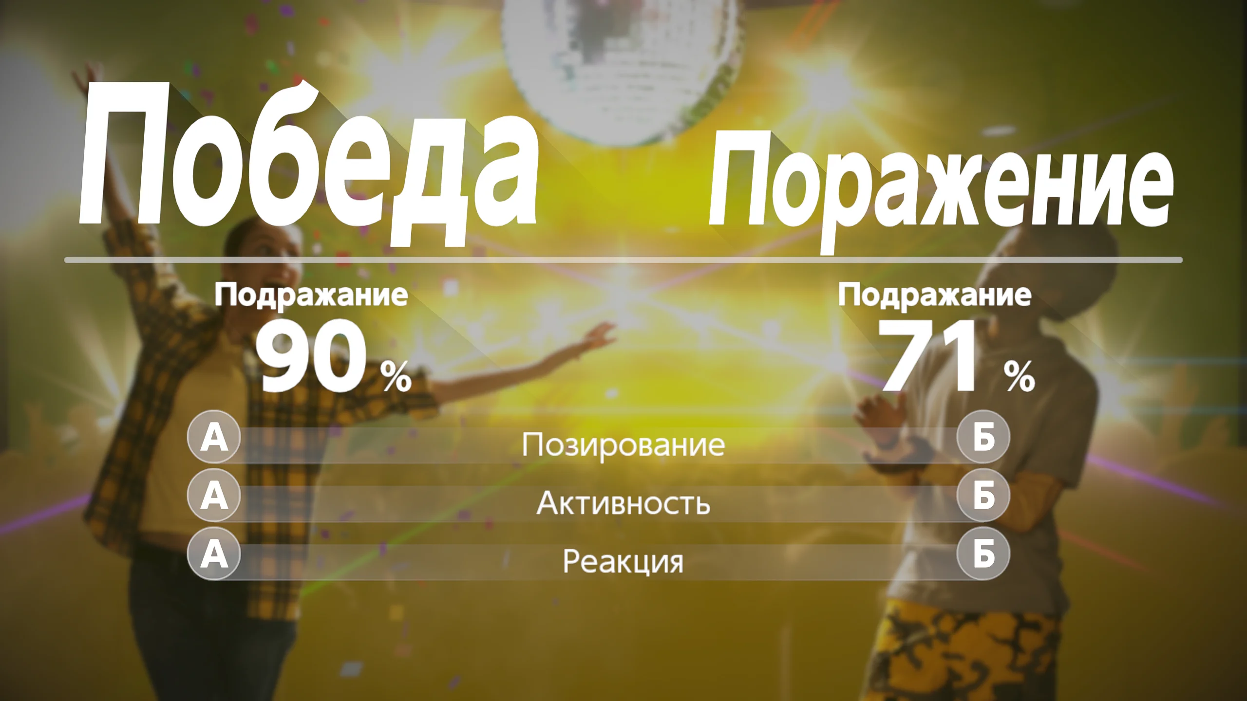 Визуально игра выполнена в минималистичном стиле с акцентом на активные действия игроков. На экране отображаются простые подсказки и игровые ситуации, тогда как основное внимание сосредоточено на взаимодействии участников вне экрана. Музыкальное сопровождение и звуковые эффекты играют ключевую роль, помогая ориентироваться в заданиях и усиливая динамику происходящего.