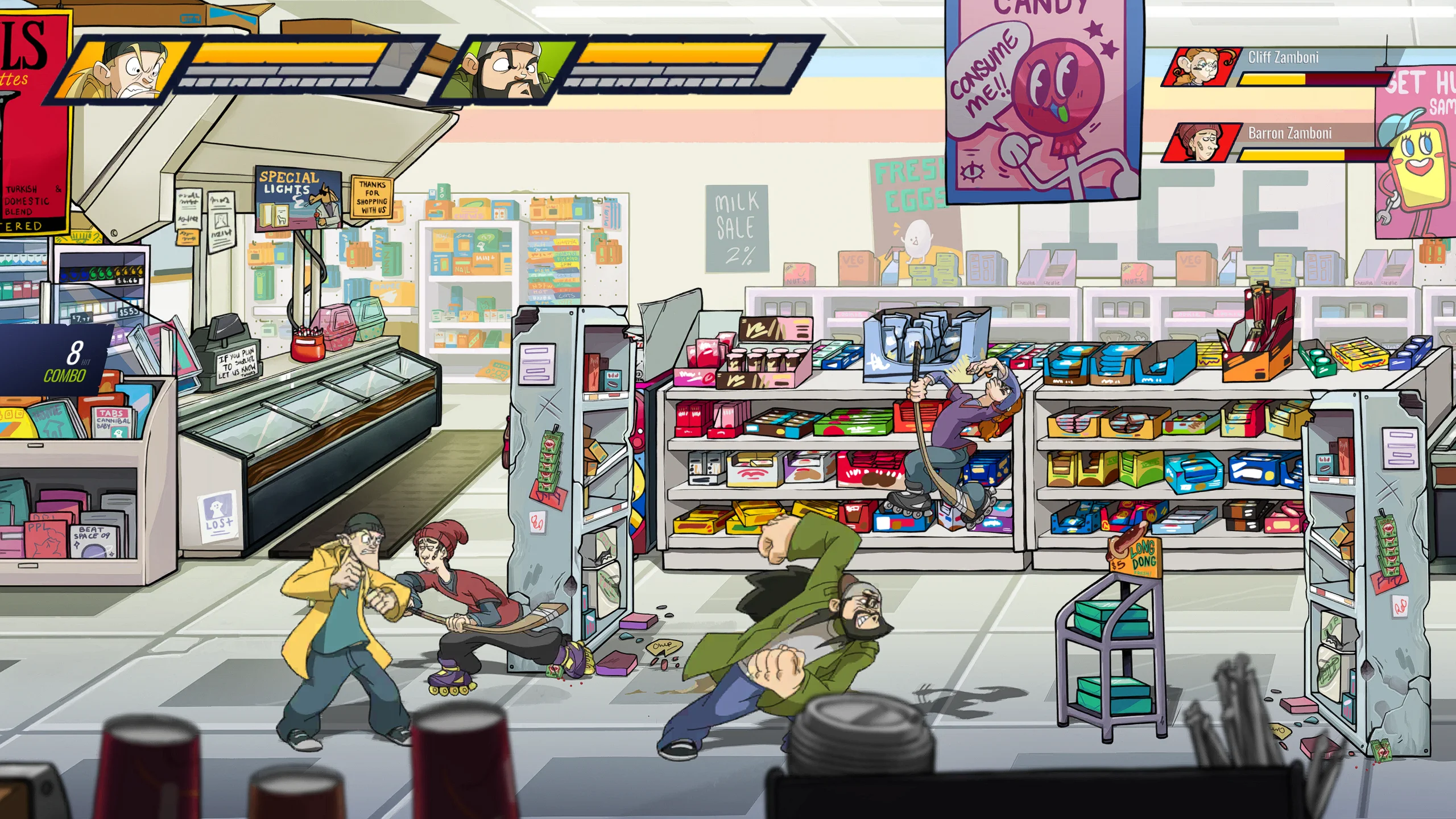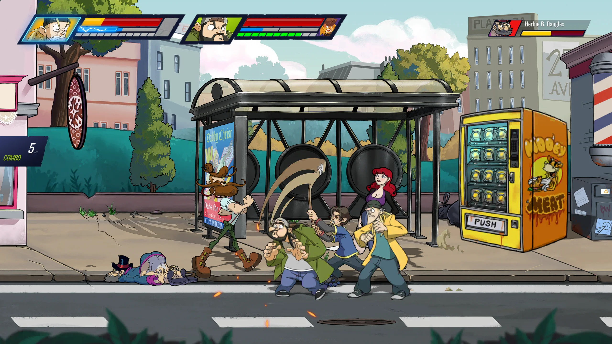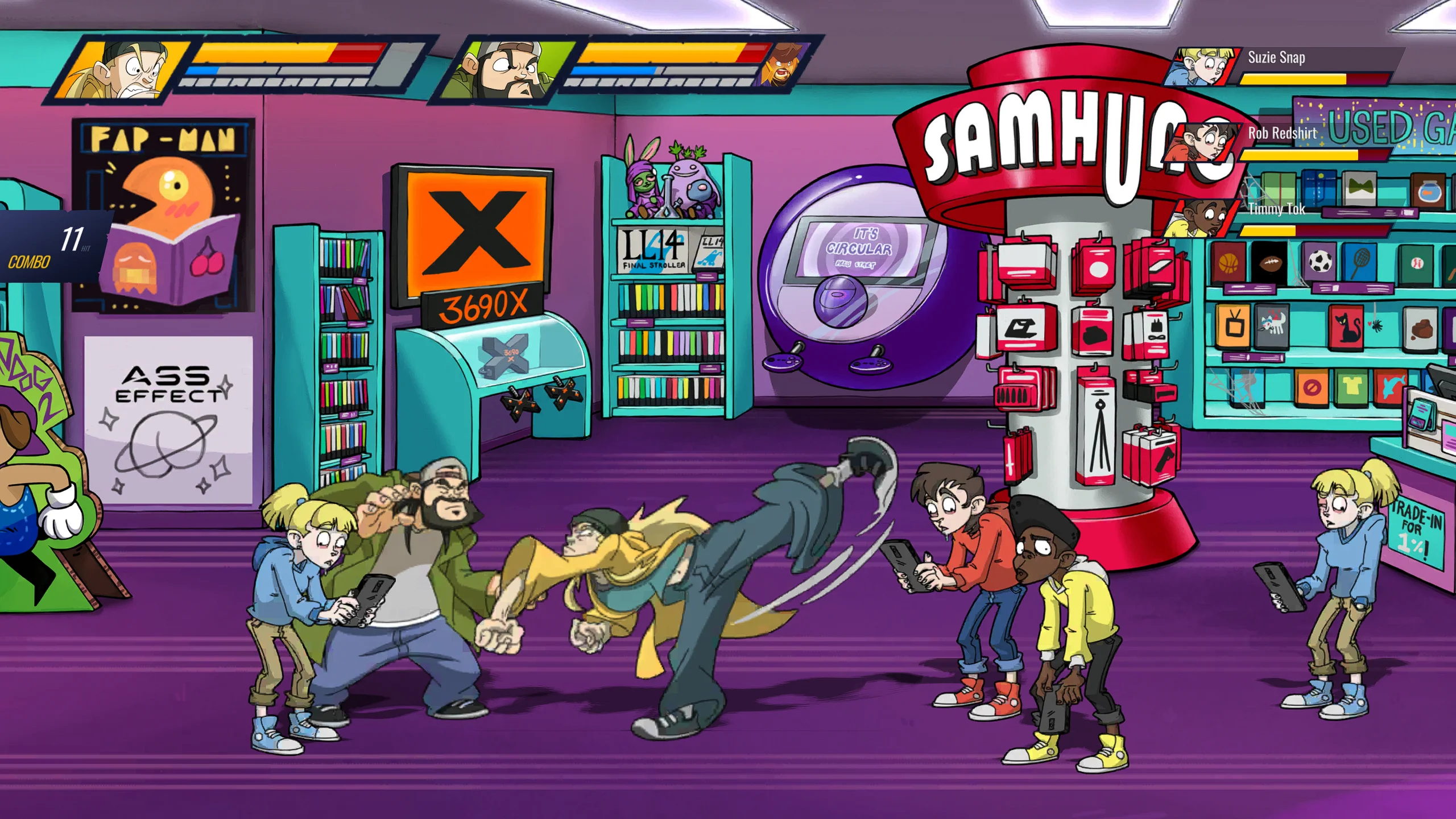 Визуально игра выполнена в стилизованной рисованной графике с детализированной анимацией персонажей. Локации включают городские улицы, магазины и другие узнаваемые места, наполненные отсылками к оригинальной франшизе. Анимации подчёркивают динамику сражений, а визуальные эффекты усиливают ощущение ударов и комбо. Музыкальное сопровождение и звуковые эффекты поддерживают энергичный темп и комедийную атмосферу происходящего.