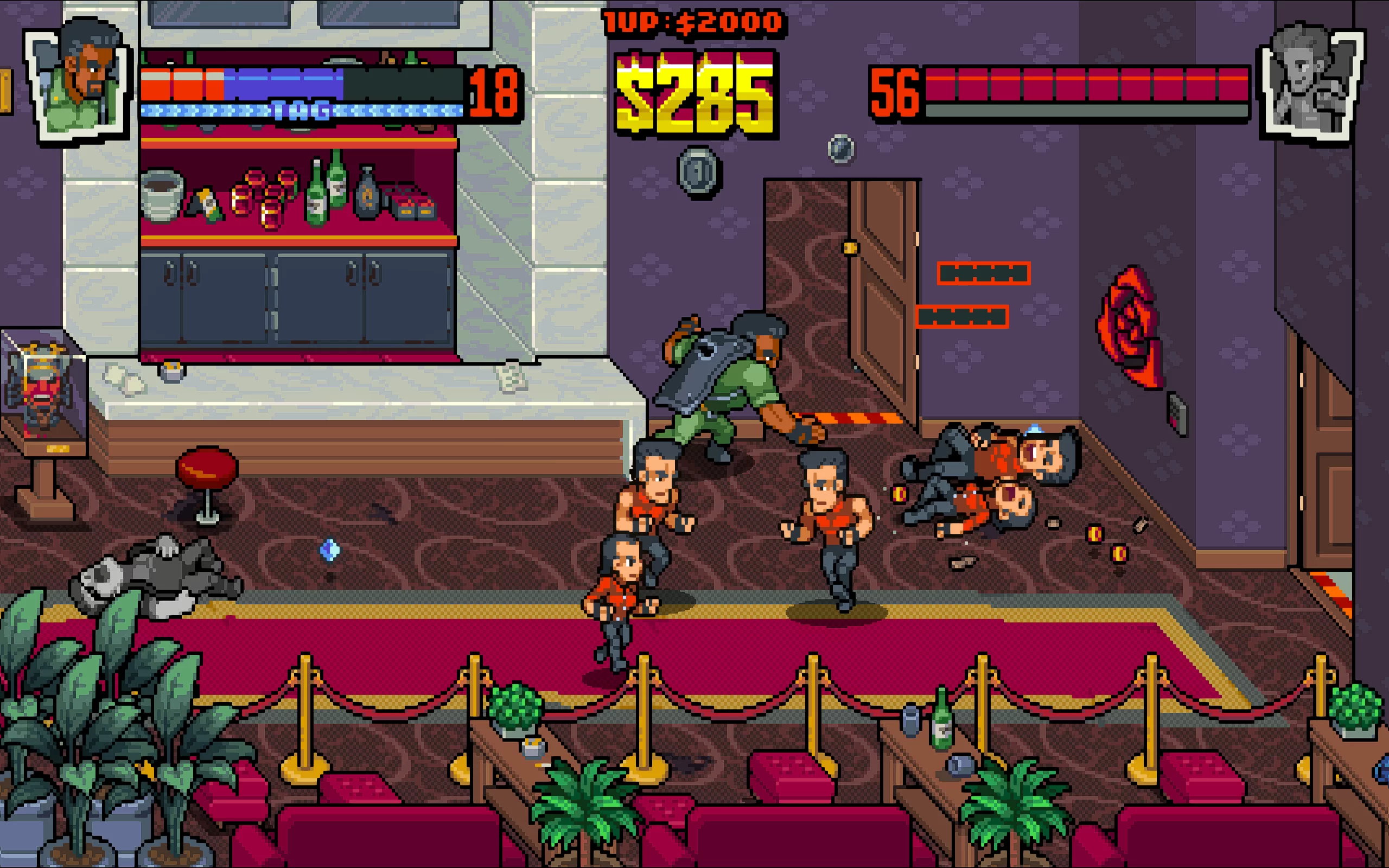Игра предоставляет доступ к нескольким персонажам, таким как Билли, Джимми, Мэриан, и дядя Мартин, а также возможность разблокировать девять новых персонажей, каждый из которых обладает уникальными стилями и приемами. В локальном совместном режиме на двоих игроков можно присоединиться к битве вдвоем с другими четырьмя бойцами.