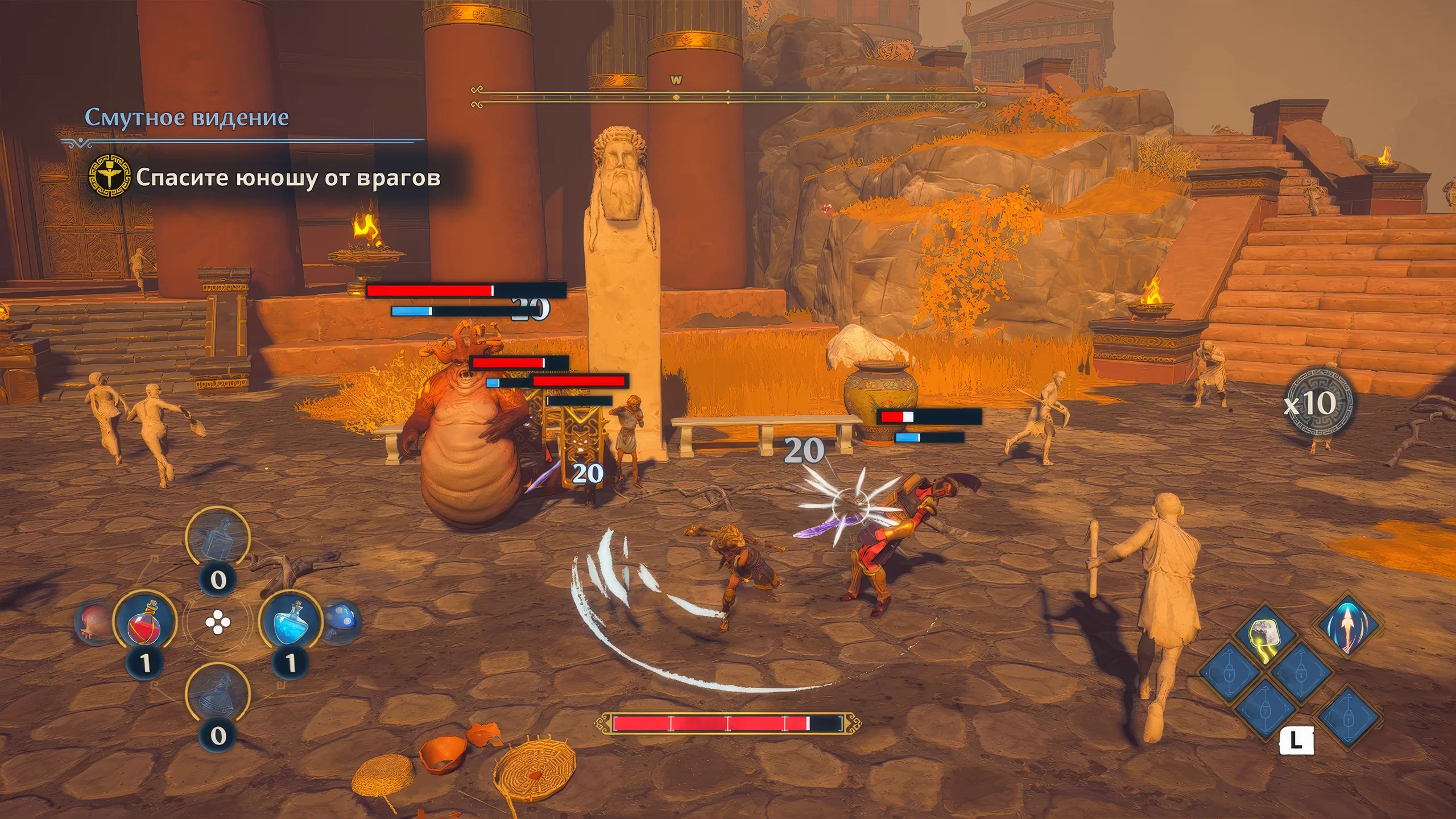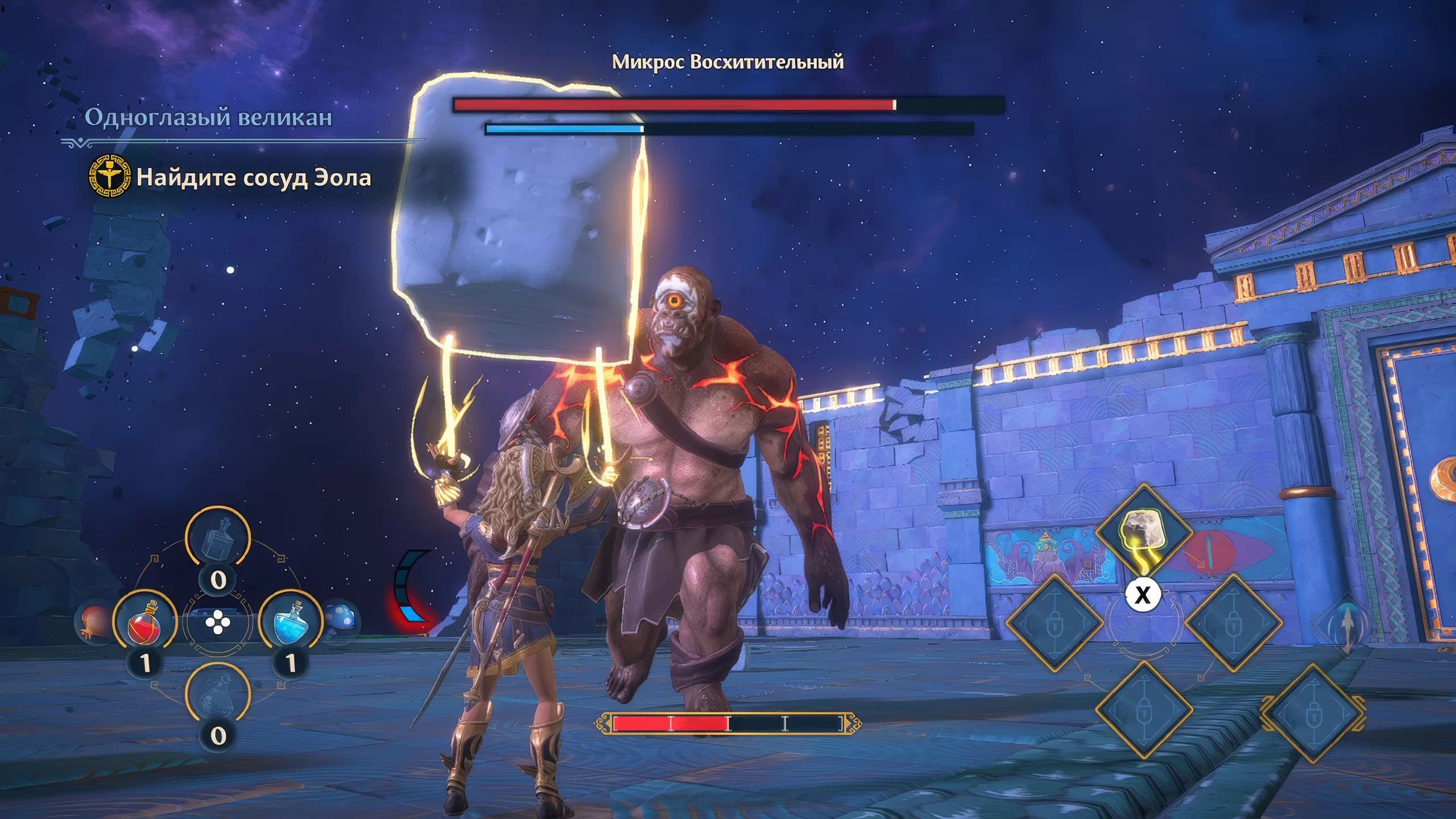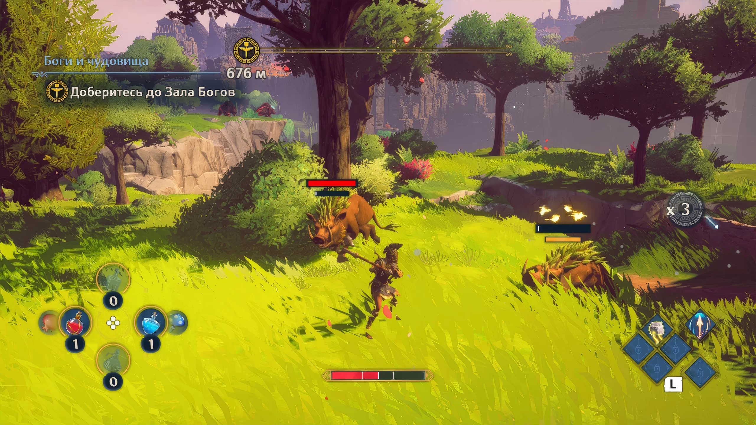 Визуальный стиль игры выдержан в мультяшной и красочной стилистике, с яркими цветами и детализированными локациями. Несмотря на технические ограничения Switch, игра сохраняет атмосферу открытого мира и эпичность битв. Саундтрек и озвучка подчеркивают мифологическую тематику и добавляют юмористические элементы, усиливая погружение в игровой процесс.