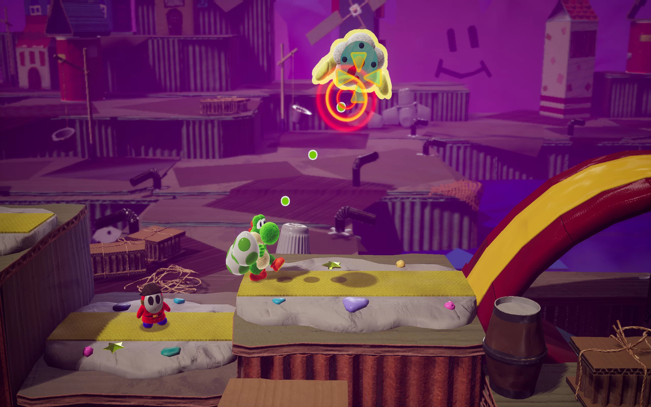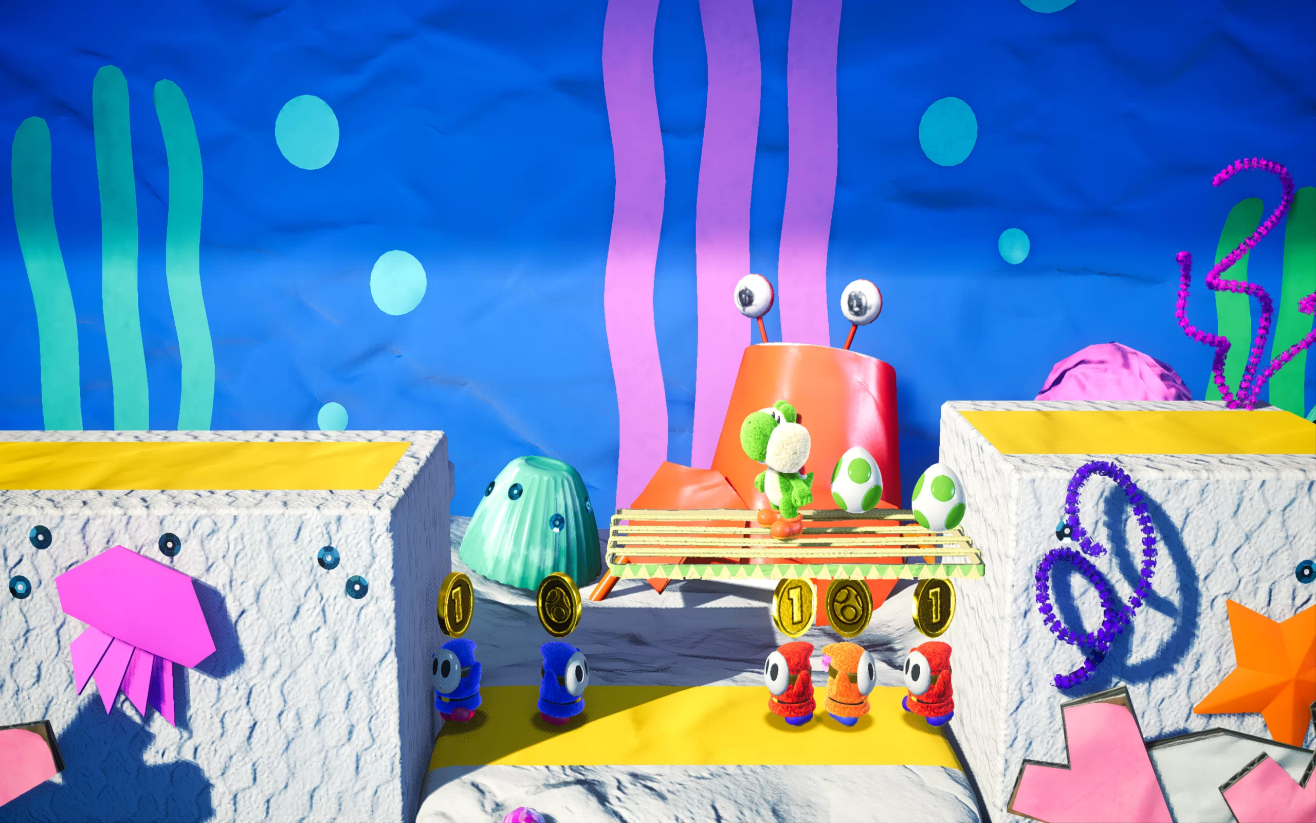 Игровой процесс Yoshi's Crafted World сочетает в себе элементы классических платформеров с оригинальными идеями. Одной из ключевых особенностей является возможность переключения ракурсов — игрок может двигаться как вперед, так и назад по уровням, раскрывая новые перспективы и обнаруживая секреты. Каждый уровень — это настоящее произведение искусства, наполненное деталями, которые придают игре уникальный внешний вид.