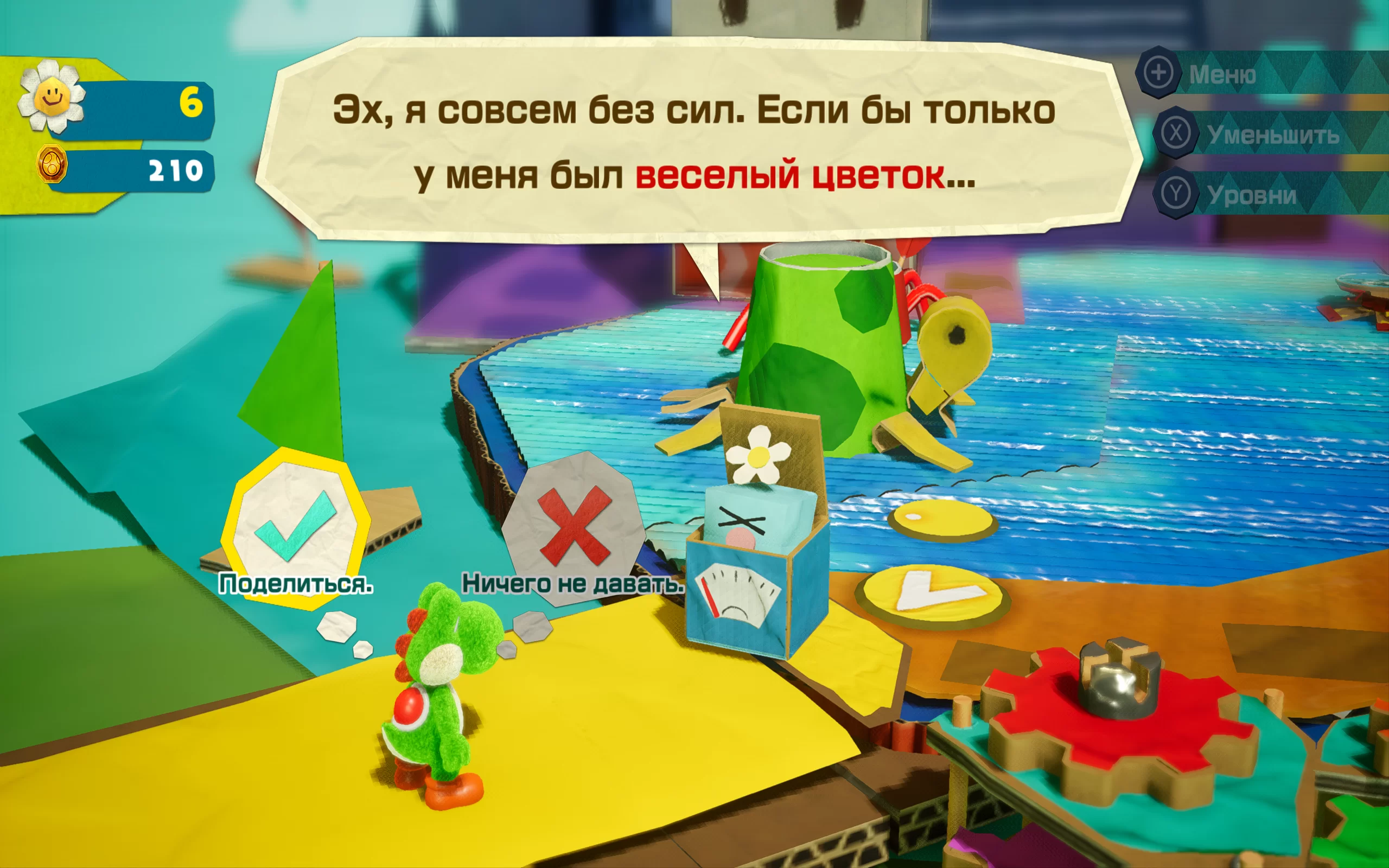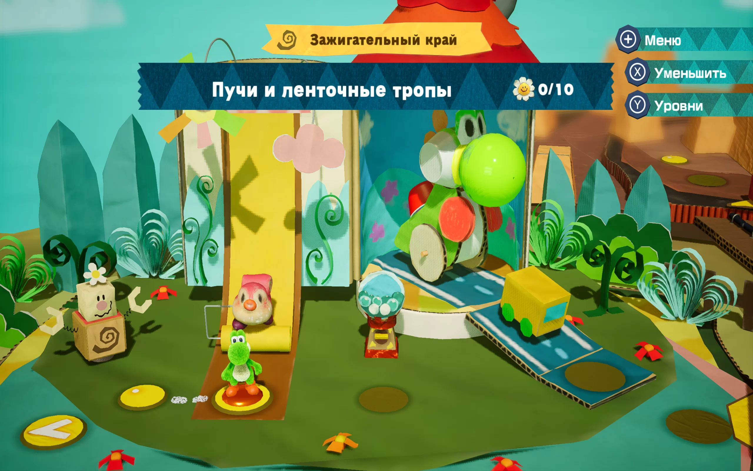 Графика Yoshi's Crafted World приятно радует глаз своей креативностью и тщательной детализацией. Игра создает атмосферу волшебного мира, напоминающего детские поделки.