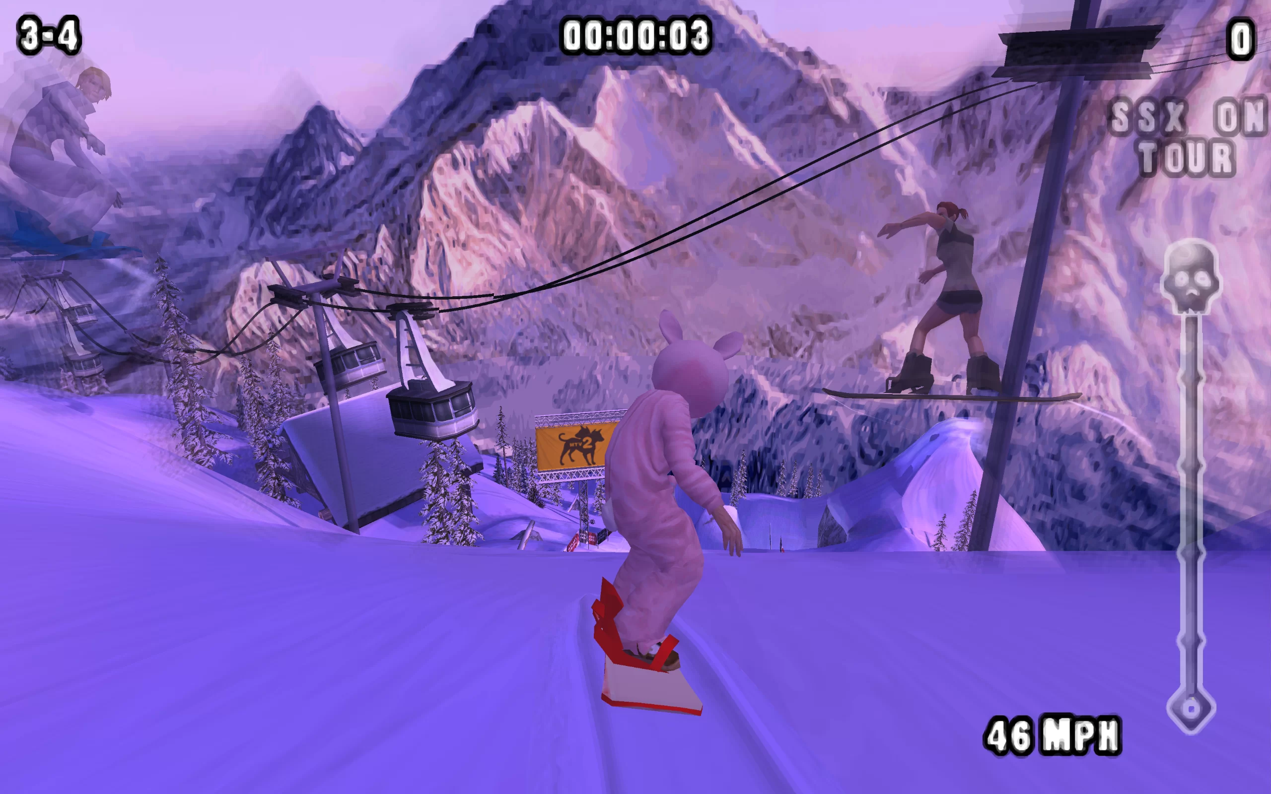 Сюжет в SSX on Tour не столь уклоняется в глубокие повествовательные аспекты. Основное внимание уделено геймплею и соревновательным режимам игры.